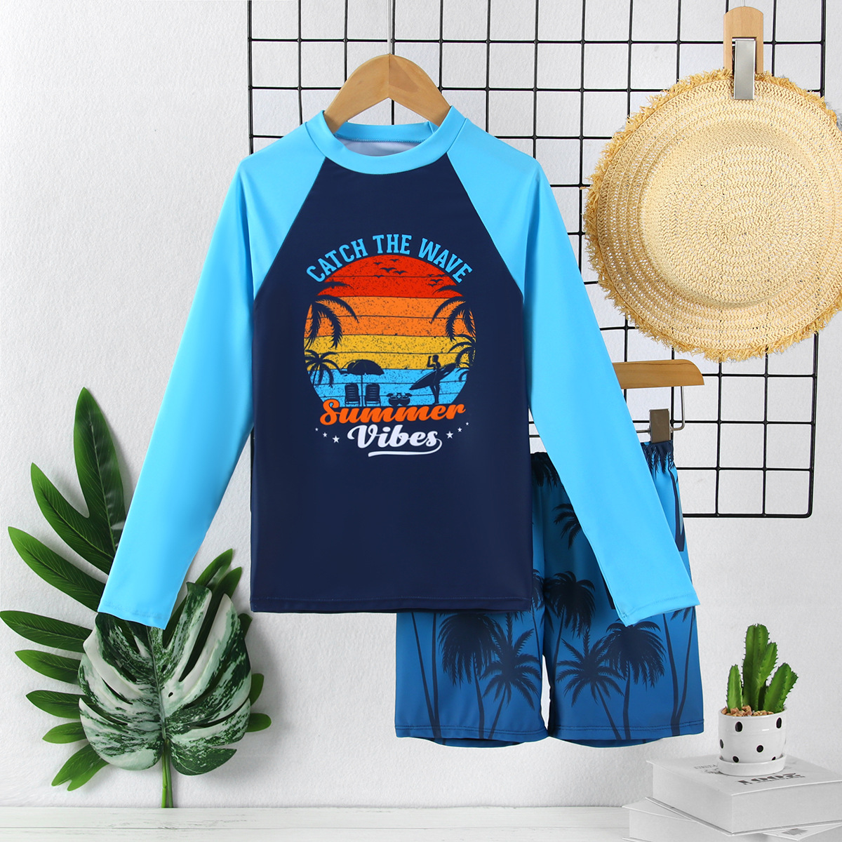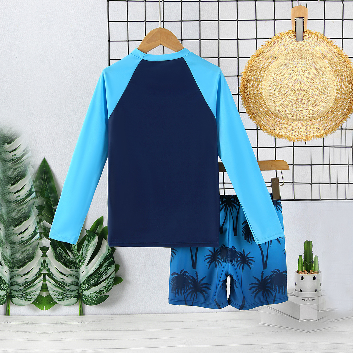 Детский купальный костюм для мальчиков с длинными рукавами и сплит купальник 2025 новый пляжный узор солнцезащитный крем быстротушный мальчик купальник летом