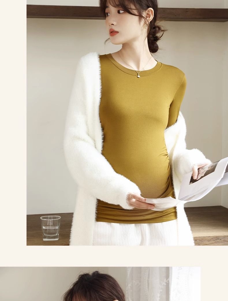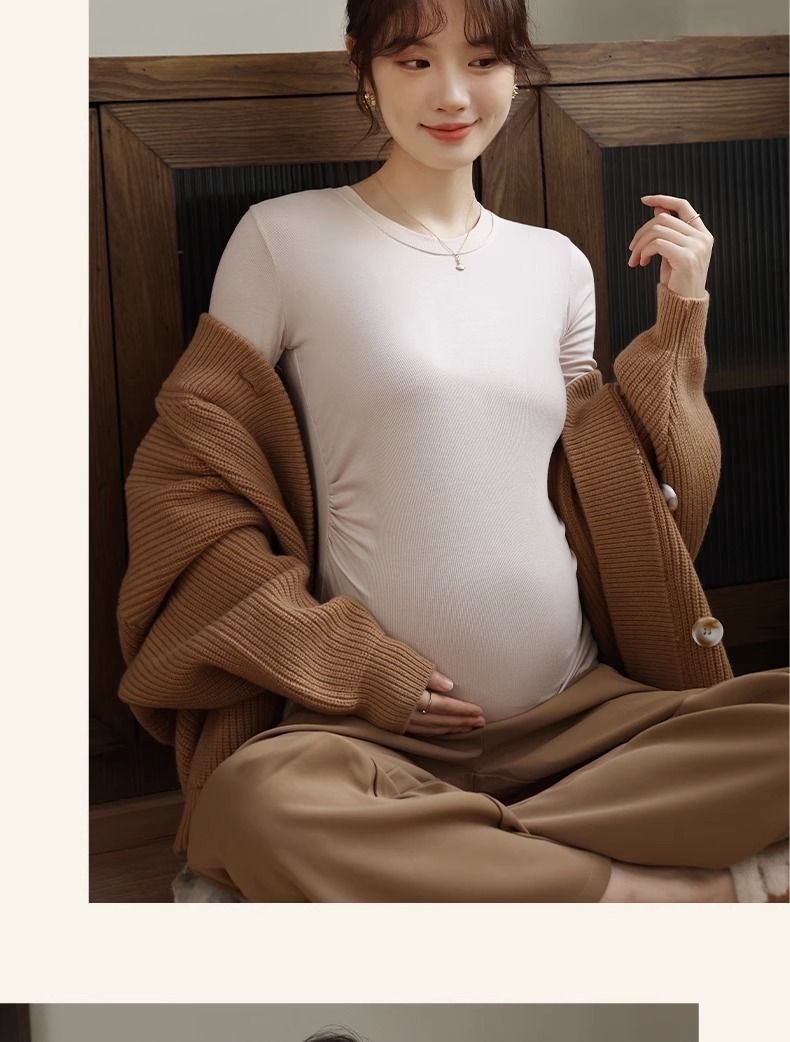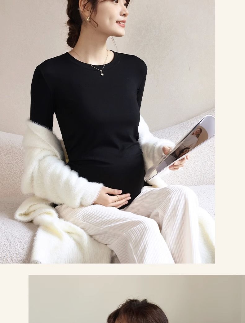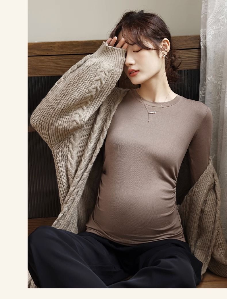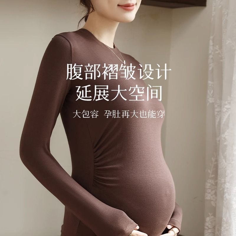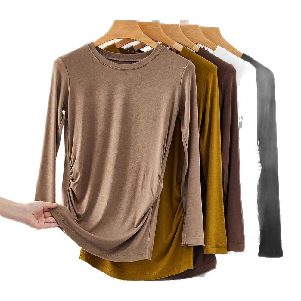 Материнская нижняя рубашка с круглым вырезом футболка Tt рубашка весна и осень Модаль носить модный сплошной цвет внутри осенняя одежда для беременных