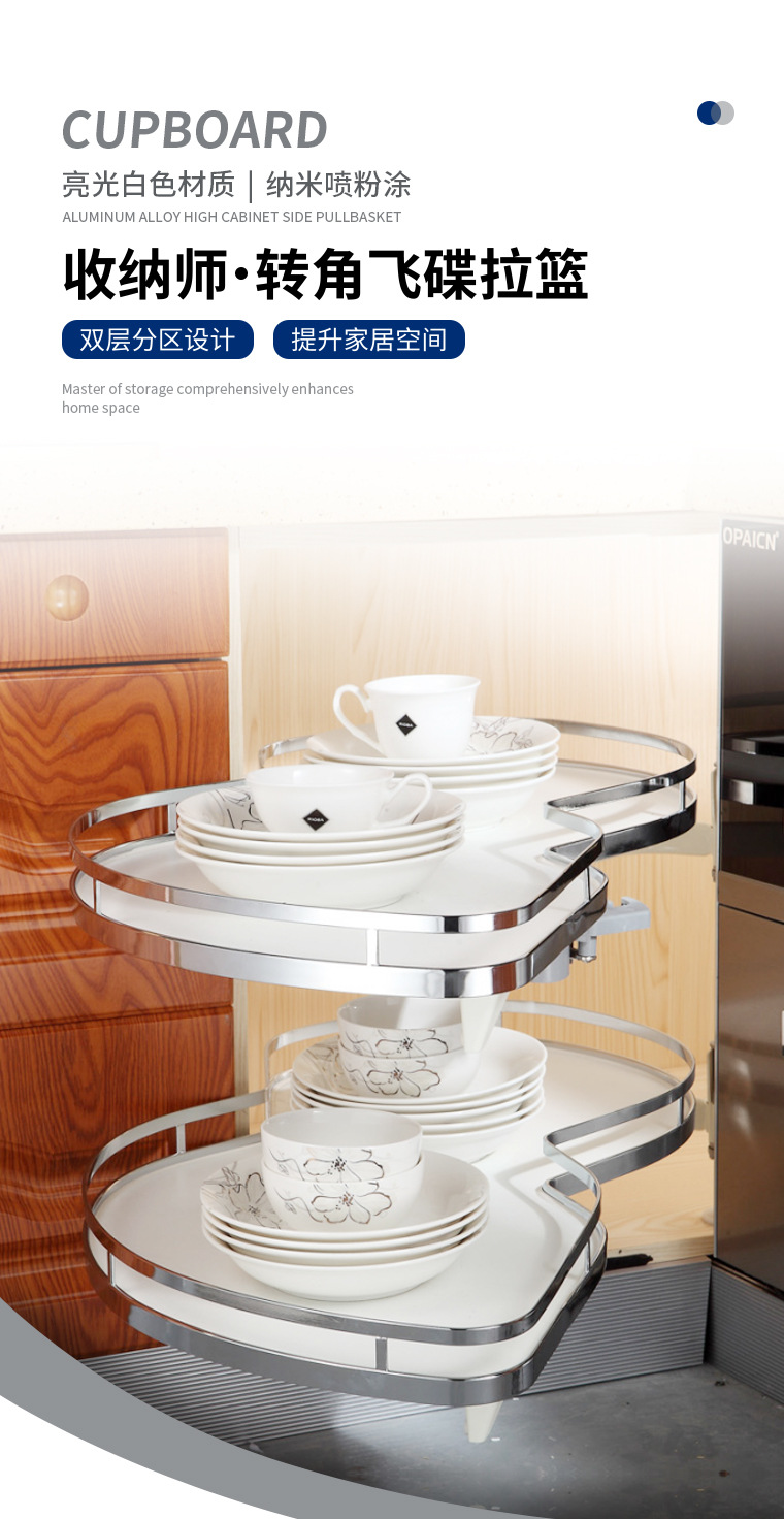 Угловая корзина тянет на кухонный шкаф Угловая встроенная подставка для приправ Двухслойная стойка для хранения вращающегося маленького монстра НЛО посуды корзина для посуды