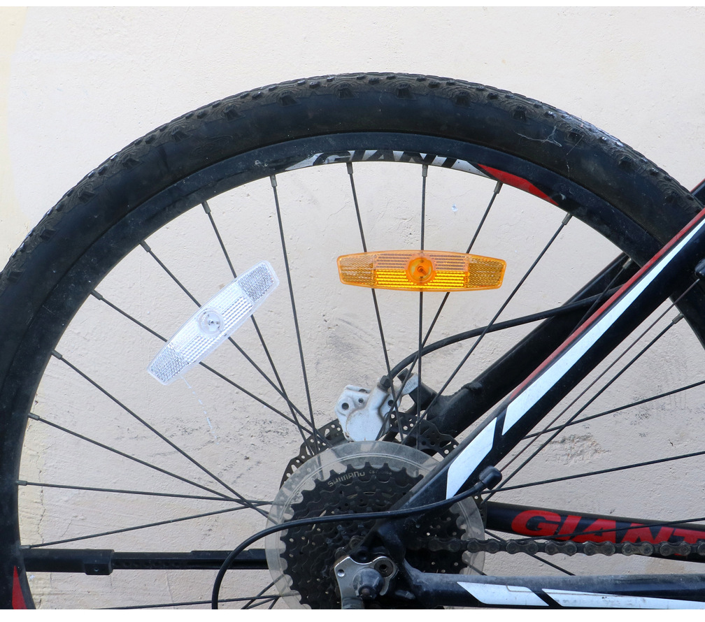 Спицы отражатели белые; Светоотражатели спиц оранжевого цвета; Панель подсветки красная; Передний светоотражающий лист белого цвета; оранжевый овал
