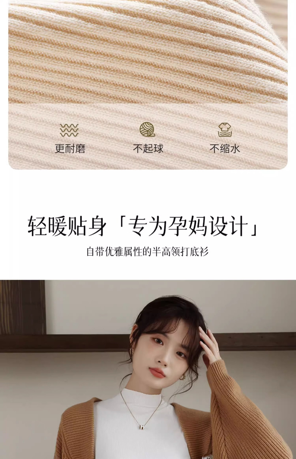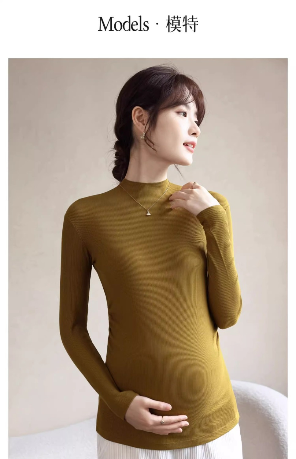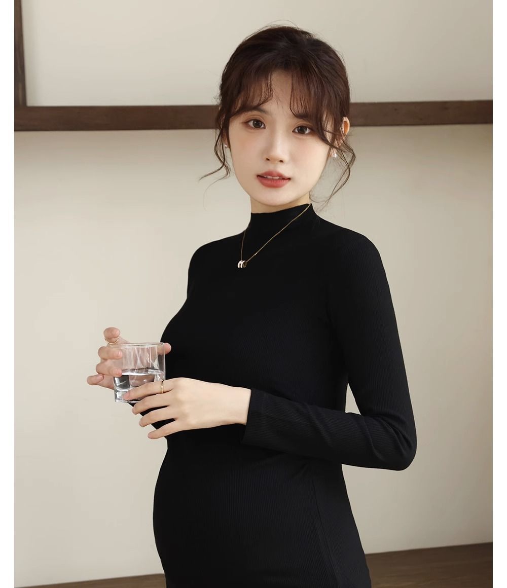 Нижняя рубашка для беременных весной и осенью носит модальный полувысокий воротник