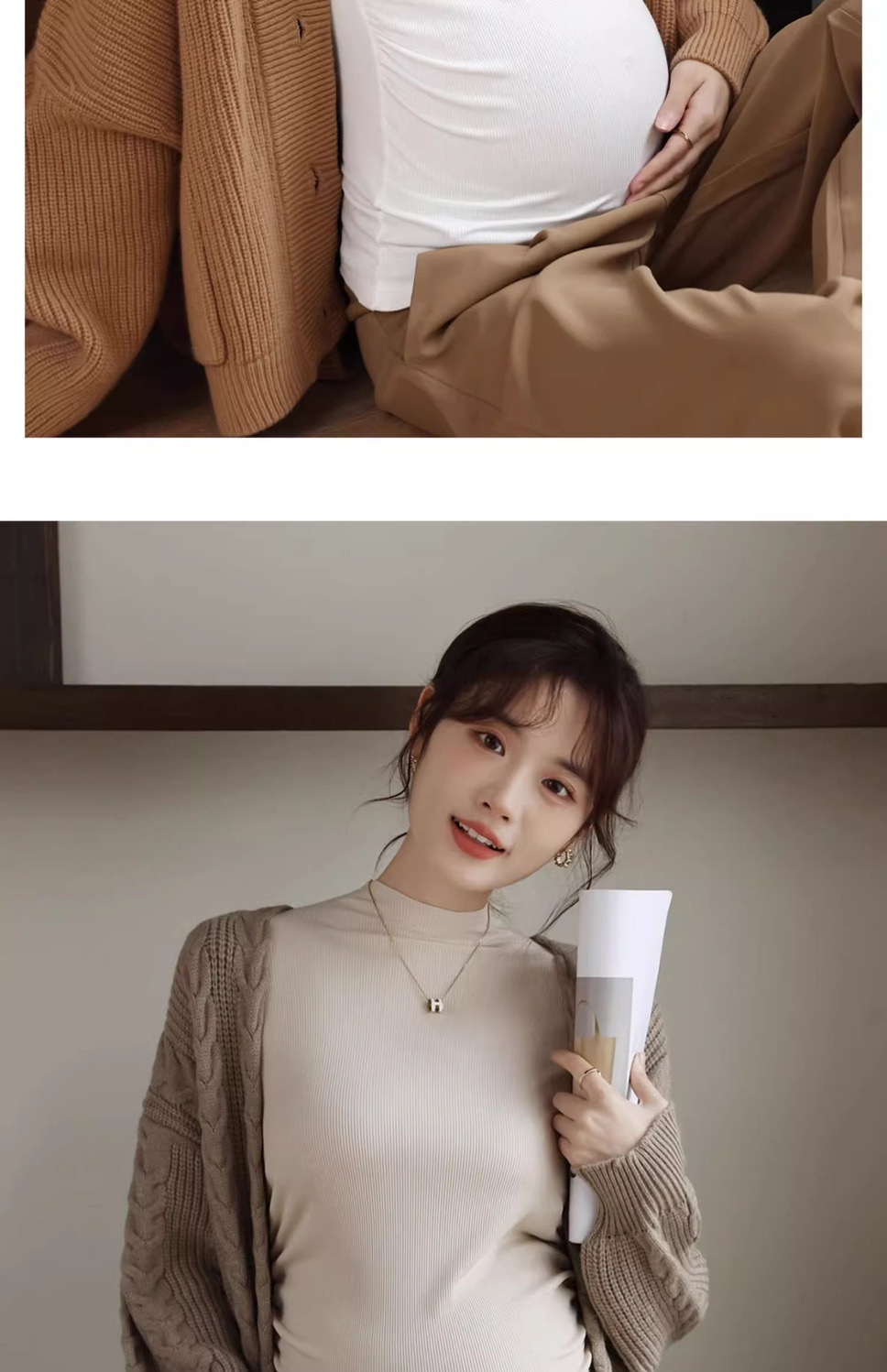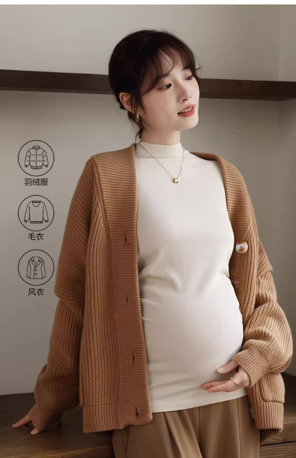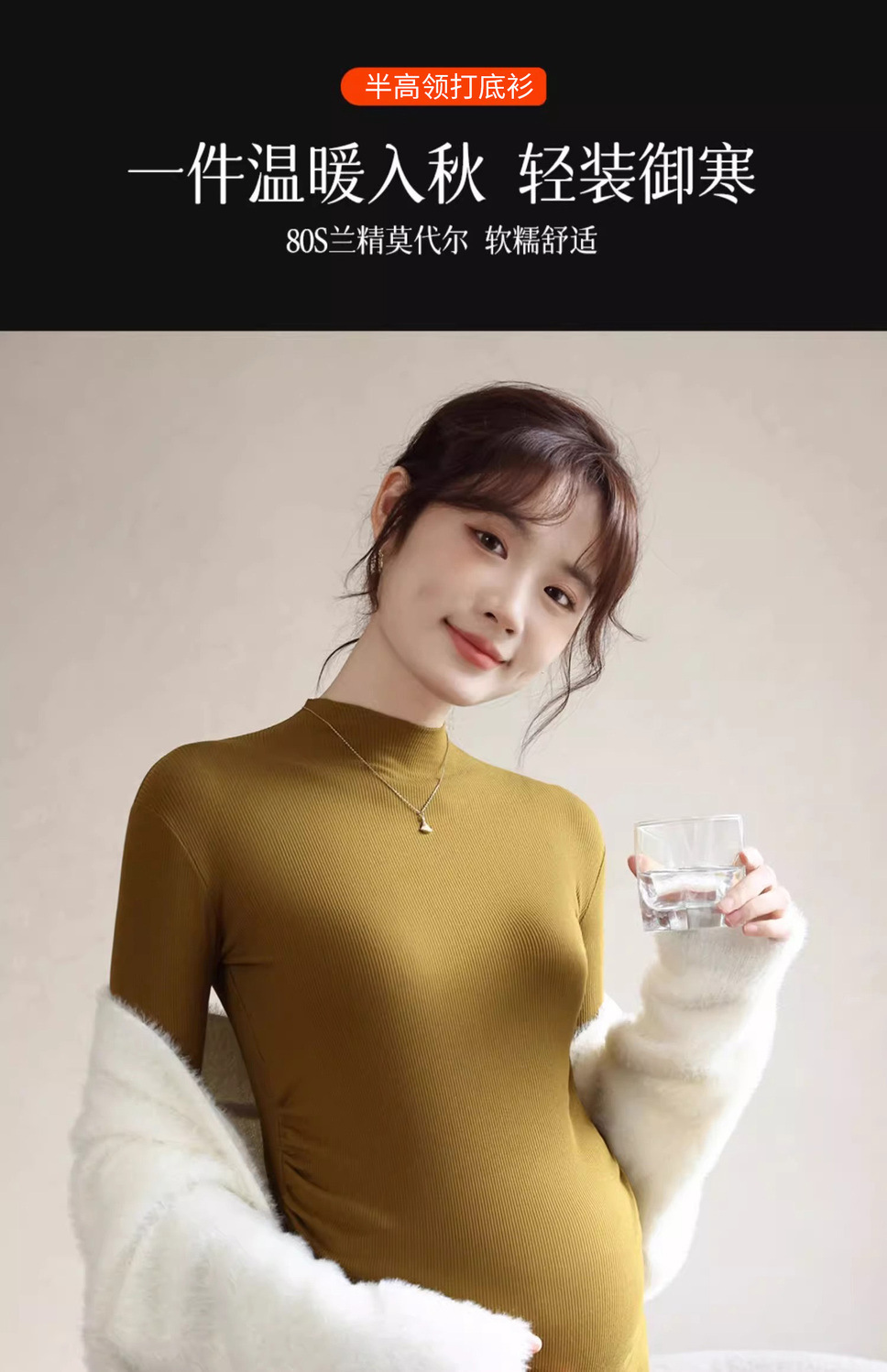 Нижняя рубашка для беременных весной и осенью носит модальный полувысокий воротник