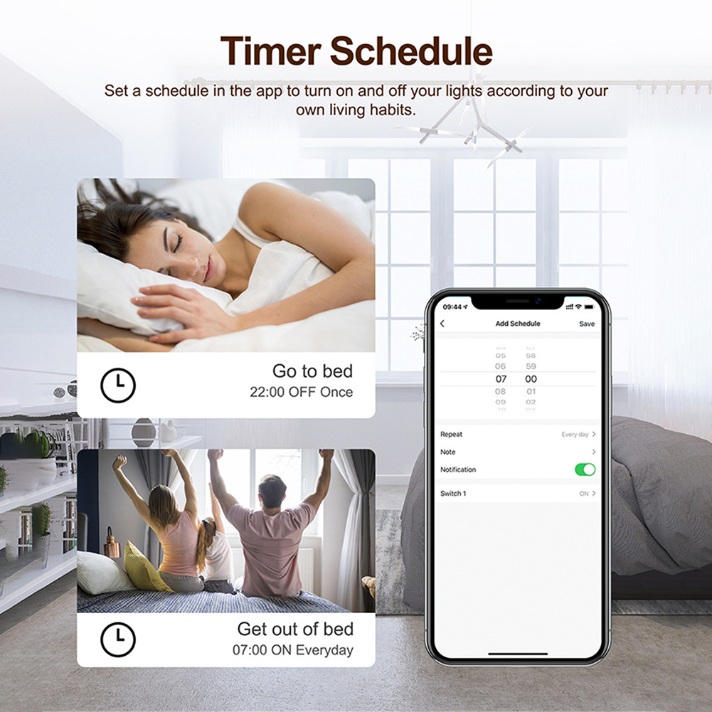 通过智能手机应用程序,您可以随时随地远程控制家中的灯光。无论你在哪里,只要使用涂鸦应用程序打开和关闭灯,你喜欢。无论是出差、下班回家的路上,还是在家休息,都可以轻松控制家中的照明环境。