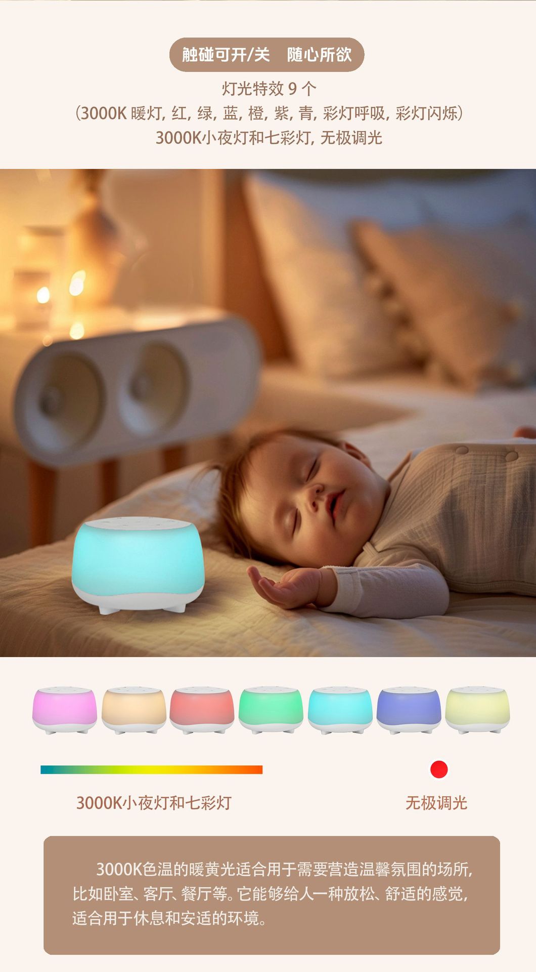 Устройство для сна, успокаивающее средство для сна младенцев, семицветный ночник, портативный динамик с белым шумом для улучшения сна