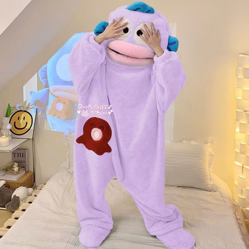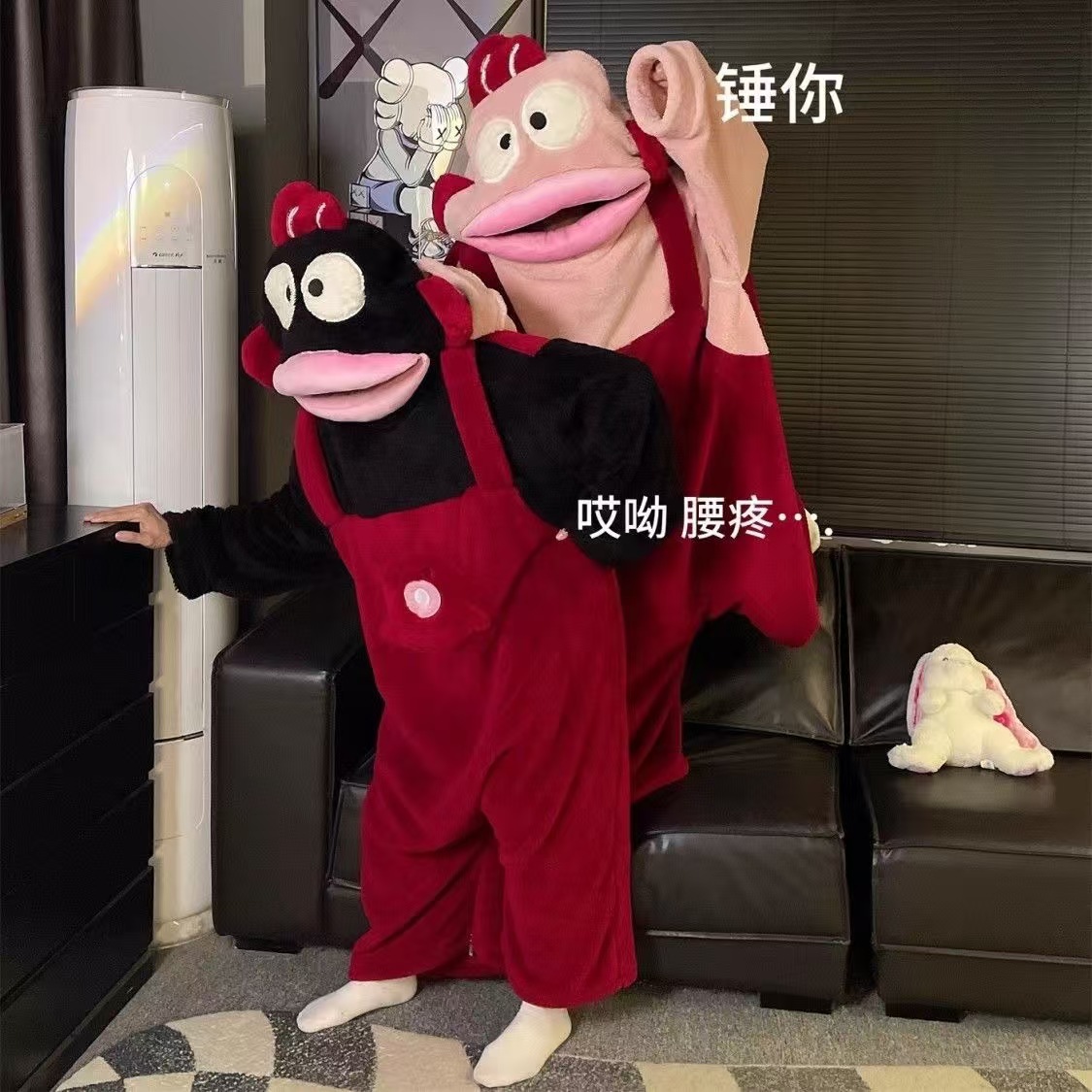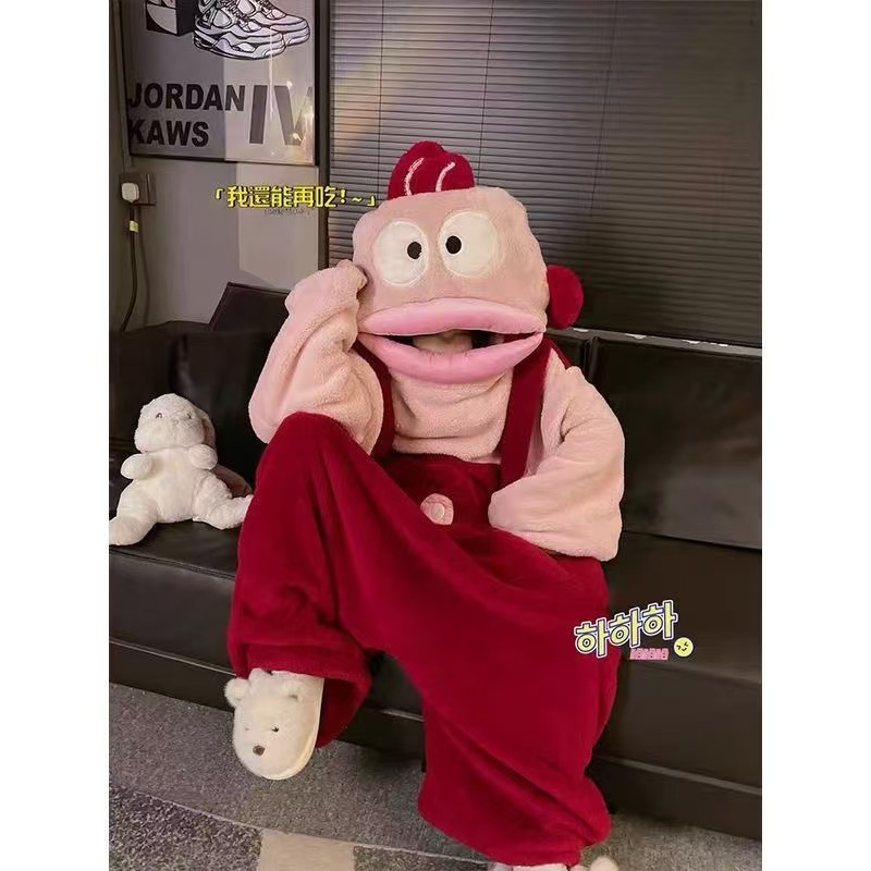 Розовый комбинезон «Уродливая рыбка»; пурпурный комбинезон с уродливой рыбой; Розовый комбинезон «Уродливая рыба» в новом стиле; Красно-черный комбинезон «Уродливая рыба» в новом стиле; синяя рыба с большим ртом