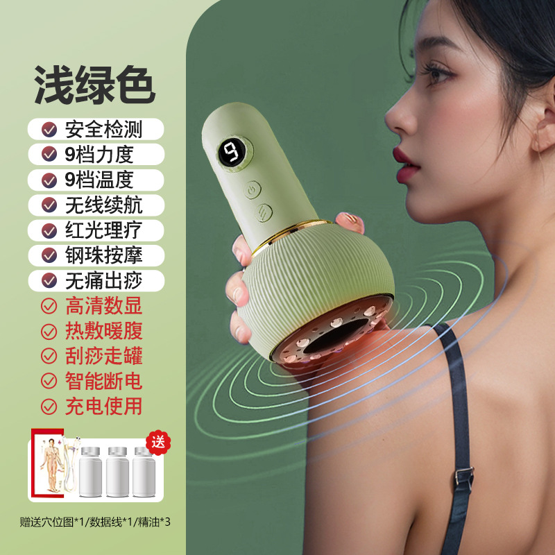 [Зеленый] Интегрированная машина для соскабливания и банок, 3 эфирных масла + карта меридианов человека; [Бежевый] Интегрированная машина для гуа-ша и банок, 3 эфирных масла + карта меридиана человека; [Кисть Меридиана] [Зеленый] + 9 уровней нагрева + 9 уровней интенсивности + 9 уровней микроэлектричества; [Кисть Меридиана] [Бежевый] + 9 уровней нагрева + 9 уровней силы + 9 уровней микроэлектричества