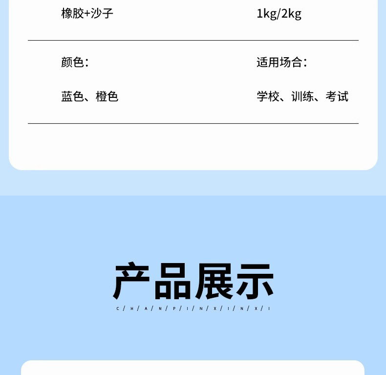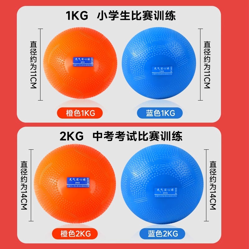 Оранжевый тренировочный мяч для учеников начальной школы (1 кг); Синий (1 кг) тренировочный мяч для учеников начальной школы; Оранжевый (2 кг) экзаменационный мяч; Синий (2 кг) экзаменационный мяч