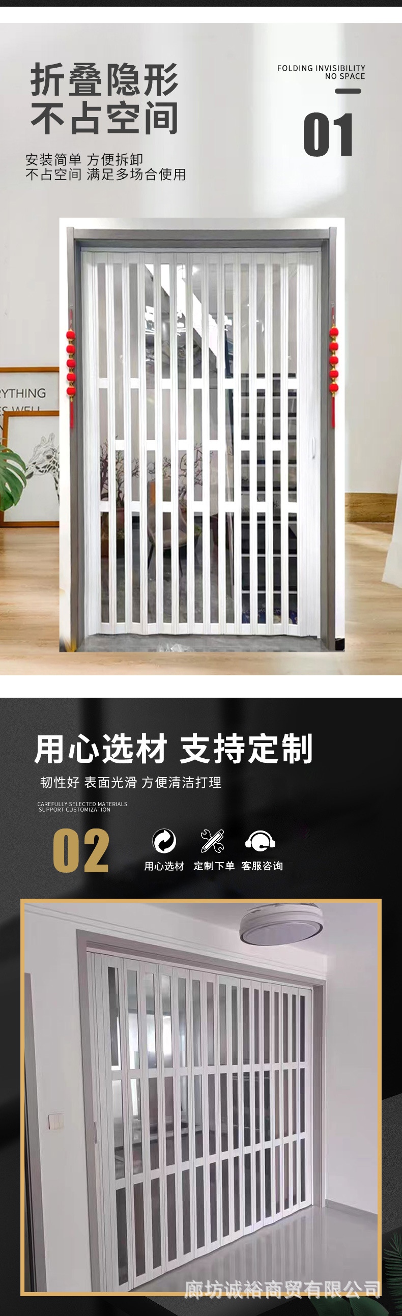 Раздвижная складная дверь для кухни, без сверления, ПВХ, складная, для гостиной, бара, балкона, перегородка, невидимая, простая дверь
