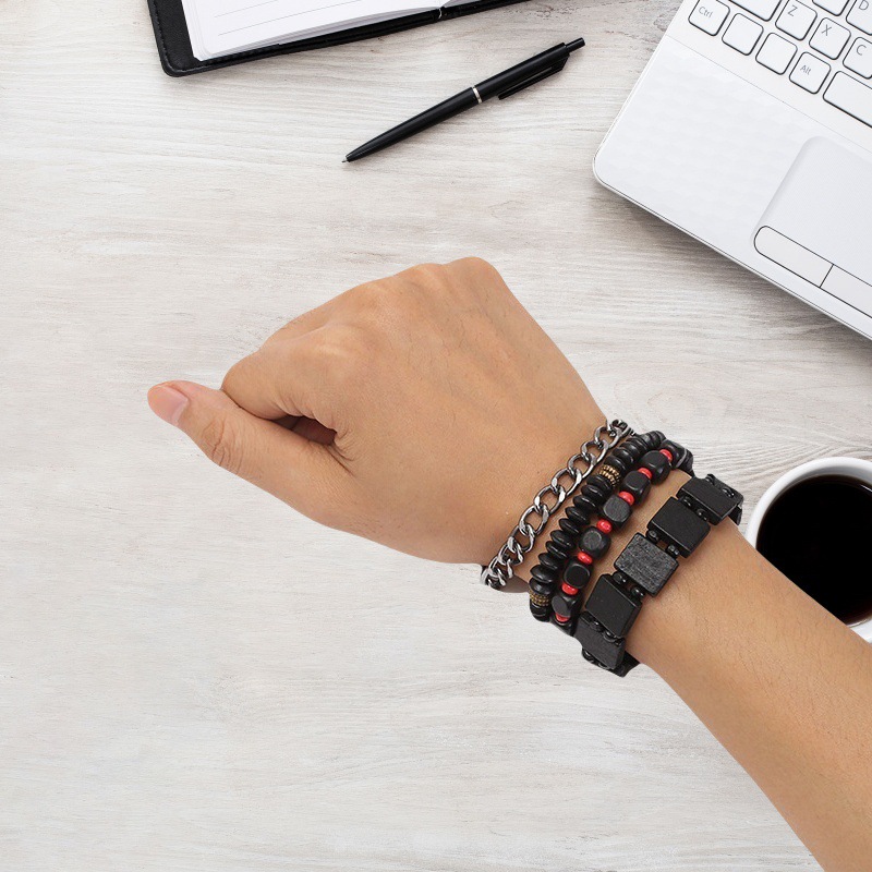 Трансграничные европейские и американские новые многослойные мужские деревянные бусы с бисером браслет многокомпонентный тканый браслет ретро цепи оптом