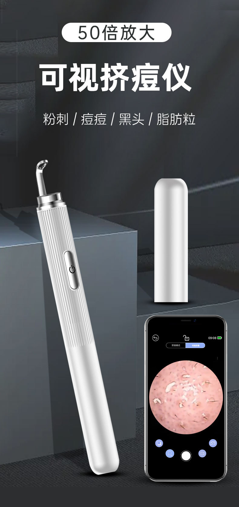 [Инструмент для удаления прыщей] Высокоточный инструмент для удаления акне с 50-кратным увеличением для очищения лица и удаления черных точек.