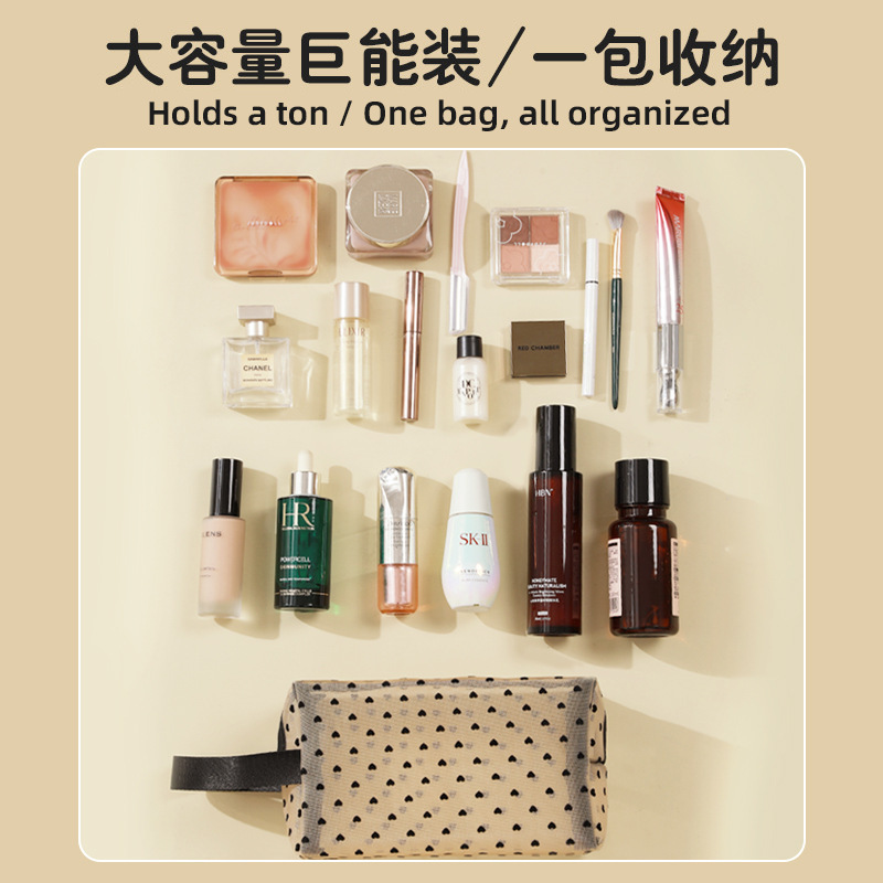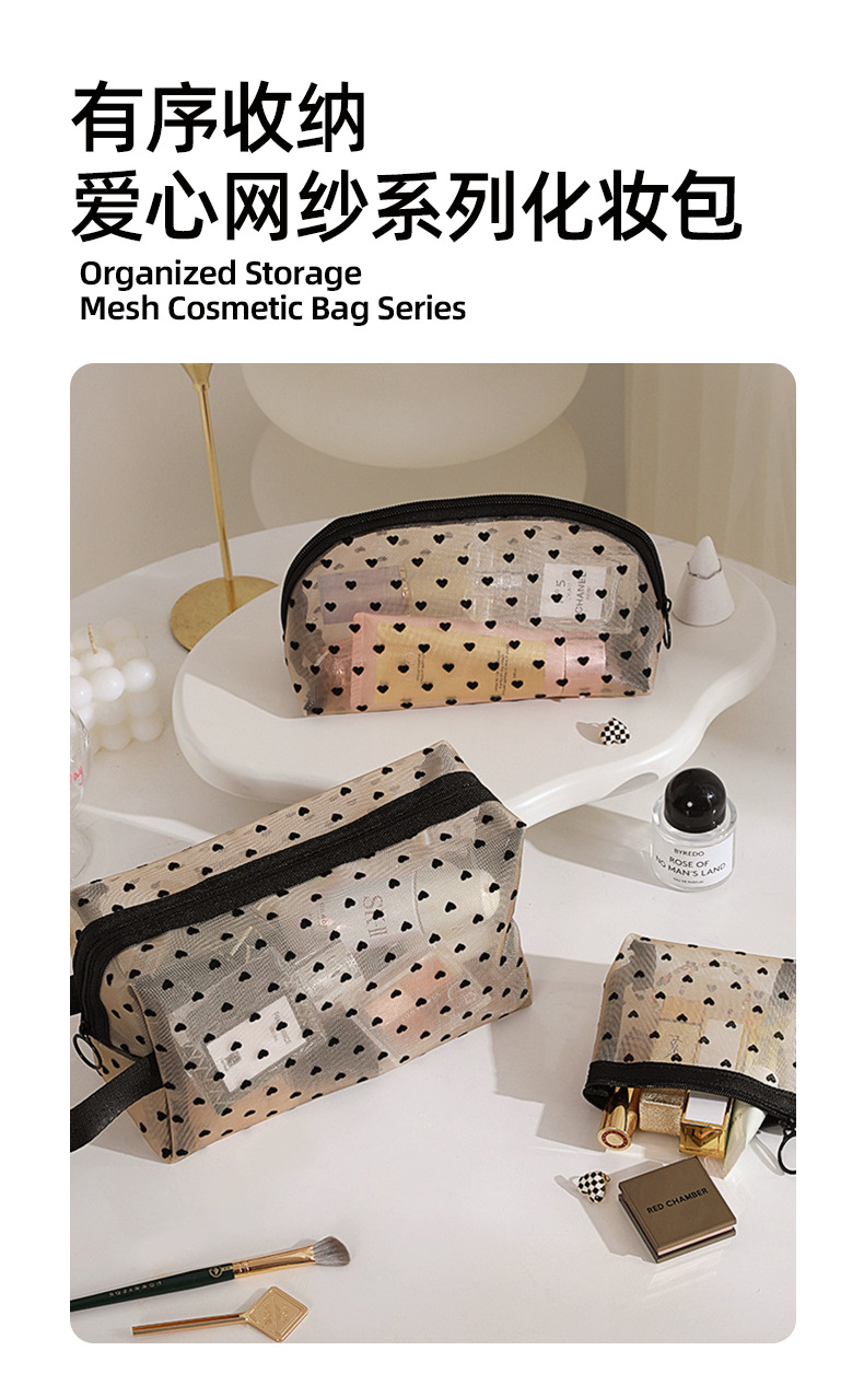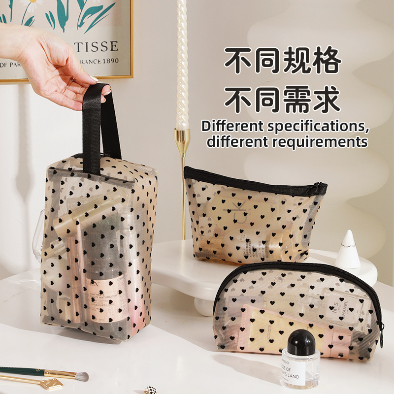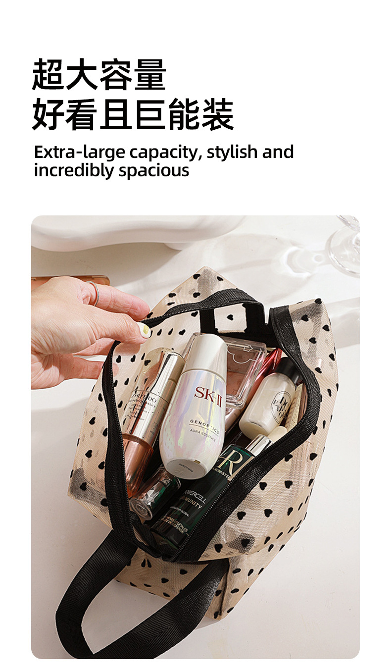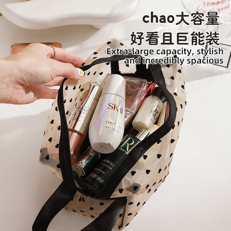 Новая косметичка в форме сердца, большая вместительная сетчатая косметичка, женская сумка в стиле ins, дорожная компактная косметичка