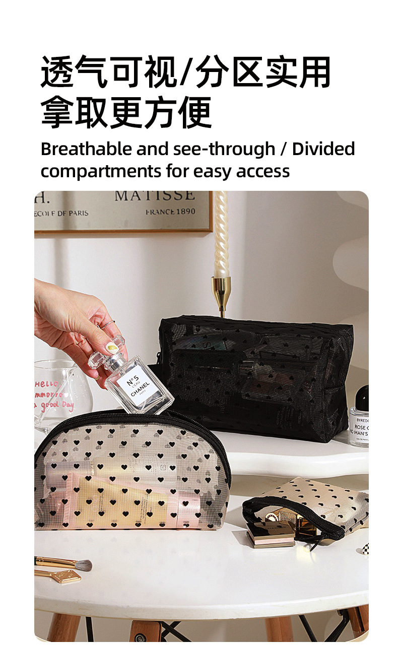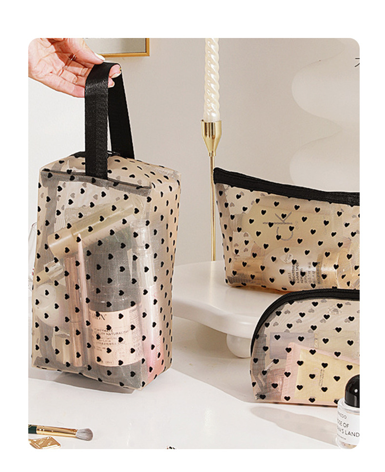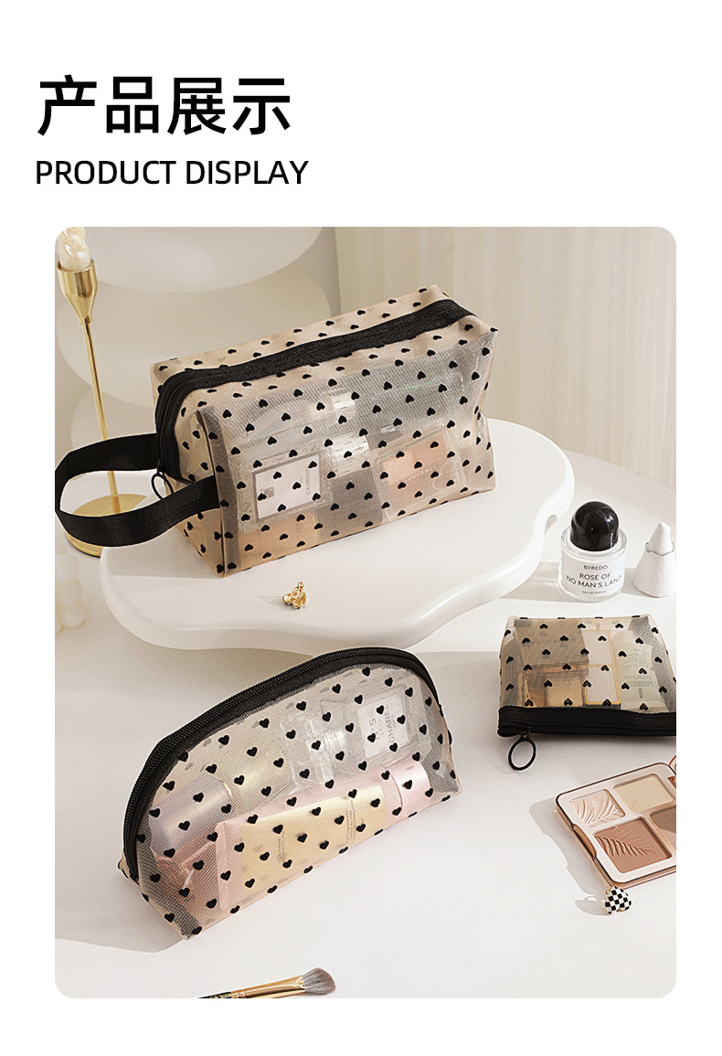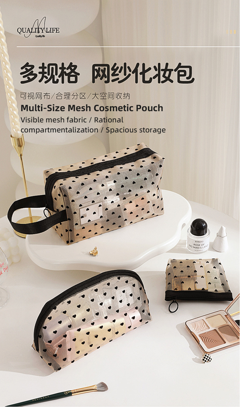 Новая косметичка в форме сердца, большая вместительная сетчатая косметичка, женская сумка в стиле ins, дорожная компактная косметичка