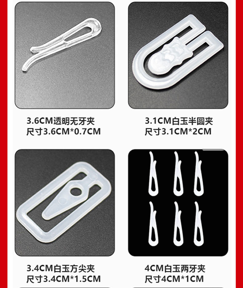 Зажим для гор из белого нефрита 3,4 см * 1,6 см; Зажим в виде утконоса из белого нефрита, 3,8 см.; Зажим с двумя зубцами из белого нефрита 4 см; Прозрачный зубной зажим 3,6 см.; Прозрачный зажим в виде утконоса 3,8 см.; Прозрачный длинный беззубый зажим 5 см (1000); Прозрачный зажим с тремя зубцами 3,5 см (2000 г.); Бесзубый зажим из белого нефрита 3,6 см.; Прозрачный 3-зубчатый зажим 3,6 см.; Полукруг из белого нефрита 3,1 см.; Прозрачный квадратный зажим; Цвет белого нефрита (беззубый 4 см); Прозрачный зажим с двумя зубцами 4 см.; Зажим с квадратным кончиком из белого нефрита 3,4 см; Зажим для рта беззубик из белого нефрита (2000); Большой зажим с четырьмя зубцами диаметром 6 см.; Белый нефрит 4 см (5 зажимов для зубов); Бесзубый зажим из белого нефрита 4 см.; Прозрачный беззубый зажим 4 см.; Зажим для 3 зубов белого нефритового цвета 5 см; Прозрачный 3-зубый зажим 5 см.; Квадратный зажим из белого нефрита; Прозрачный (4 см беззубый; Горный зажим 3,6 см.; Прозрачный рот с тремя зубами 3,5 см (2000 г.)