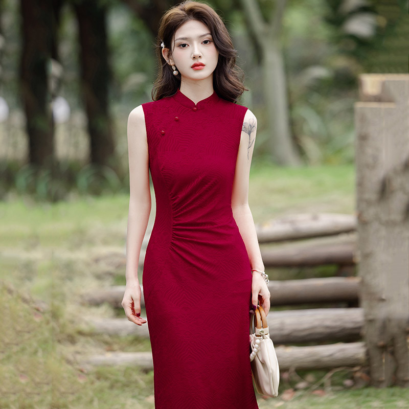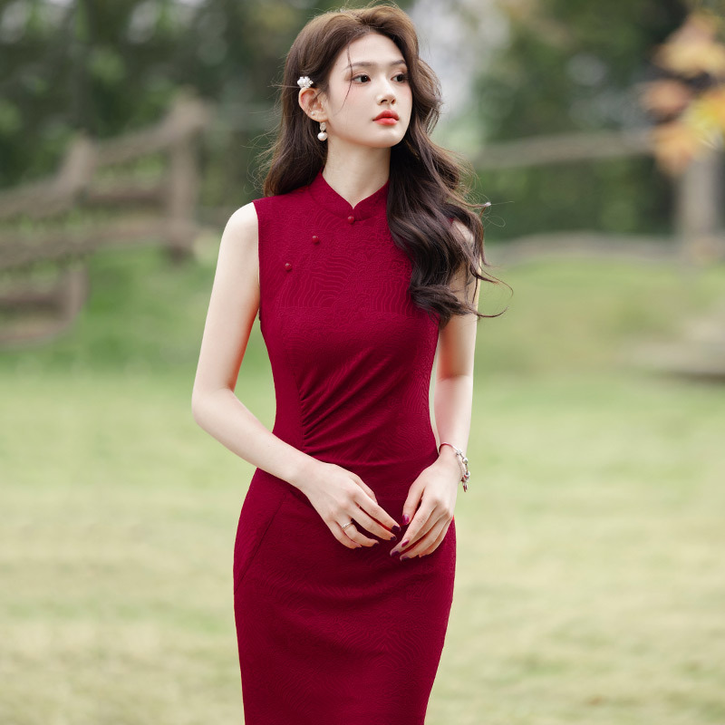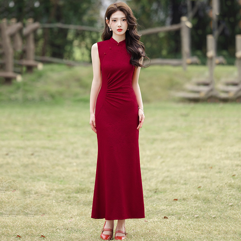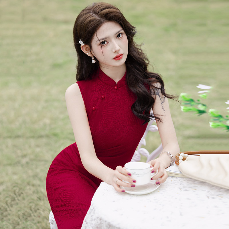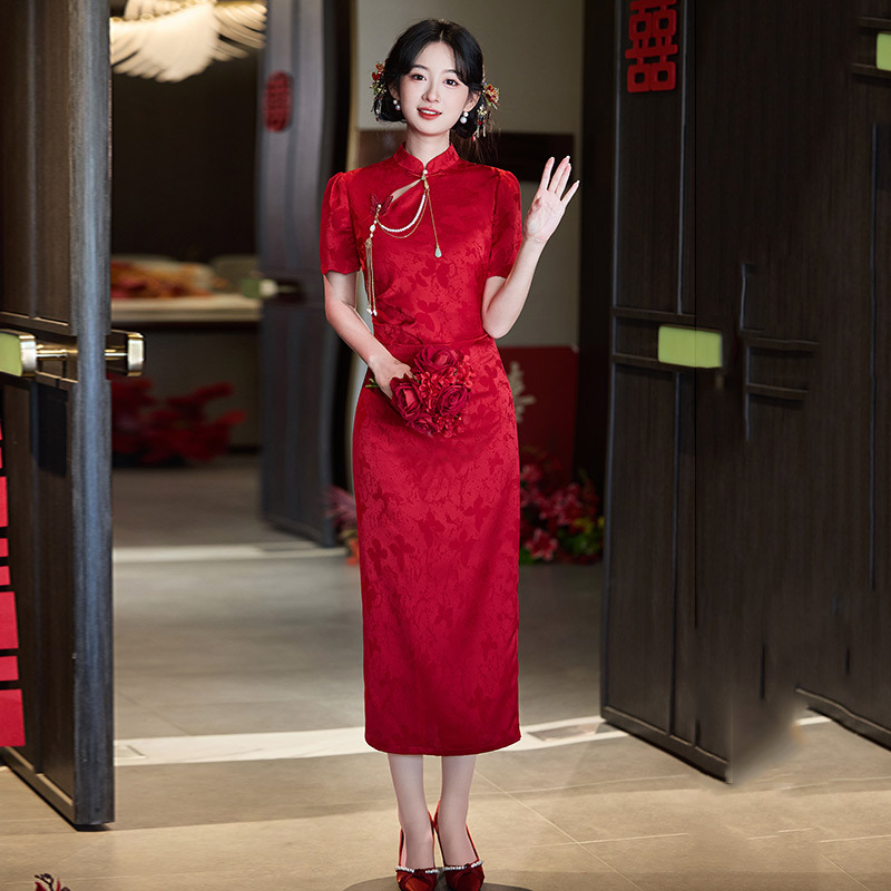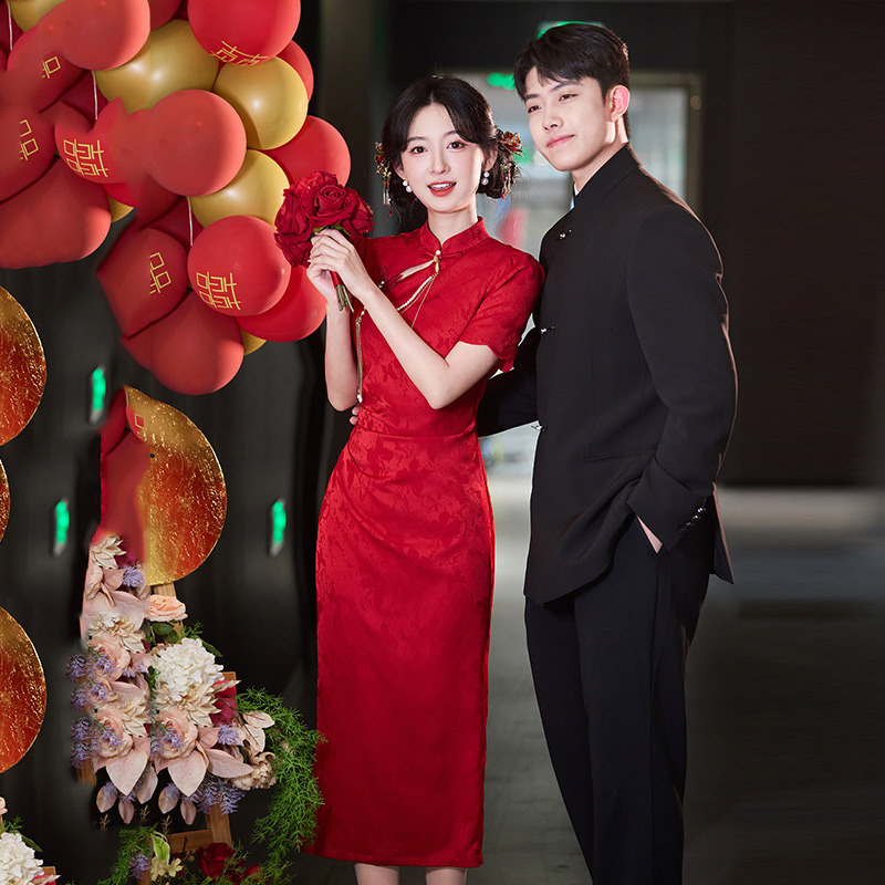 Красное современное платье-ципао в китайском стиле, улучшенный молодежный стиль, элитное платье для помолвки, платье для торжеств, платье для невесты на выпускной.
