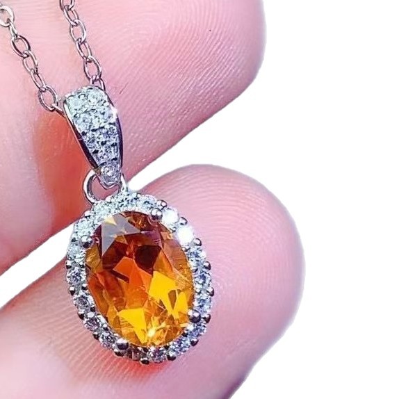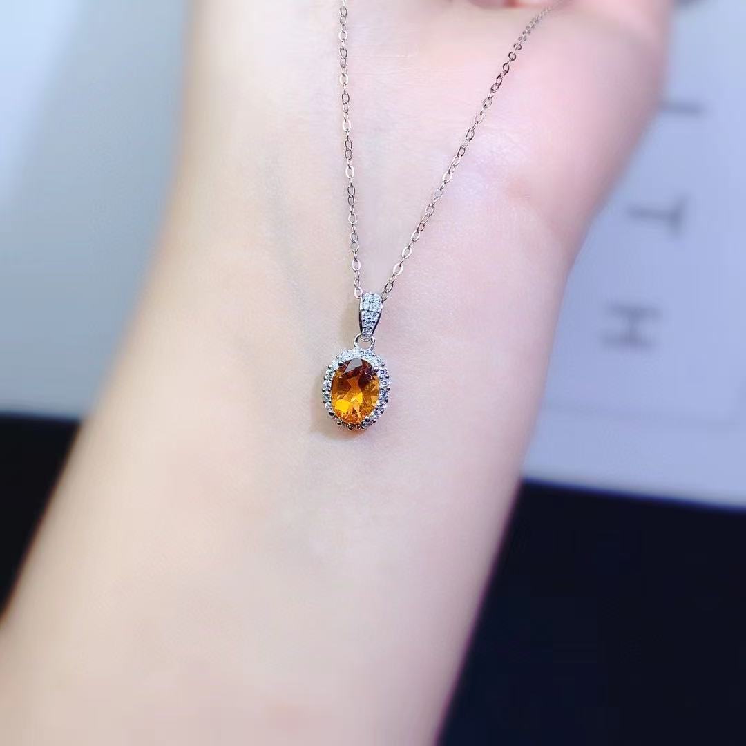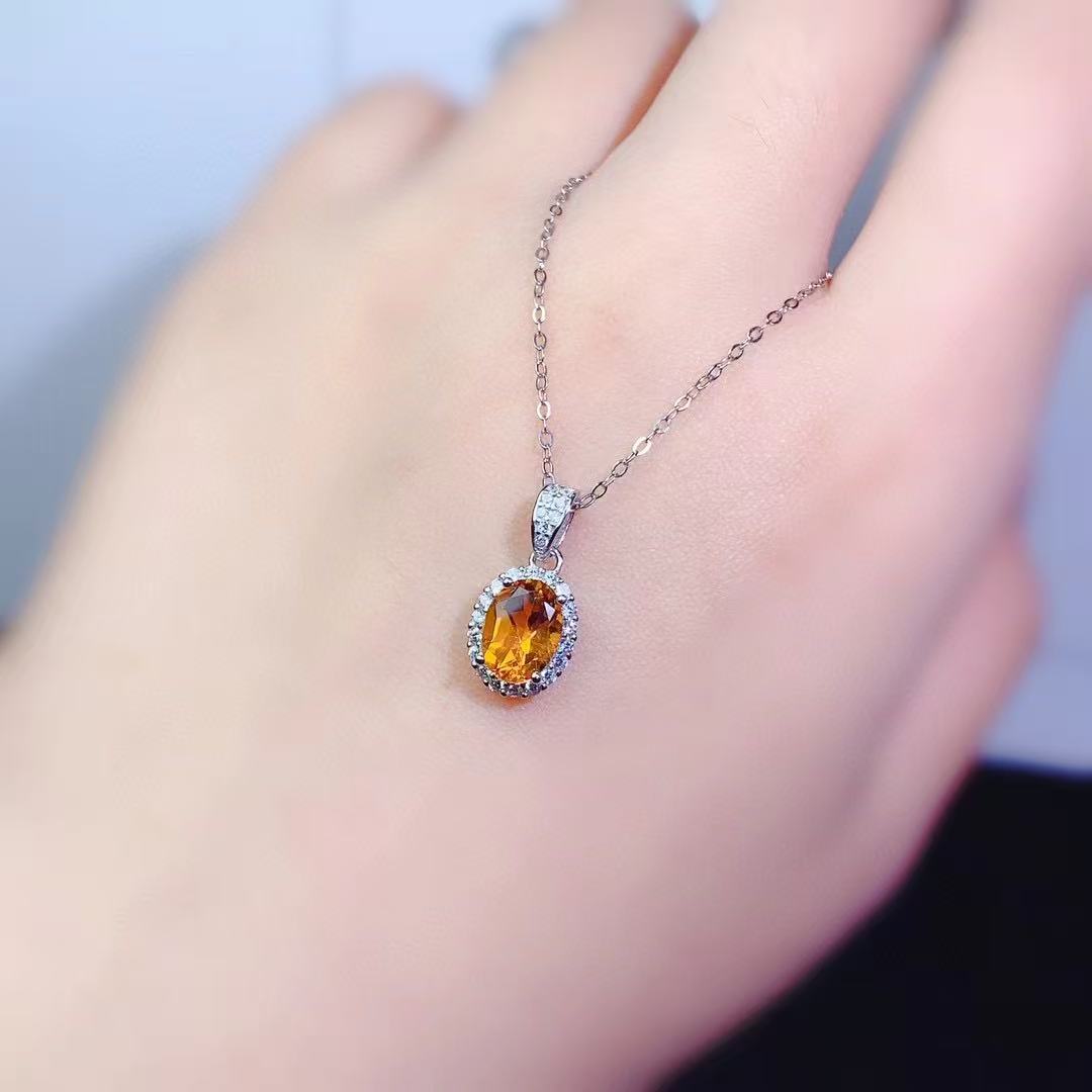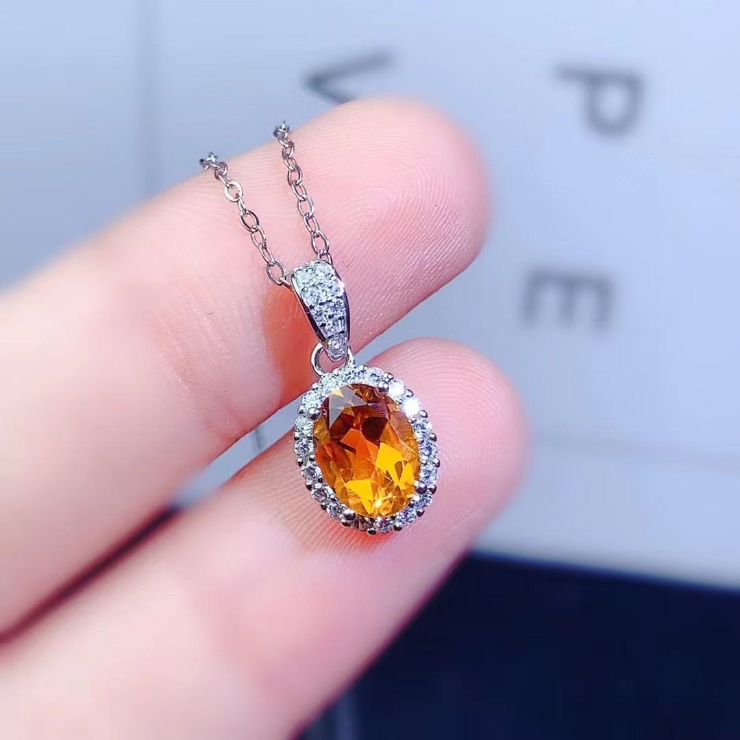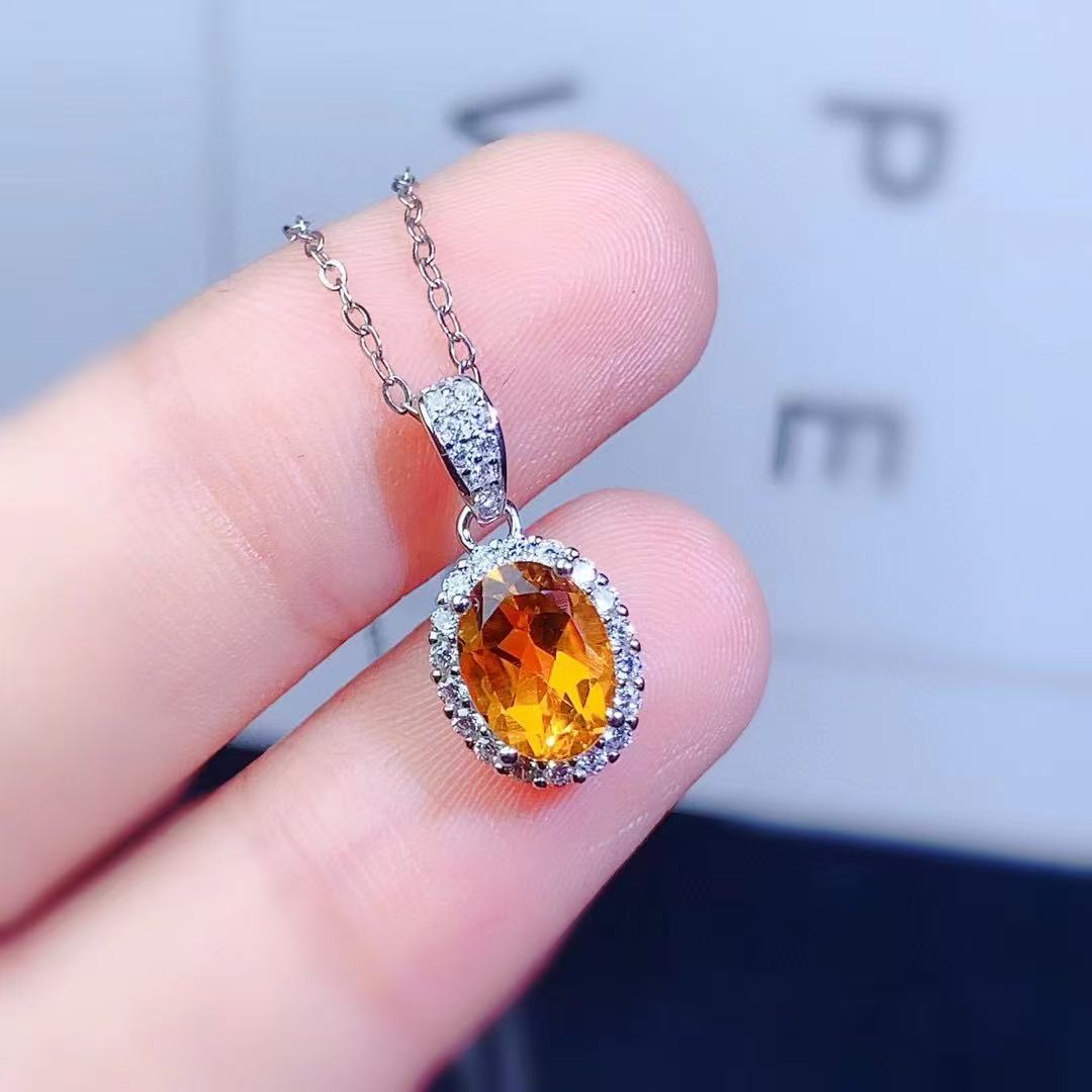 Подвеска из стерлингового серебра S925 с натуральным цитрином, простое и модное украшение с цветными камнями, цепочка на ключицу, женские украшения с кристаллами.