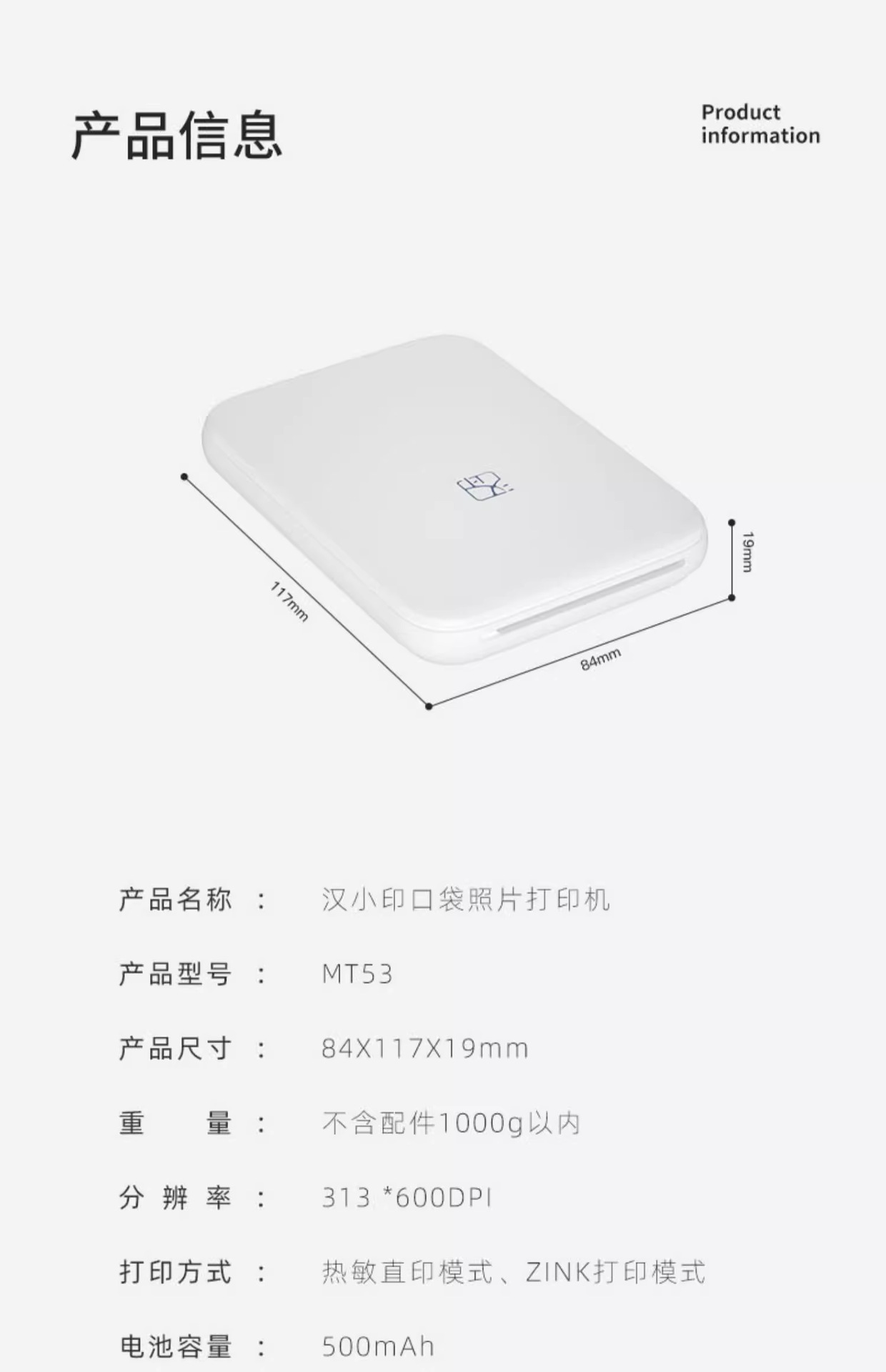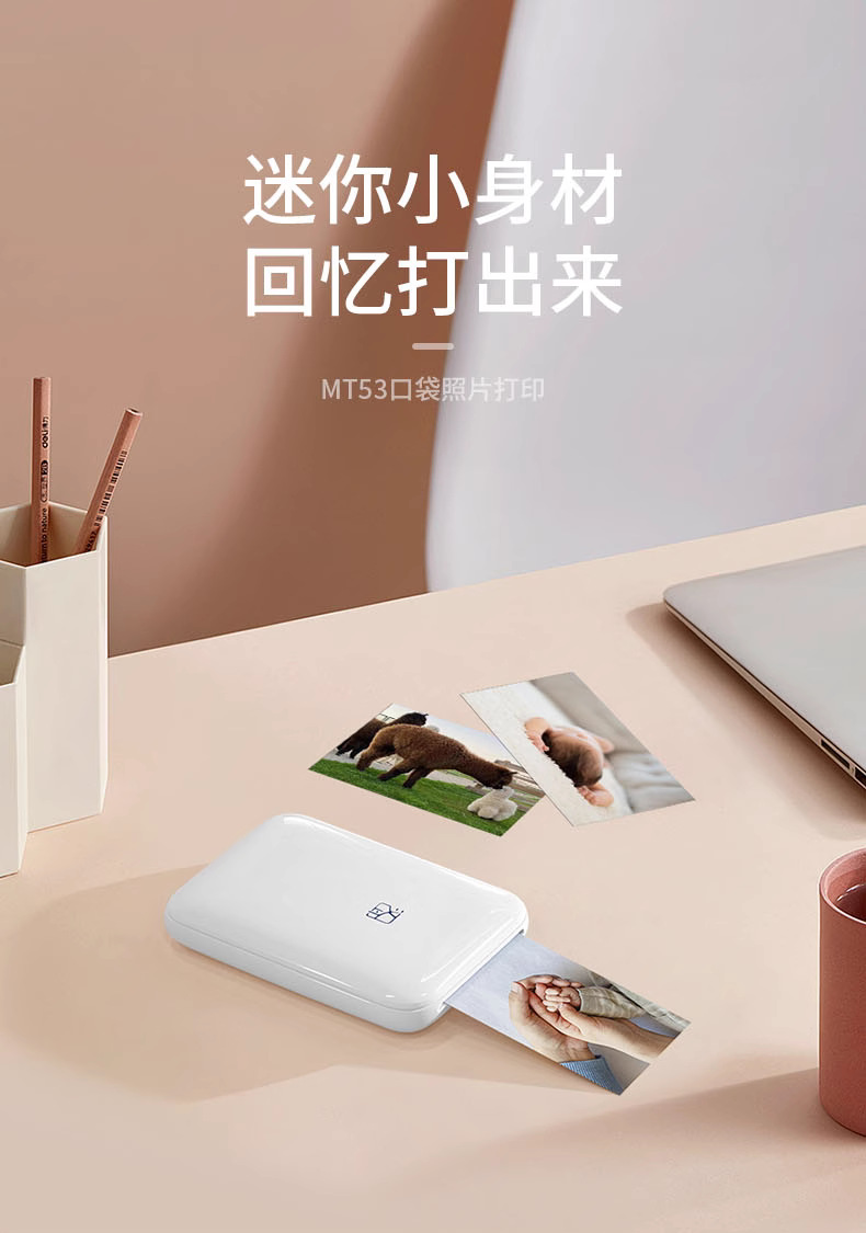 汉印MT53照片打印机迷你三英寸蓝牙口袋便携式手机证件相片打印机