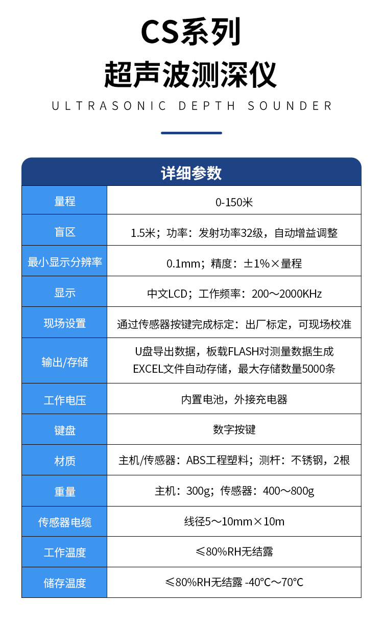 Ультразвуковой детектор глубины воды 50m TZ-CS50; Ультразвуковой детектор глубины воды 80m TZ-CS80; Ультразвуковой детектор глубины воды 120m TZ-CS120; Прибор для измерения глубины и температуры воды типа Sono TZ-CSW150; Детектор глубины и температуры воды TZ-CS150; 150.1m Стиль кузова TZ-CSW150S; 50m с Bluetooth-печатью, GPS-позиционированием TZ-CS50+; 80m с Bluetooth-печатью, GPS-позиционированием TZ-CS80+; 120m с Bluetooth-печатью, GPS-позиционированием TZ-CS120+; 150m с Bluetooth-печатью, GPS-позиционированием TZ-CS150+