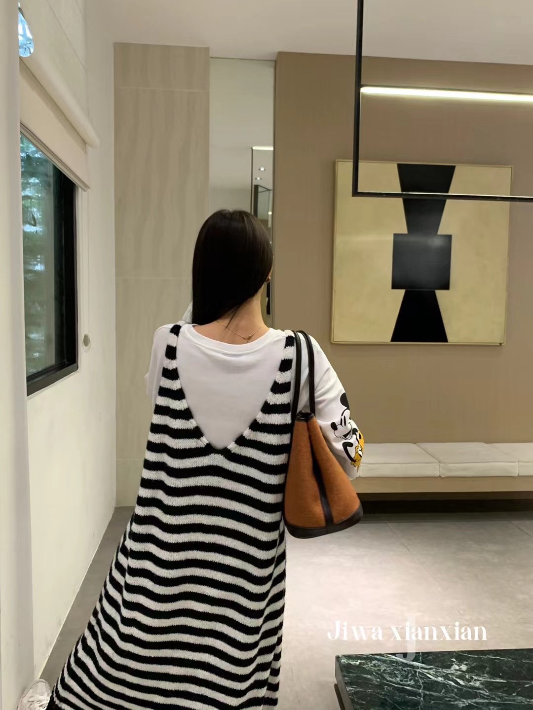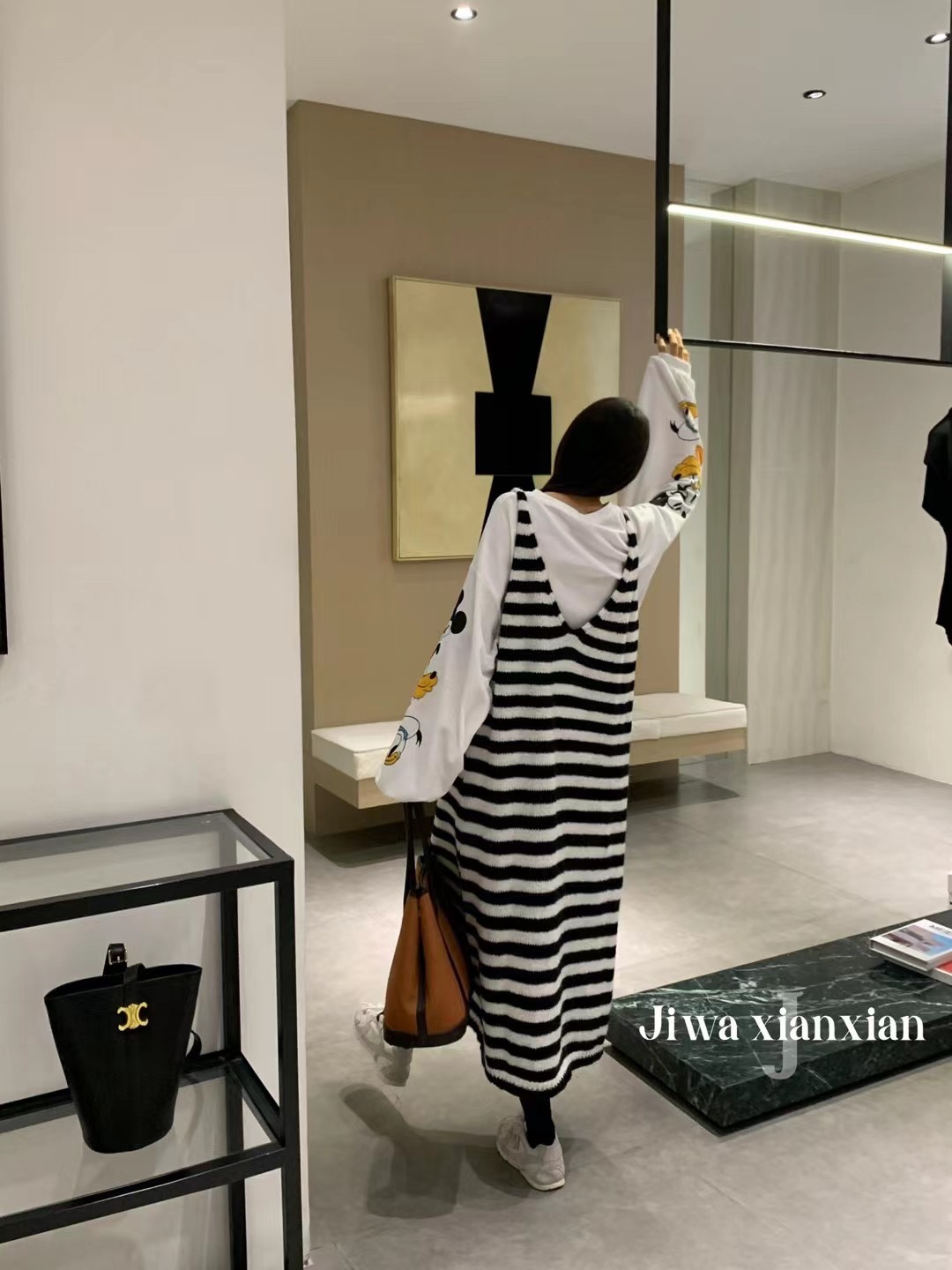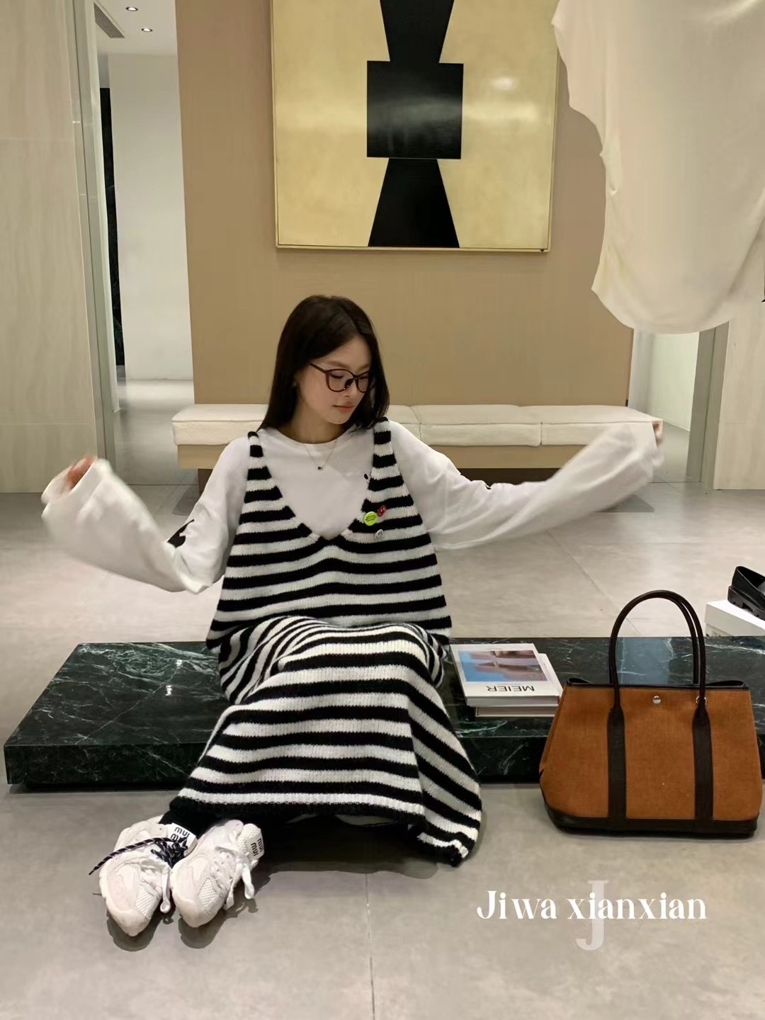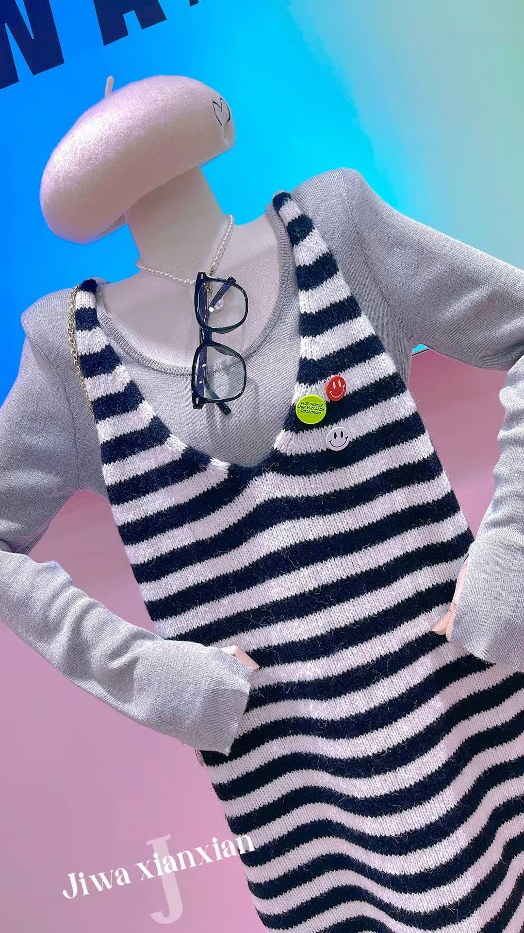Ji Wa Xianxian мультфильм смайлик трехмерная пуговица подтяжка в полоску платье