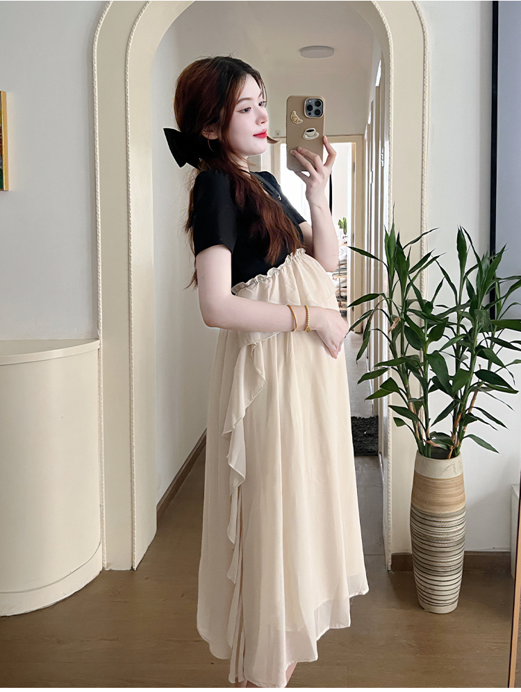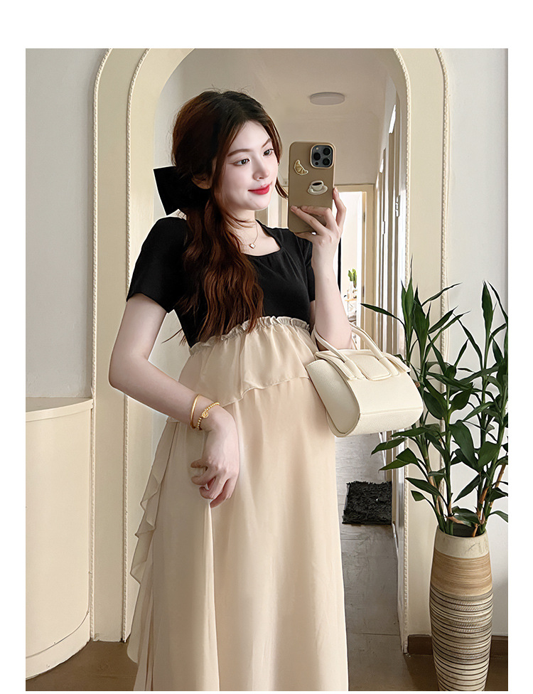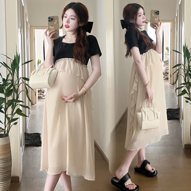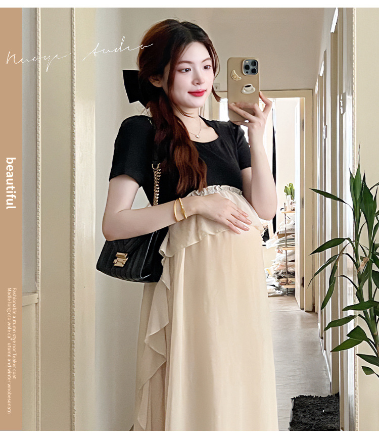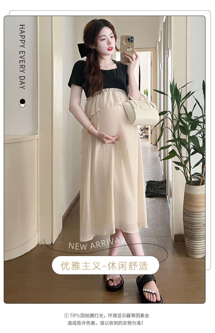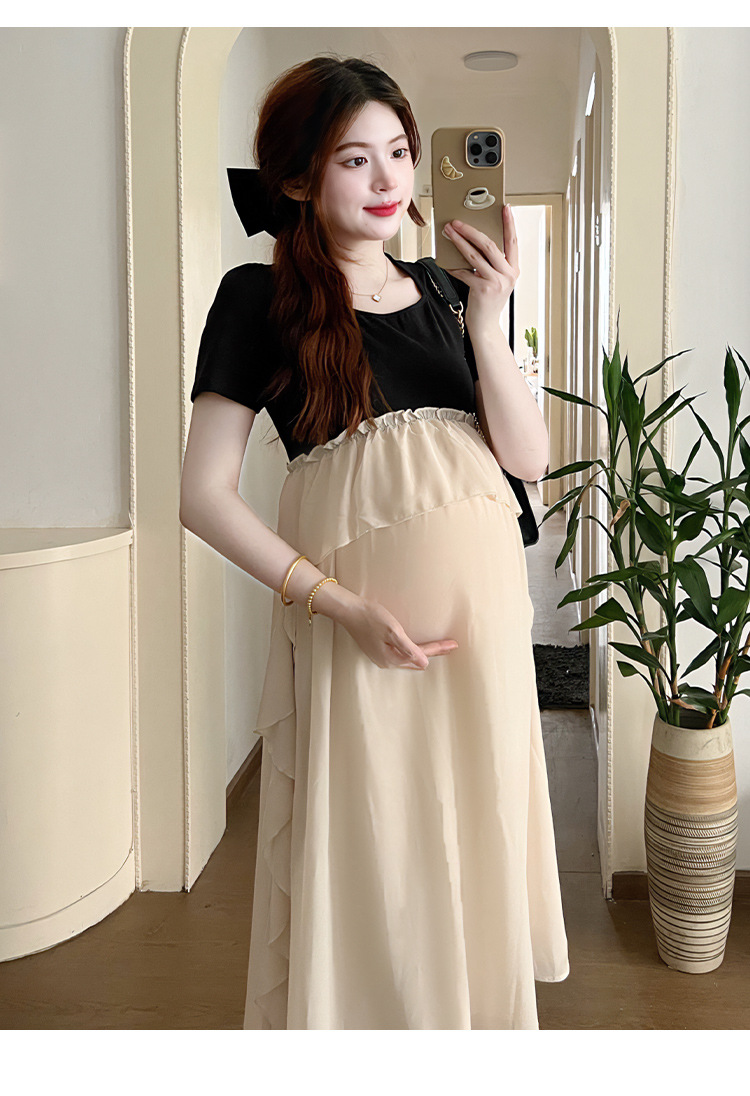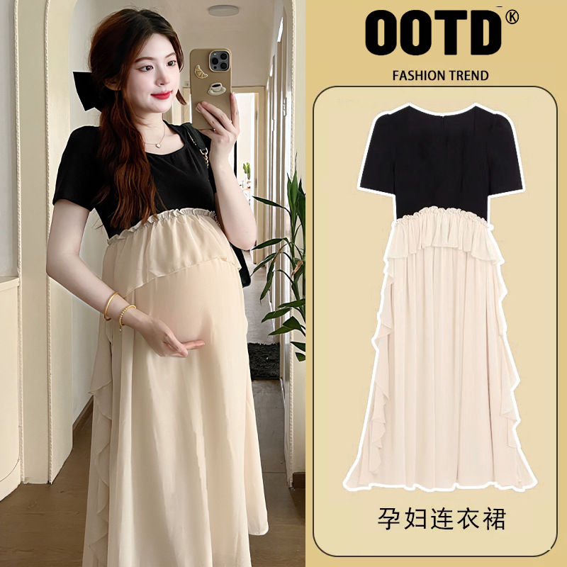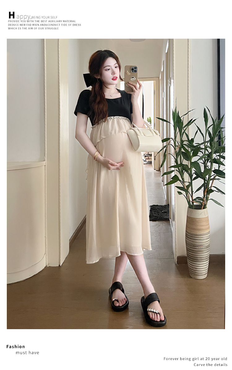 Одежда для беременных 2025 летняя новая маленькая корейская модная футболка сетка сращивание средней и длинной одежды для беременных