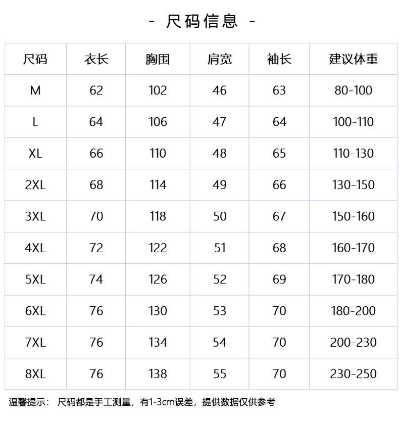 M; L; XL; XXL; 3XL; 4XL; 5XL; 6XL; 7XL; 8XL