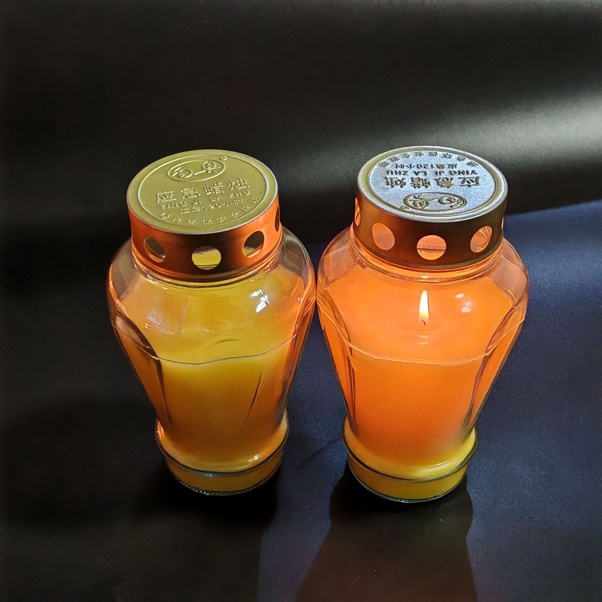 Производитель поставляет стеклянные вотивные свечи для религиозных целей в церквях, с золотыми металлическими крышками и растительным воском, с возможностью индивидуального заказа.