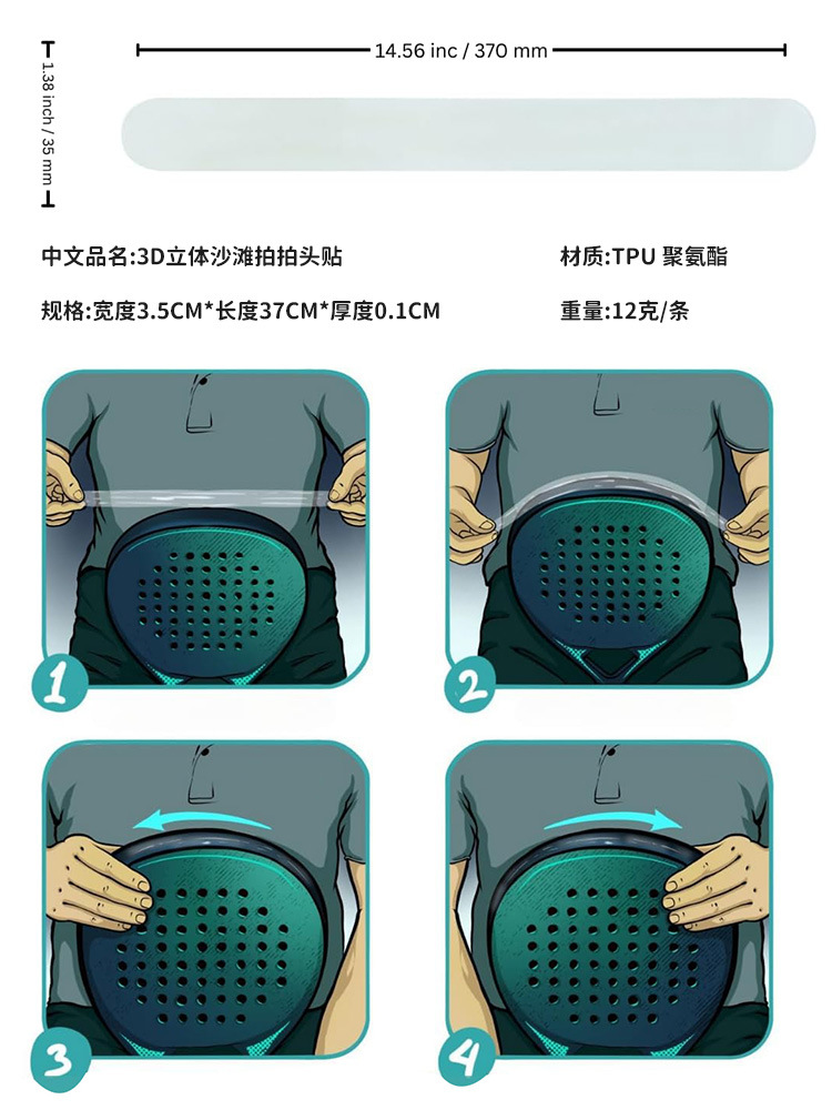 Защитная накладка на головку ракетки для пляжного тенниса, утолщенная, из прозрачного ТПУ, для ракеток для пиклбола, с высокой эластичностью и защитой от падений