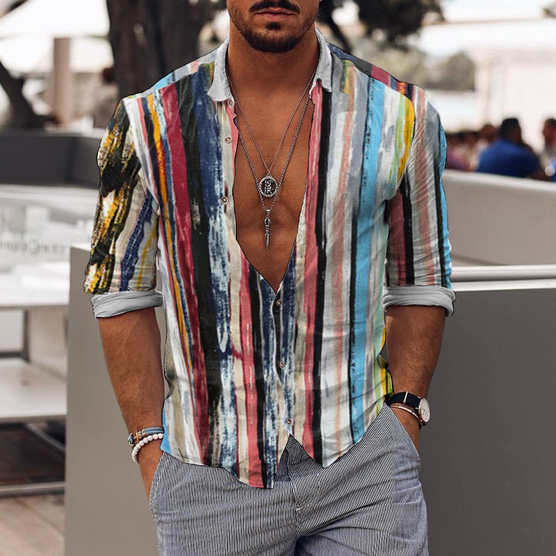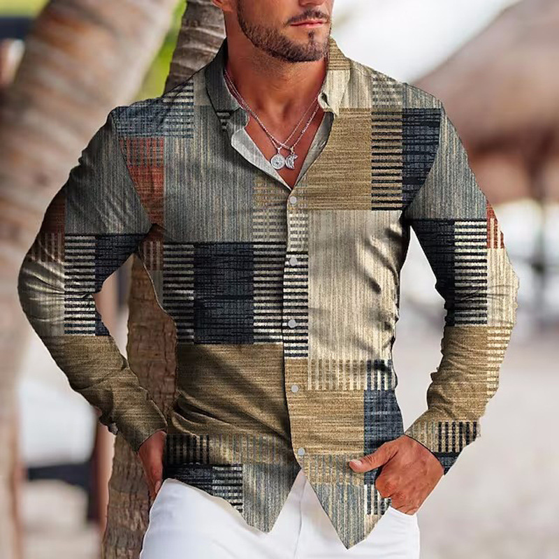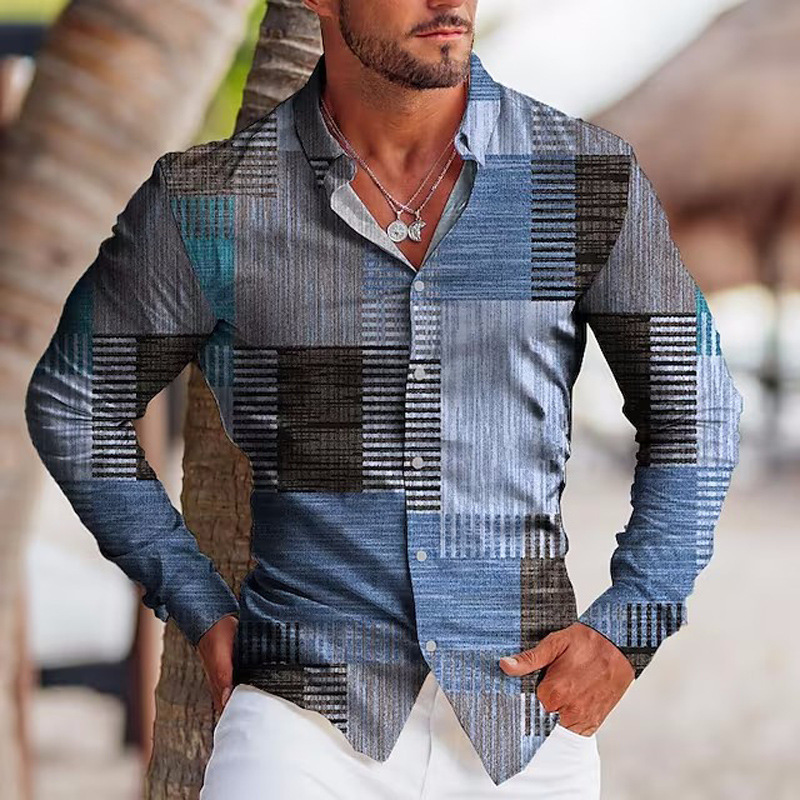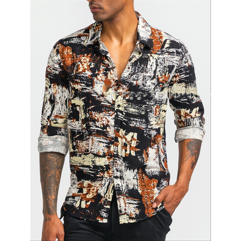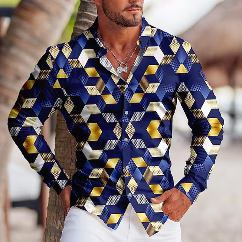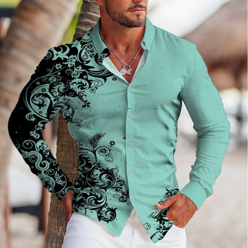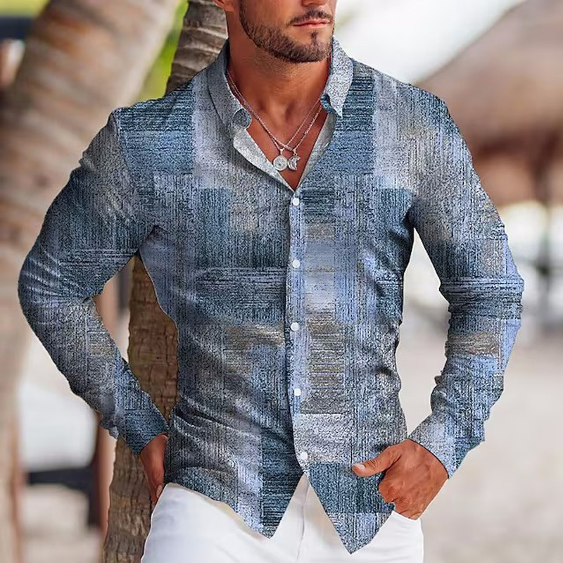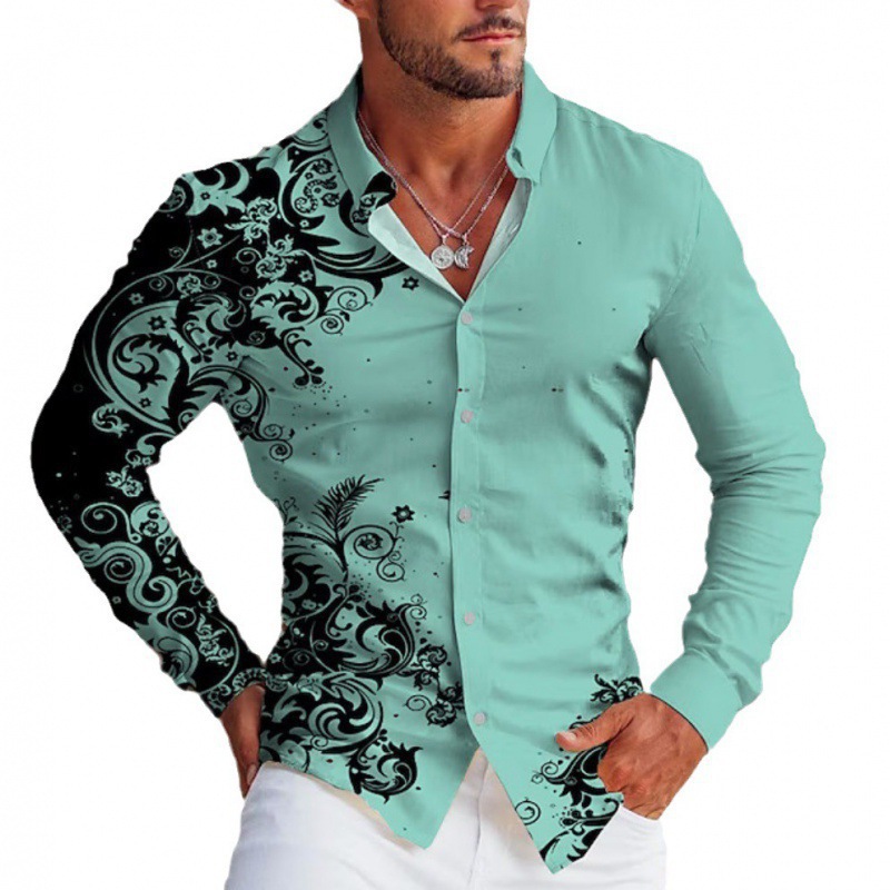2025 внешняя торговля европейская и американская мужская одежда весна и осень новая повседневная тенденция мужская рубашка с длинными рукавами 3D цифровой принт