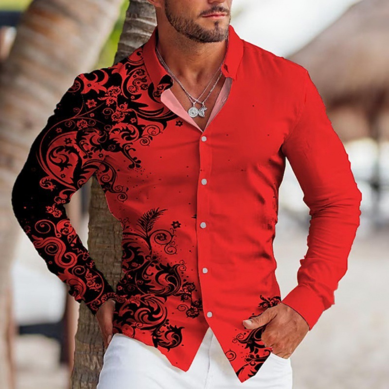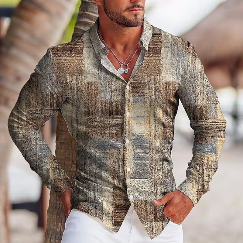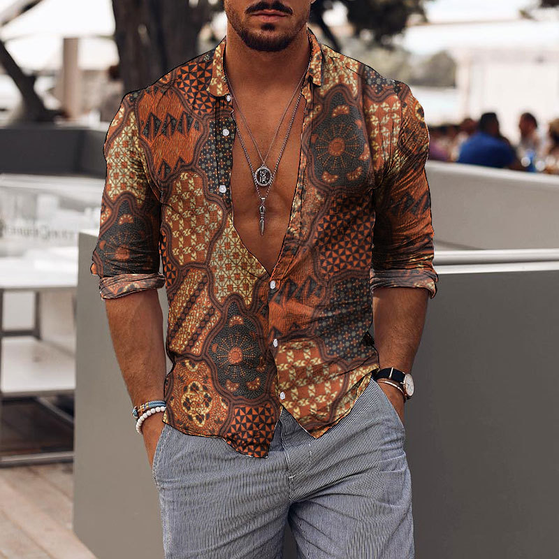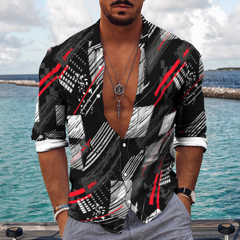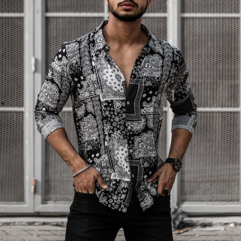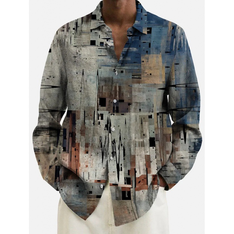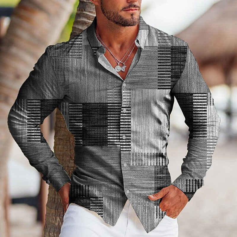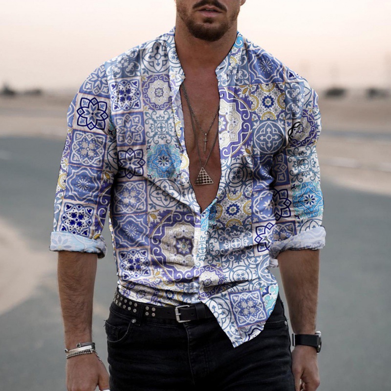 2025 внешняя торговля европейская и американская мужская одежда весна и осень новая повседневная тенденция мужская рубашка с длинными рукавами 3D цифровой принт