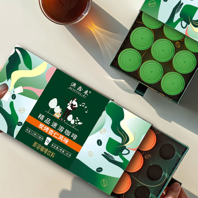 Aoxinlai растворимый кофе с жареным миндалем на древесном угле, 8 шт./кор., черный кофе, капсульная чашка, маленькая банка, черный кофе, оптовая обработка