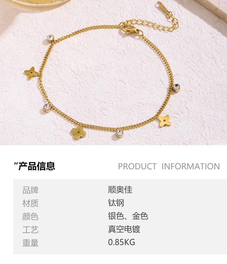 2025 новый браслет с бриллиантом маленький цветок простой дикий новый титановая сталь гальваника летние украшения легкий и сладкий браслет