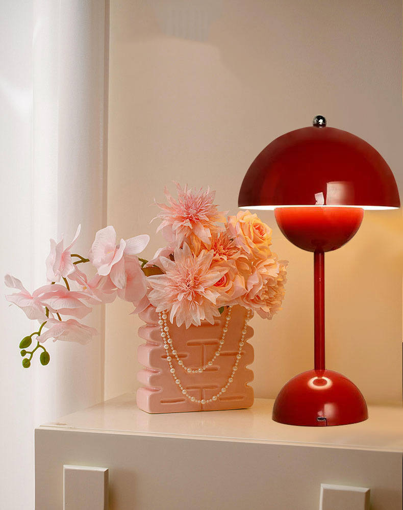 Сетка красный скандинавский цветочный бутон настольная лампа ветра спальня декоративная лампа зарядка сенсорный кабинет производитель грибной лампы