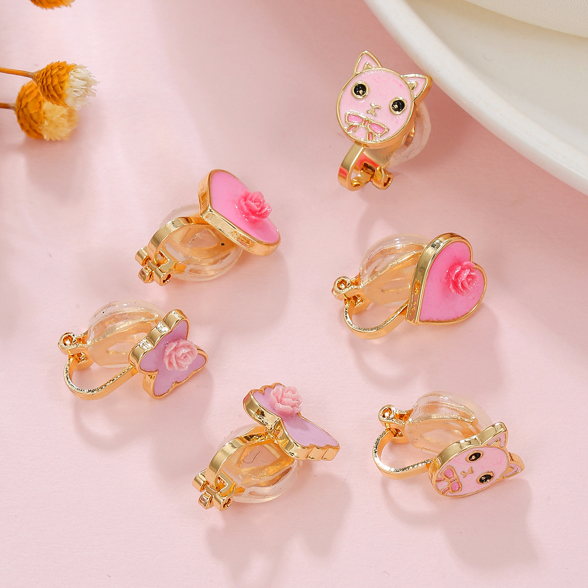 Трансграничная милая принцесса серия розовые зажимы для ушей любовь бабочки котенок Ушные зажимы супер милые девочки уши