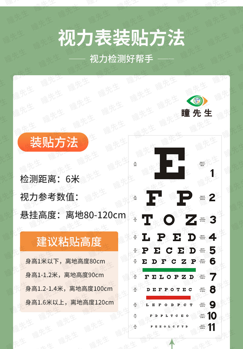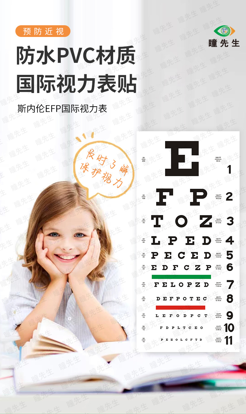 Спот ПВХ мягкий пластик США Снеллен Снеллен Настенная диаграмма зрения международного стандарта зрения логарифма настенная диаграмма