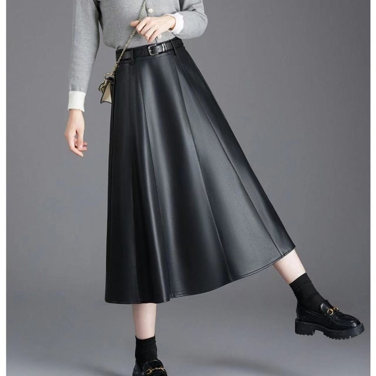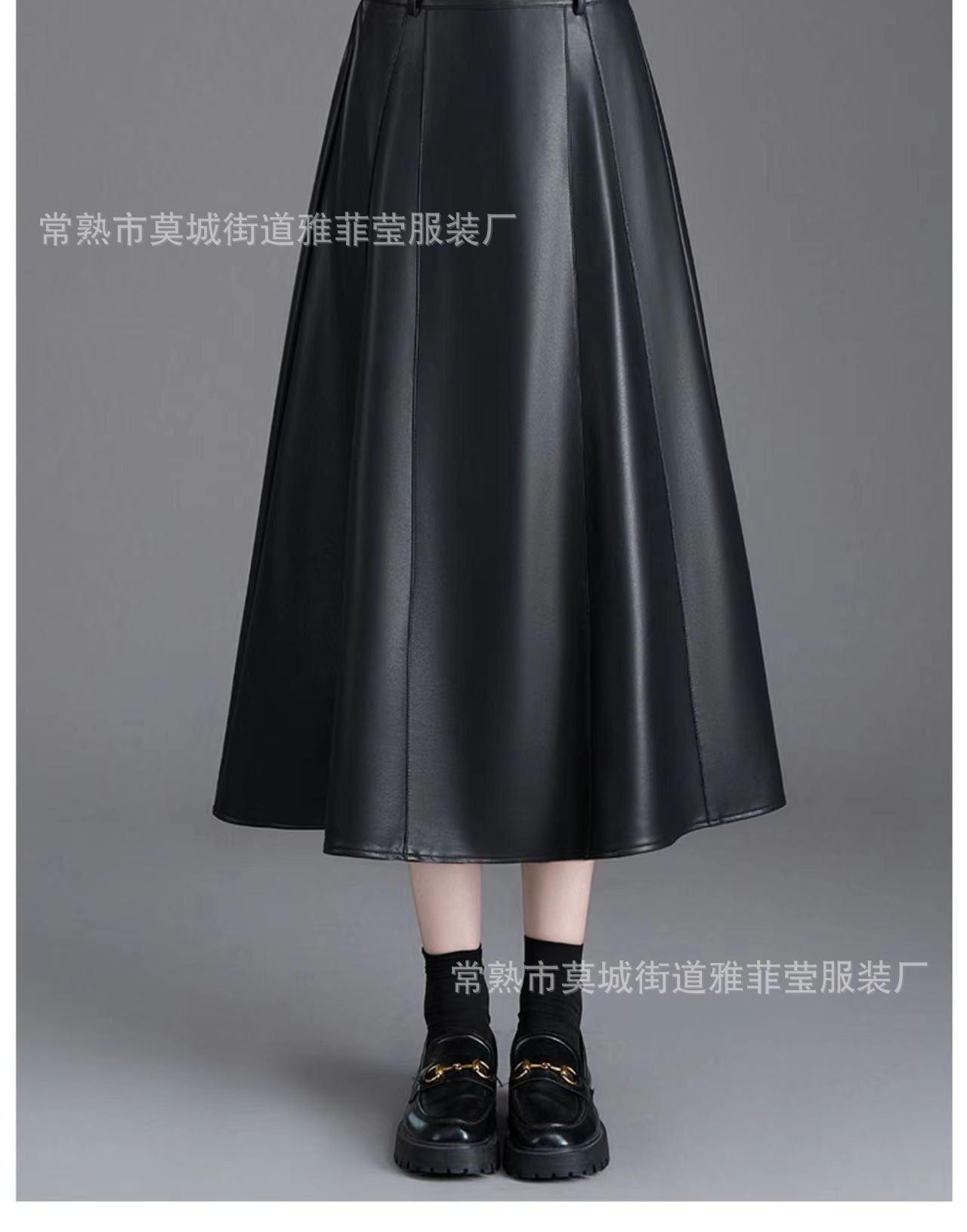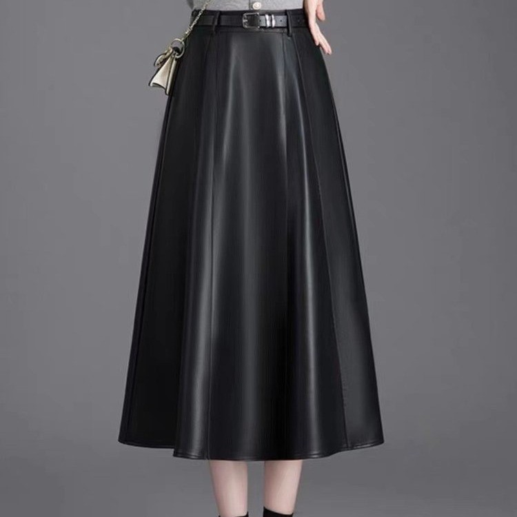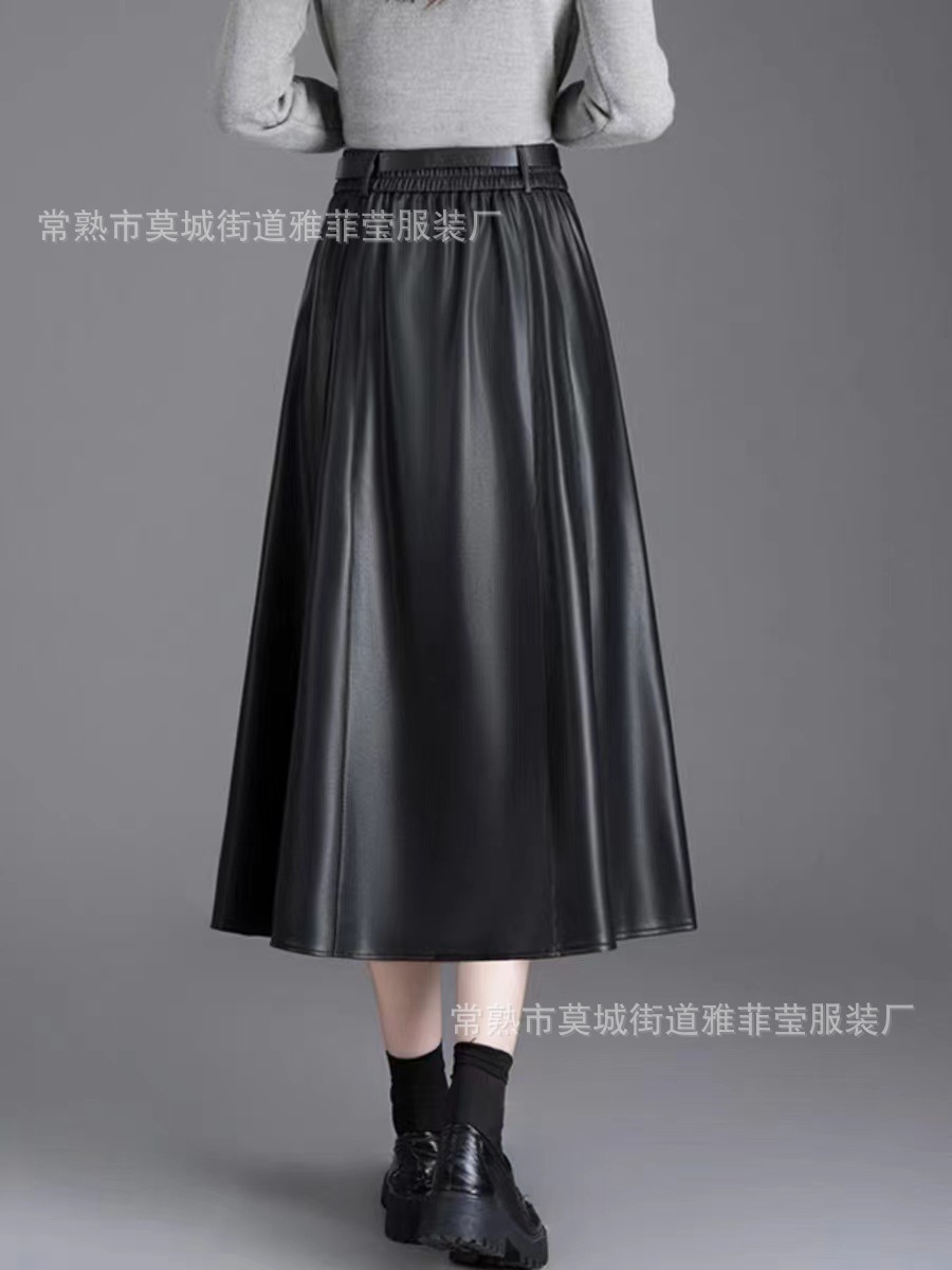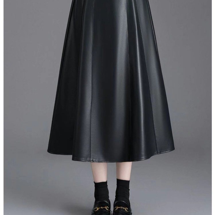 2025 новая длинная минималистская версия кожаной юбки модной большой маятниковой юбки с высокой талией темперамент большой размер юбки мамы
