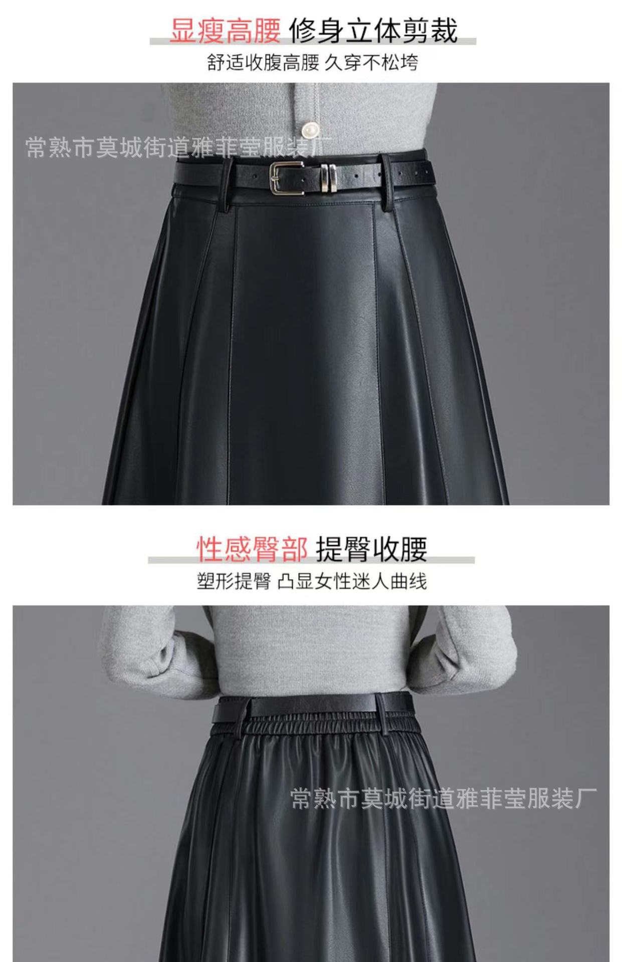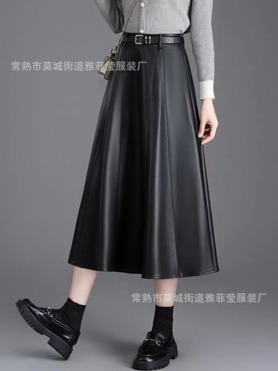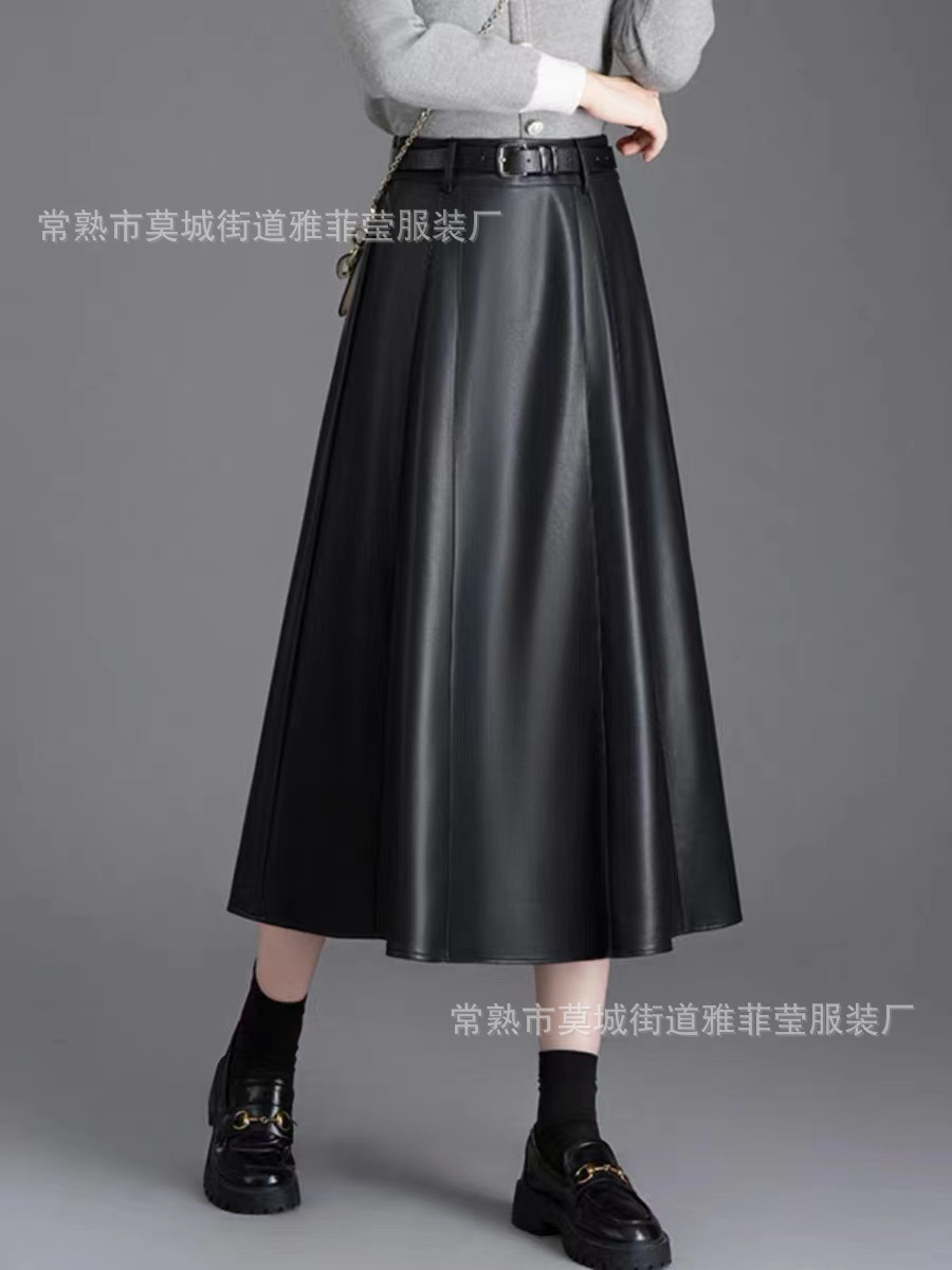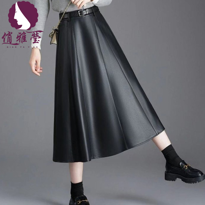 2025 новая длинная минималистская версия кожаной юбки модной большой маятниковой юбки с высокой талией темперамент большой размер юбки мамы
