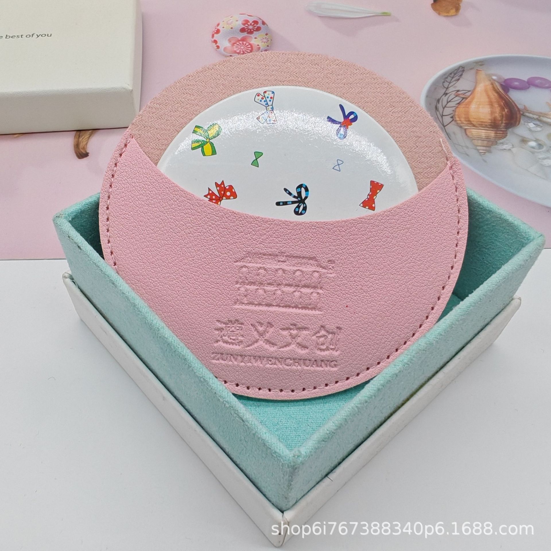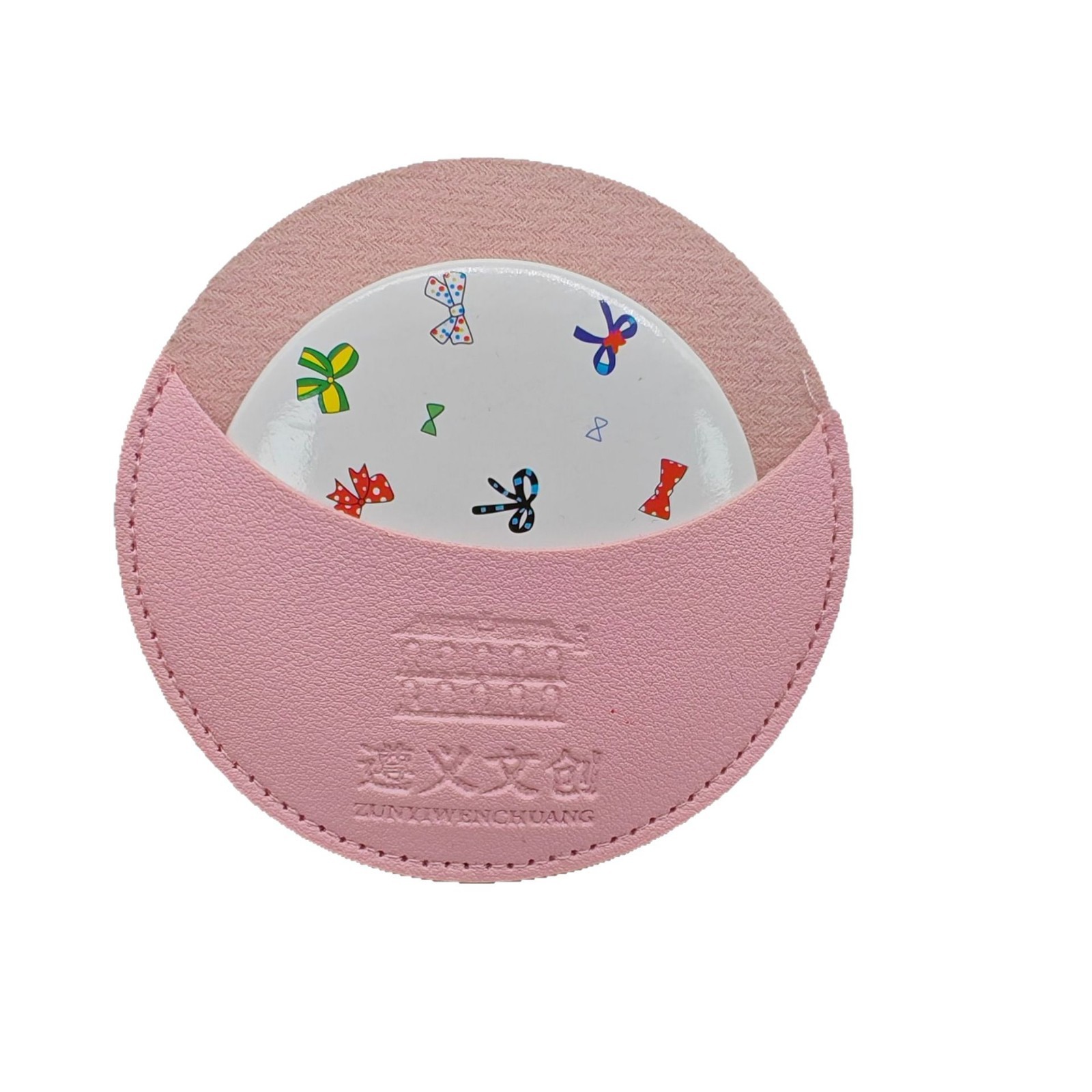 Производитель поставляет кожаную круглую защитную сумку для зеркала для макияжа, пудру для макияжа, портативную противоударную кожаную сумку, бесплатную проверку.
