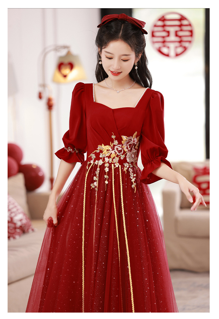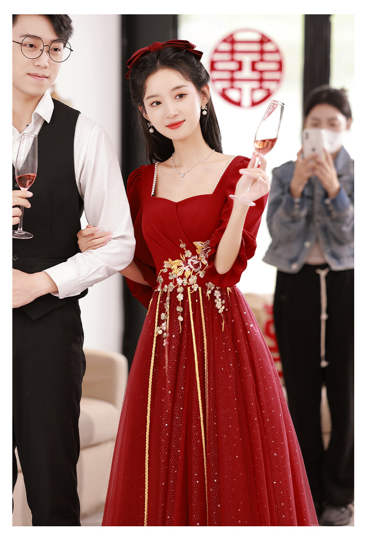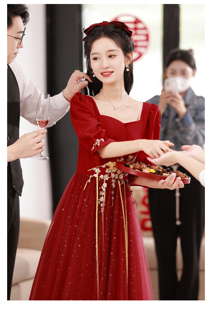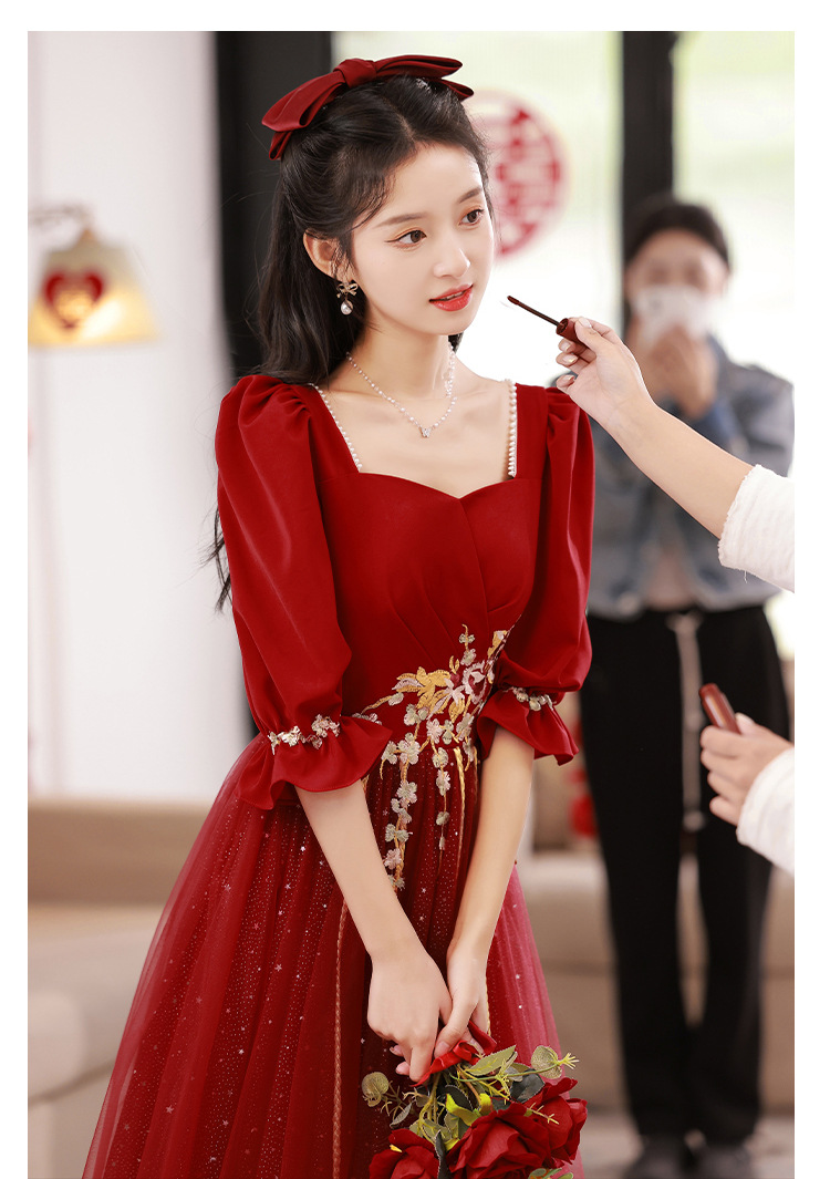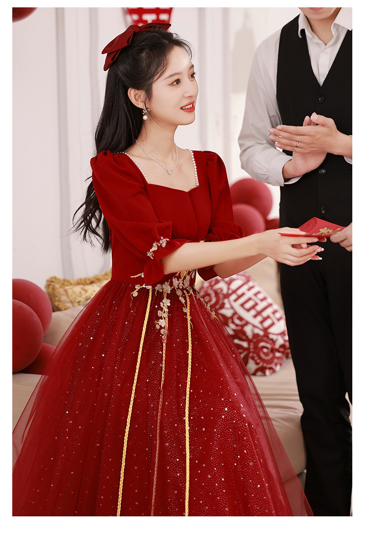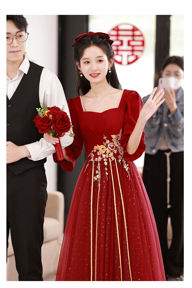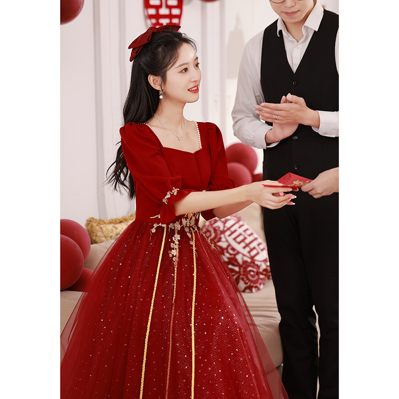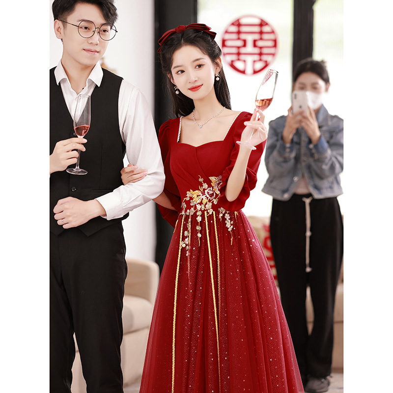 Большой размер тост невеста тонкая 2025 новый винно-красный толстый мм свадебное платье