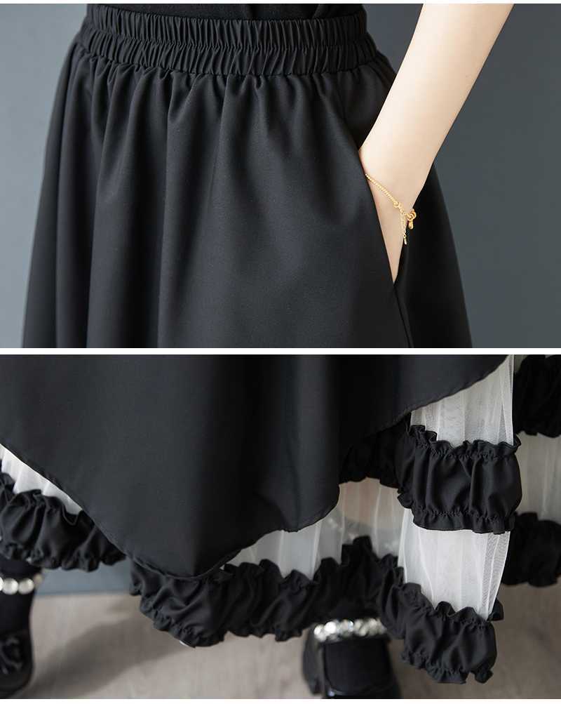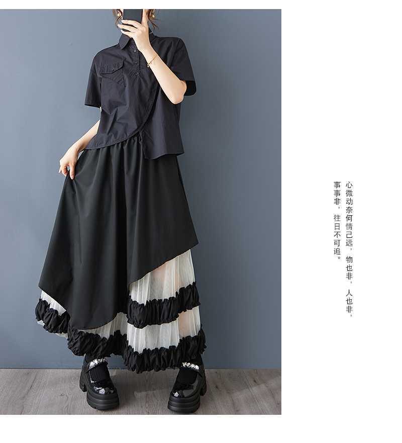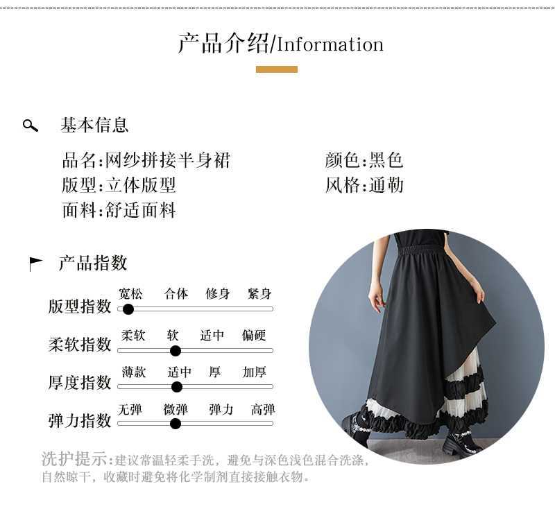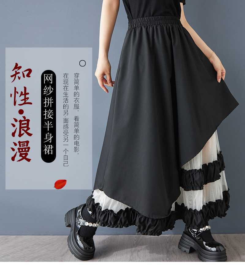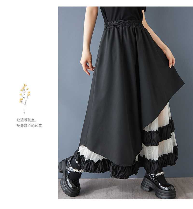 Реальная стрельба нишевые дизайнерские ощущения нерегулярные сетчатые юбки сшивания бюстов свободная повседневная нерегулярная юбка с высокой талией