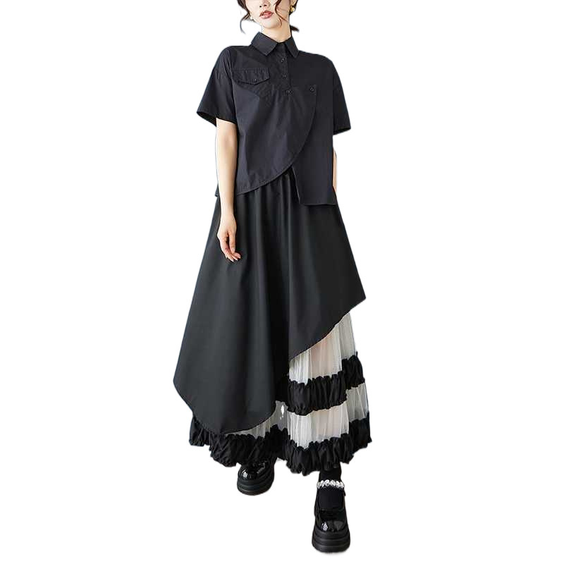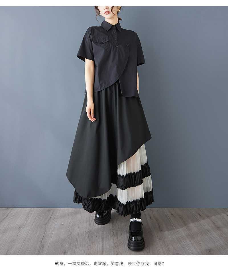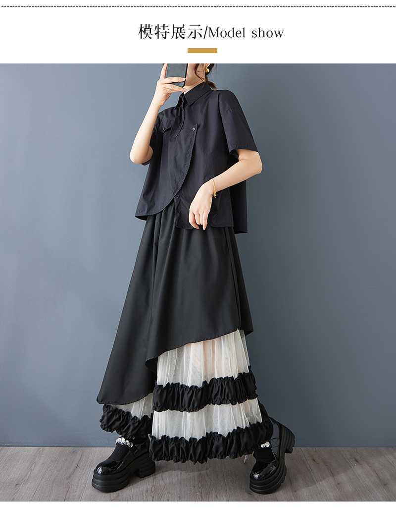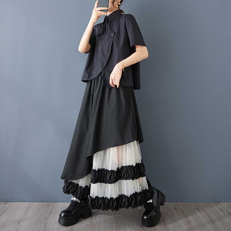 Реальная стрельба нишевые дизайнерские ощущения нерегулярные сетчатые юбки сшивания бюстов свободная повседневная нерегулярная юбка с высокой талией