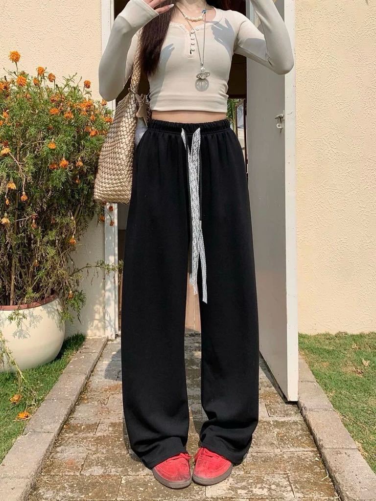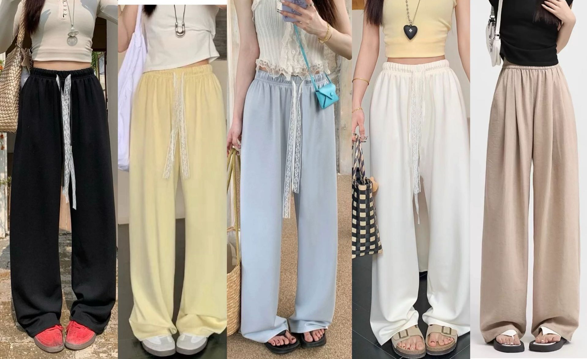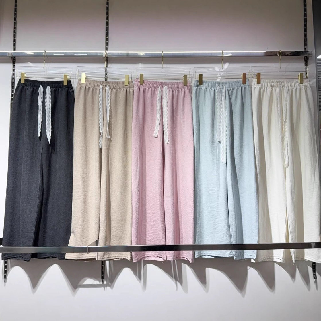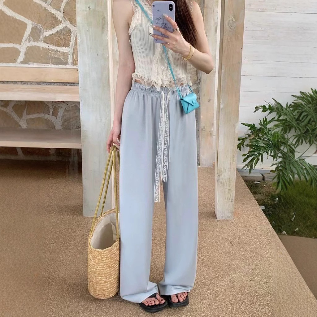 7-цветные дофамин молочные брюки женские кружева талия веревка летняя тонкая ледяная шелковая маленькая текстура с ацетатом широкие брюки женские