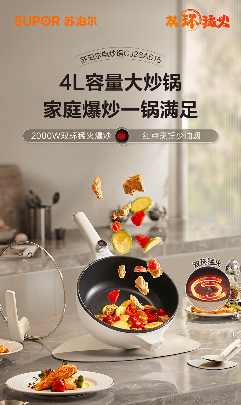 Supor электрический вок 4L электрический котел электрический котел электрический котел электрический котел электрический котел котелок для домашнего приготовления пищи многоцелевой котел CJ28A615