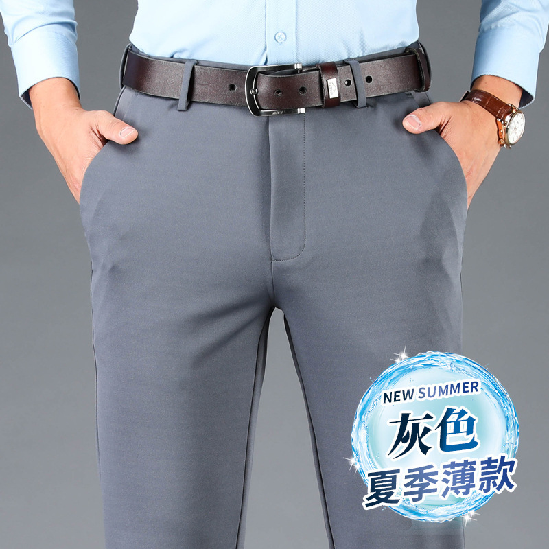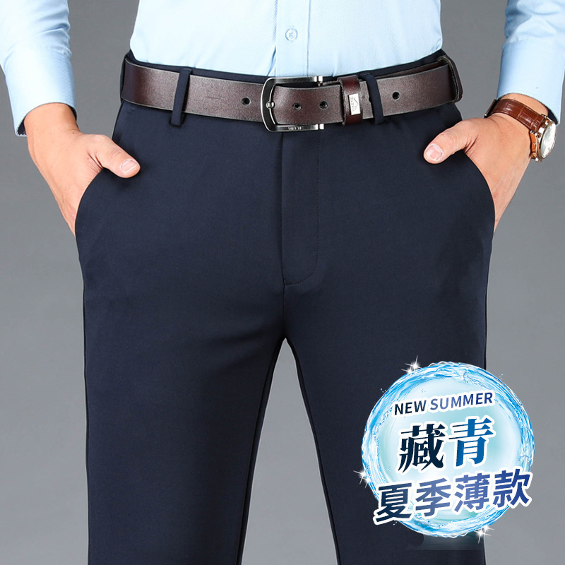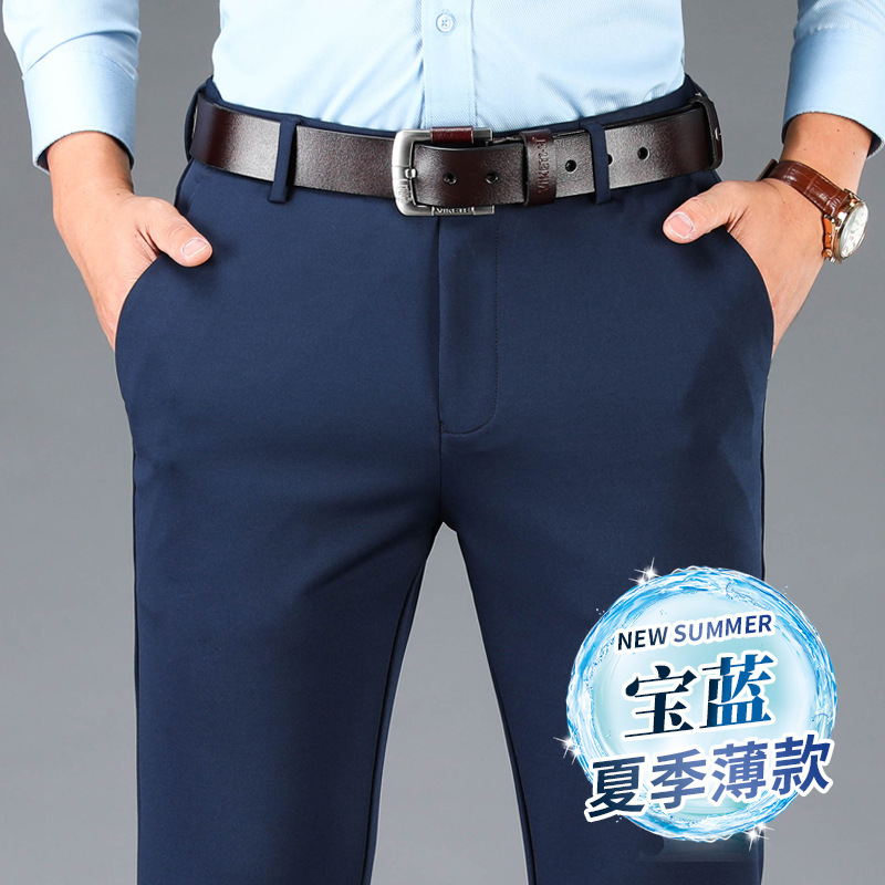 Внешняя торговля специализируется на высокой эластичности без горячего и против морщин Мужские деловые повседневные брюки летние свободные прямые брюки