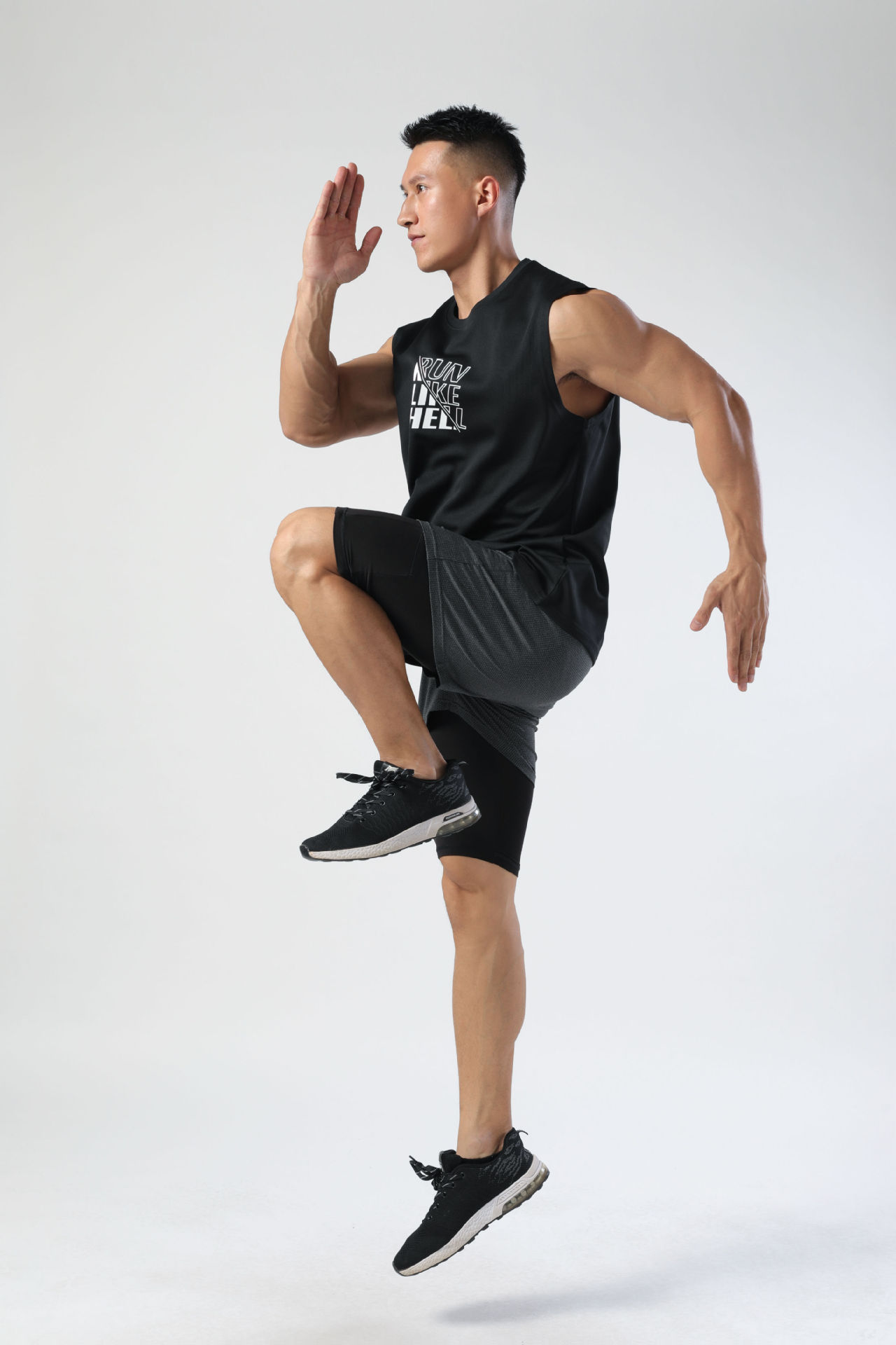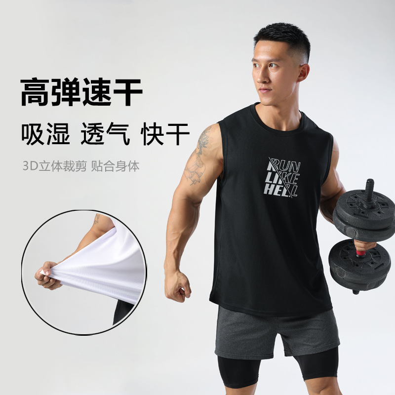 Баскетбольный спортивный тренировочный топ без рукавов для мужчин летом легкий и дышащий быстрый сухой фитнес-высокий пугающий свободный повседневный жилет