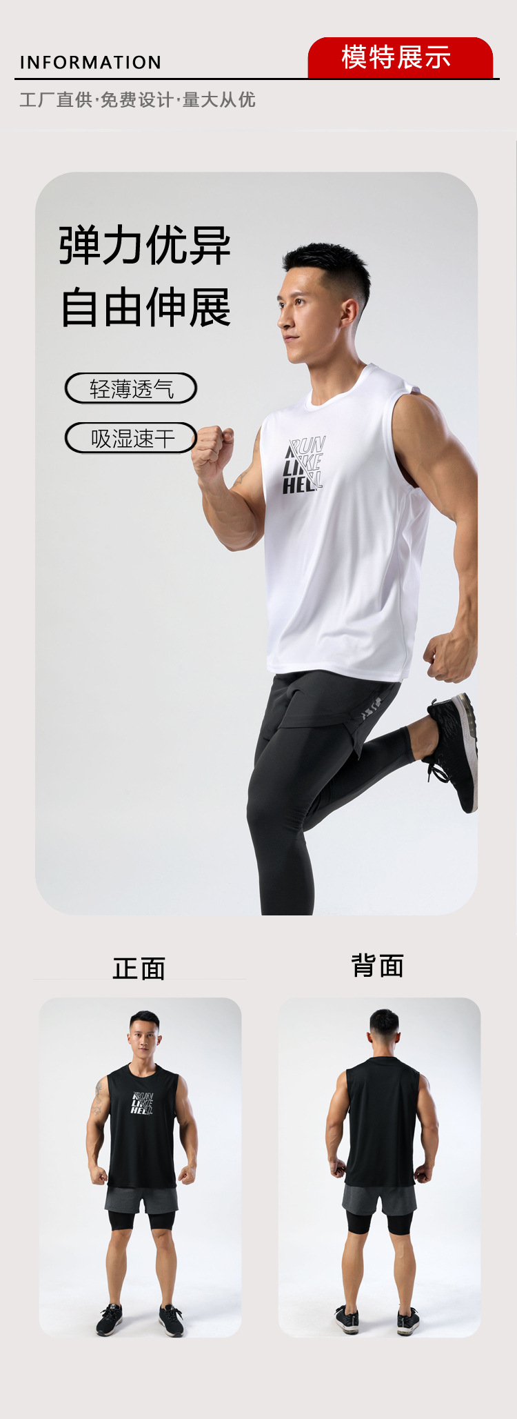 篮球运动训练无袖上衣男 夏季轻薄透气速干健身高弹宽松休闲背心