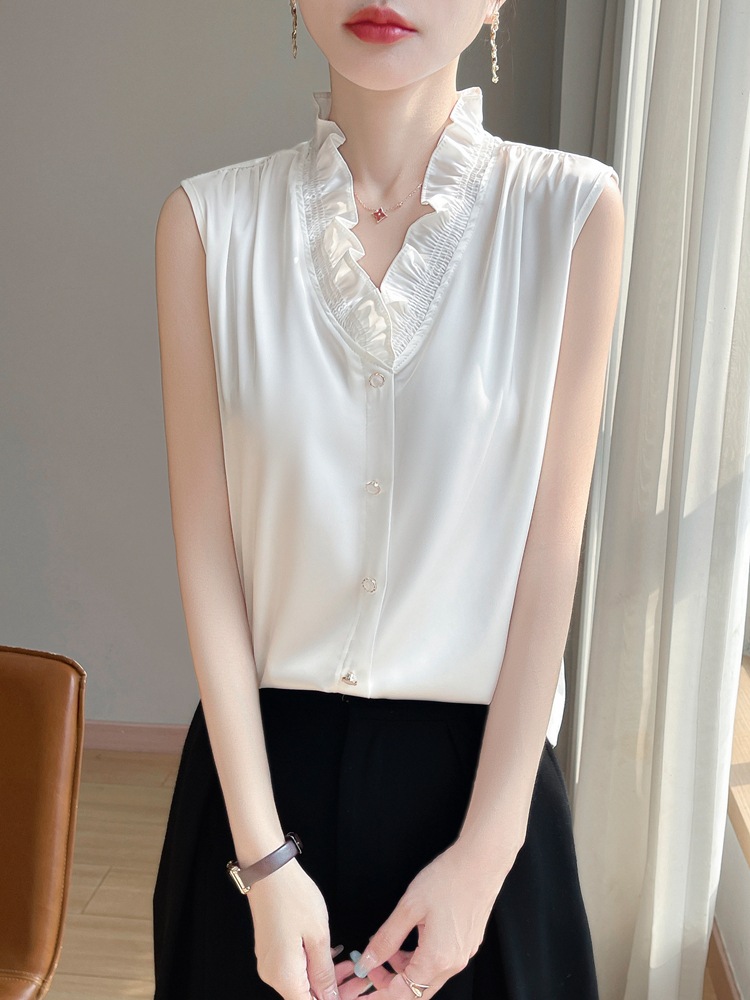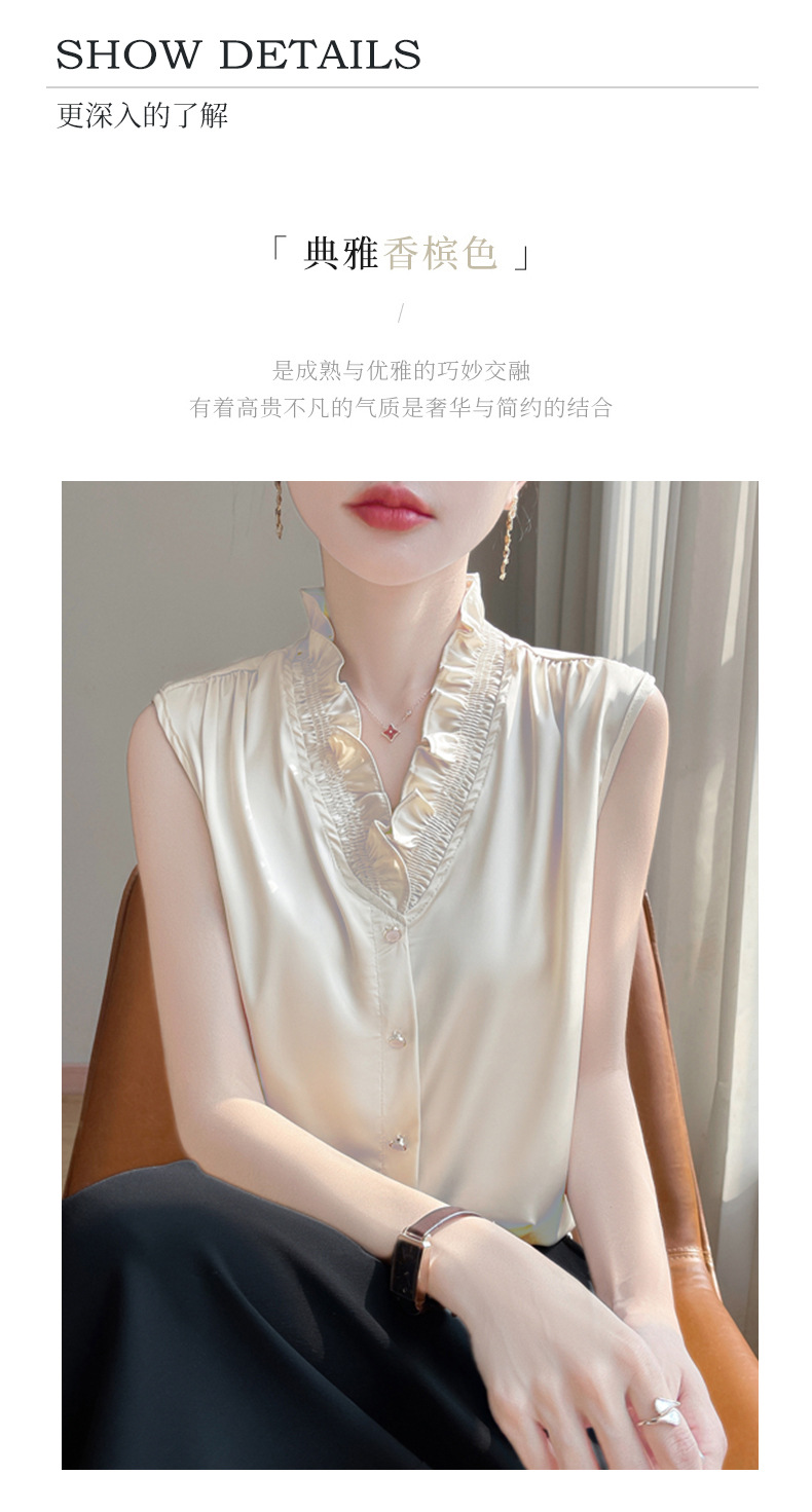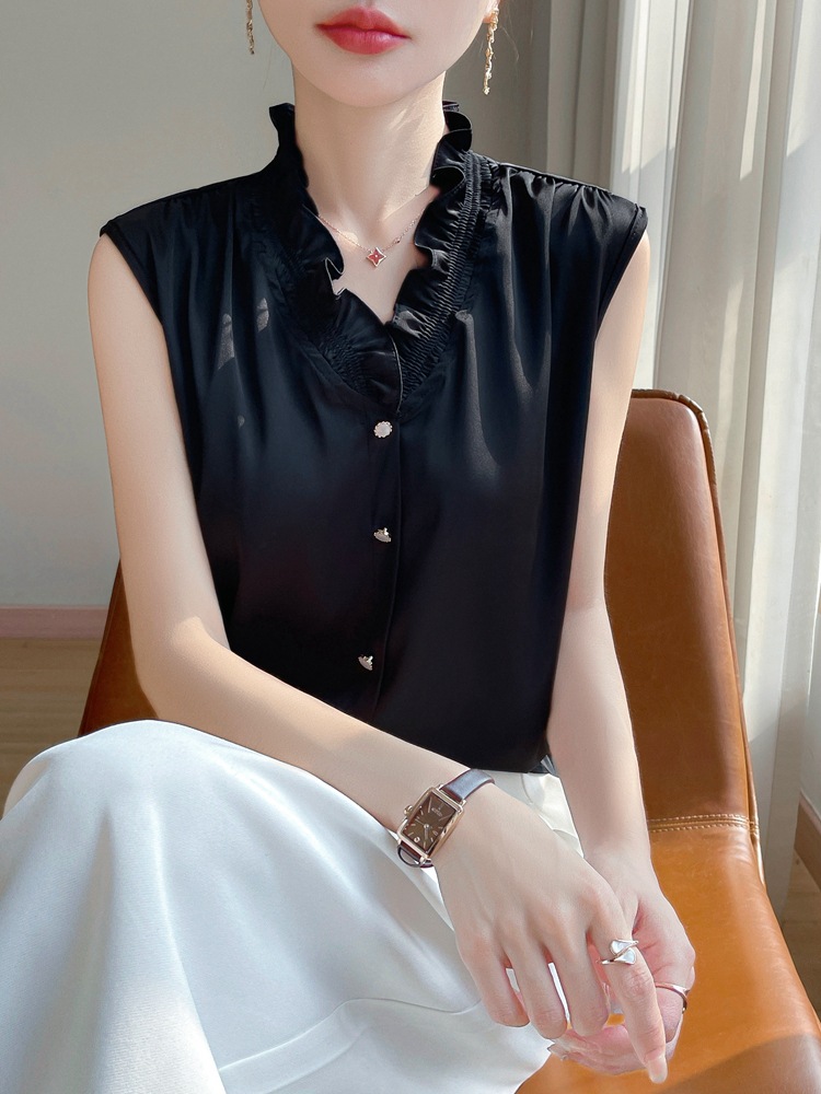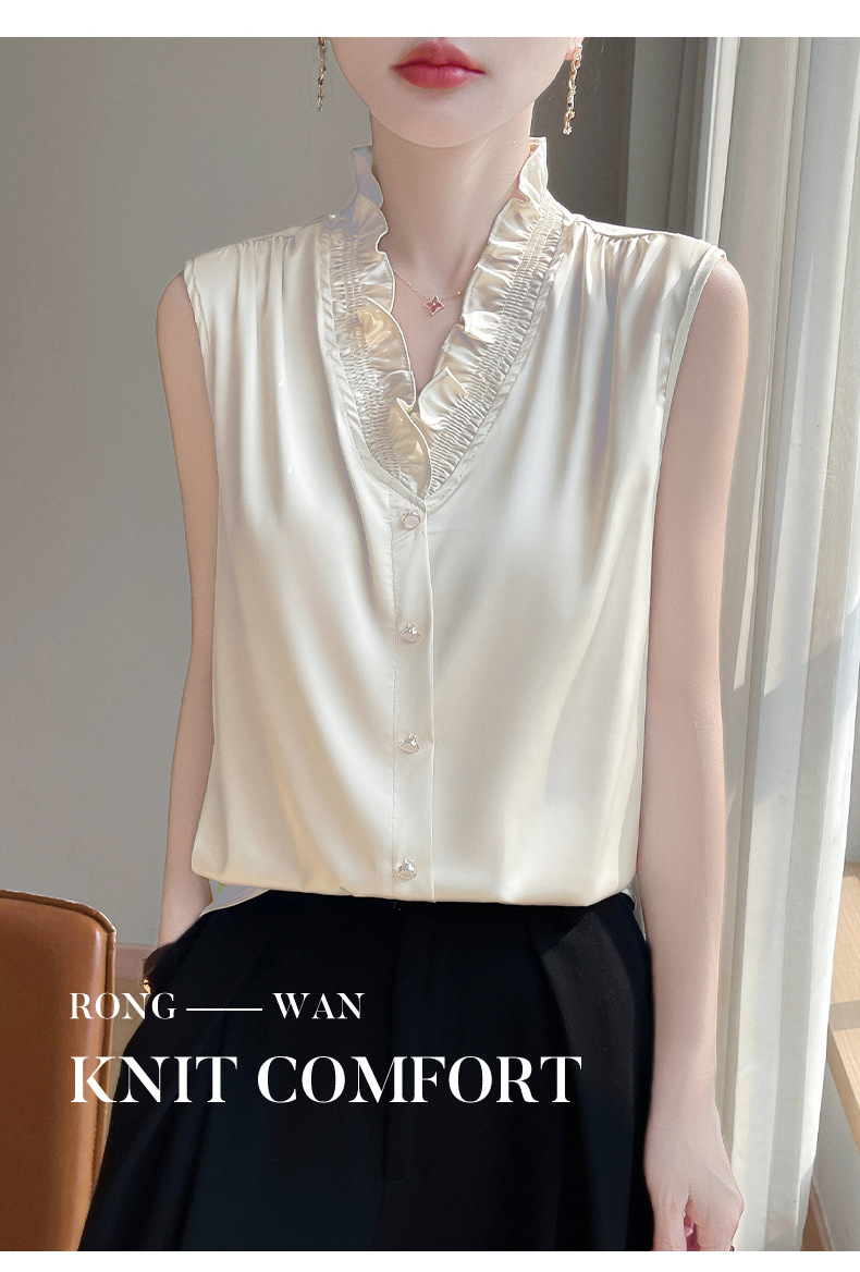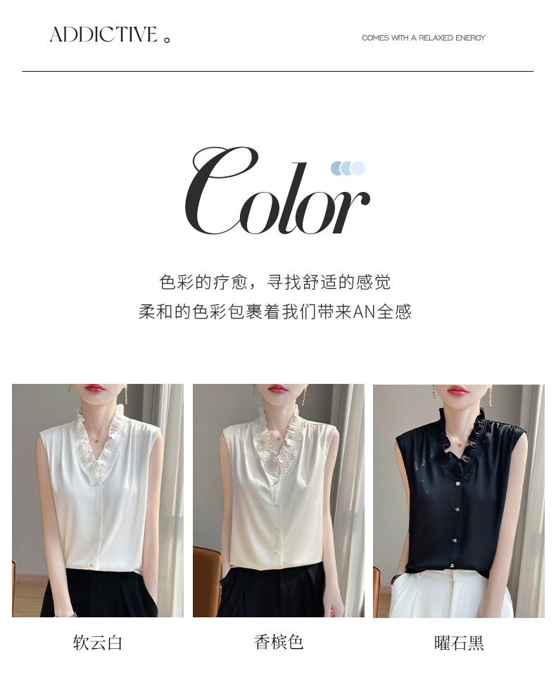 2025 женский весенний и летний новый грибок с воротником без рукавов сплошной жилет шелковистый атласный пригородной тонкий топ
