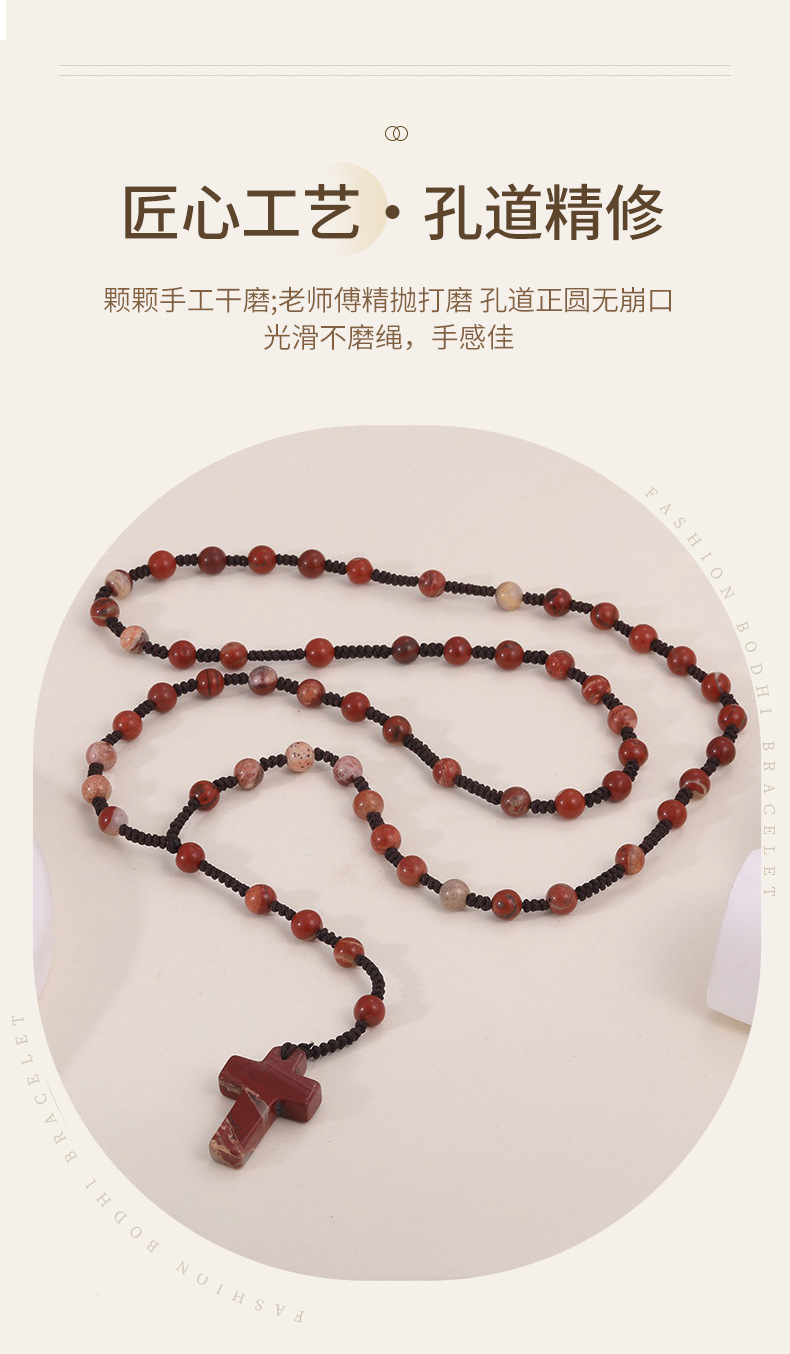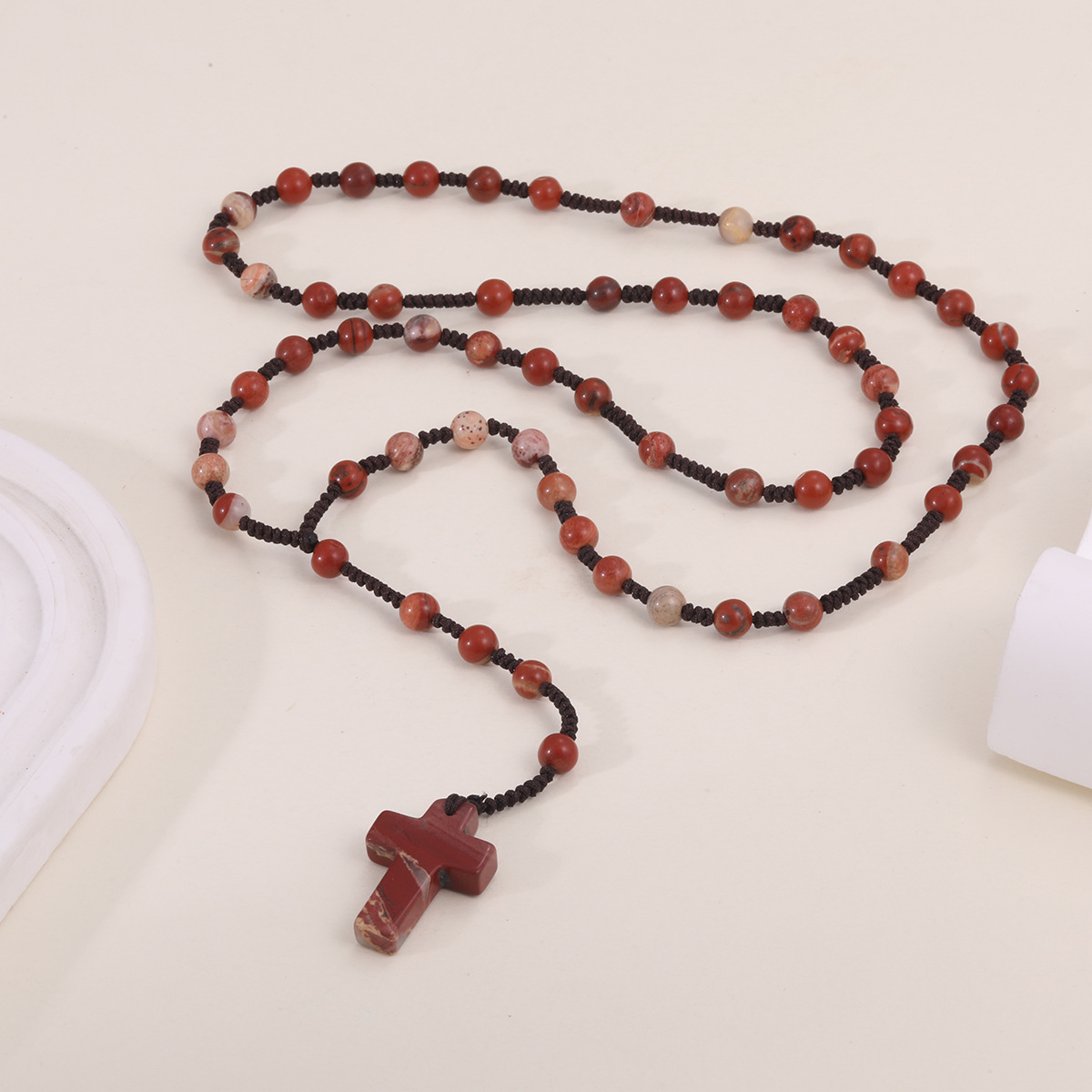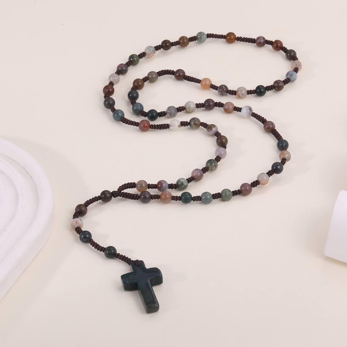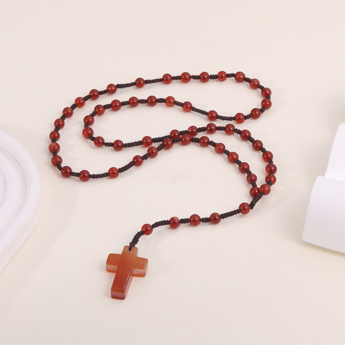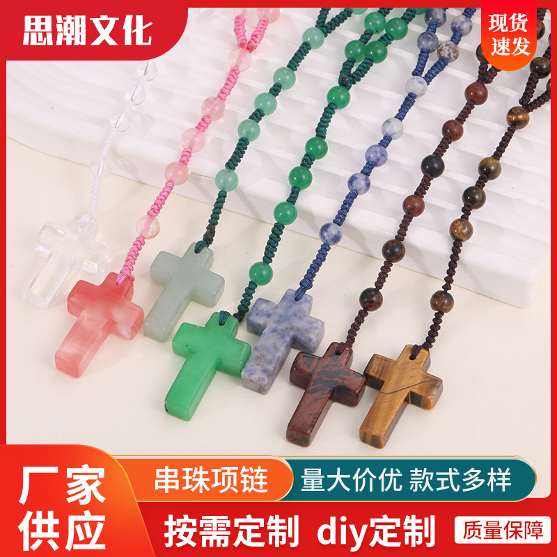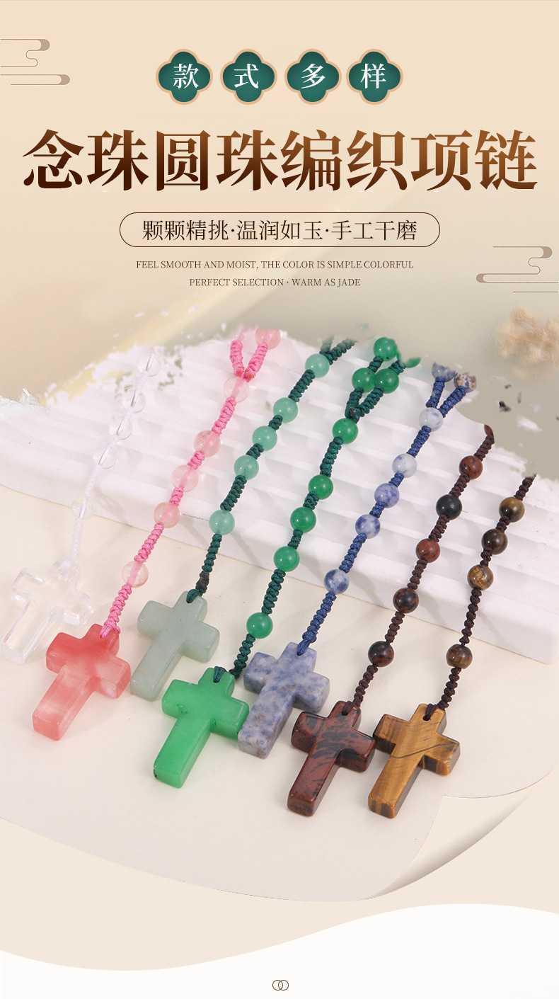 Натуральный кристалл агатовый камень 6mm ручной четки круглый шарик плетеный крест подвеска diy трансграничная горячая продажа ожерелье