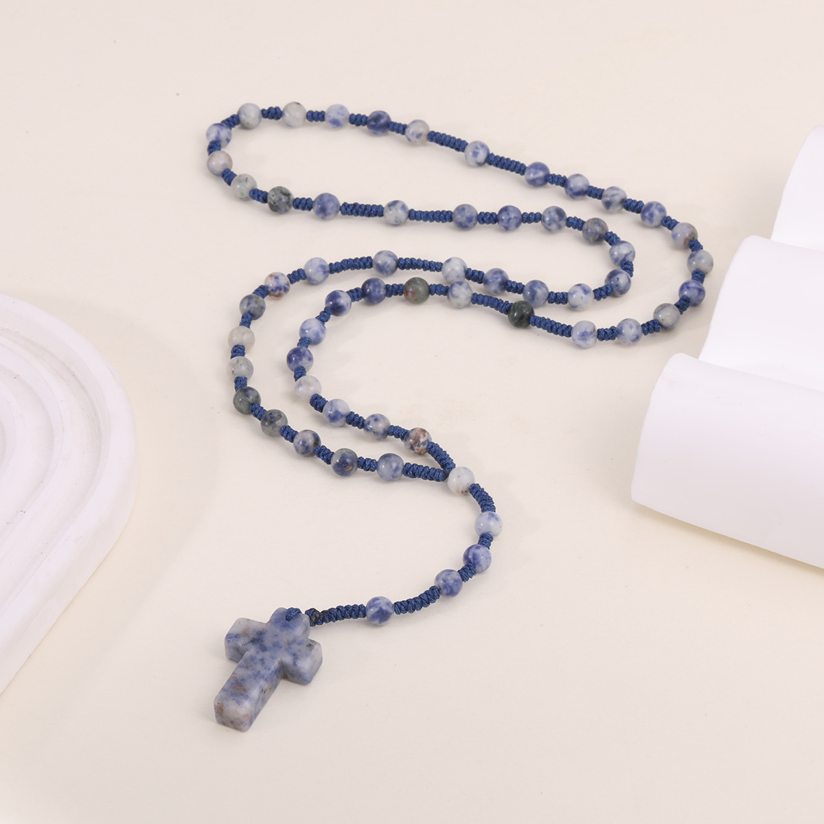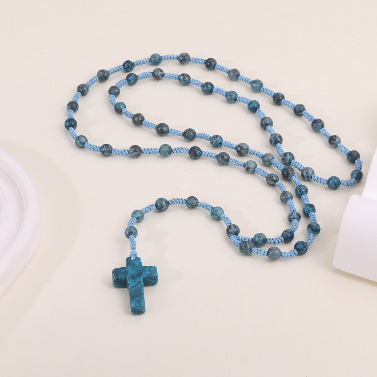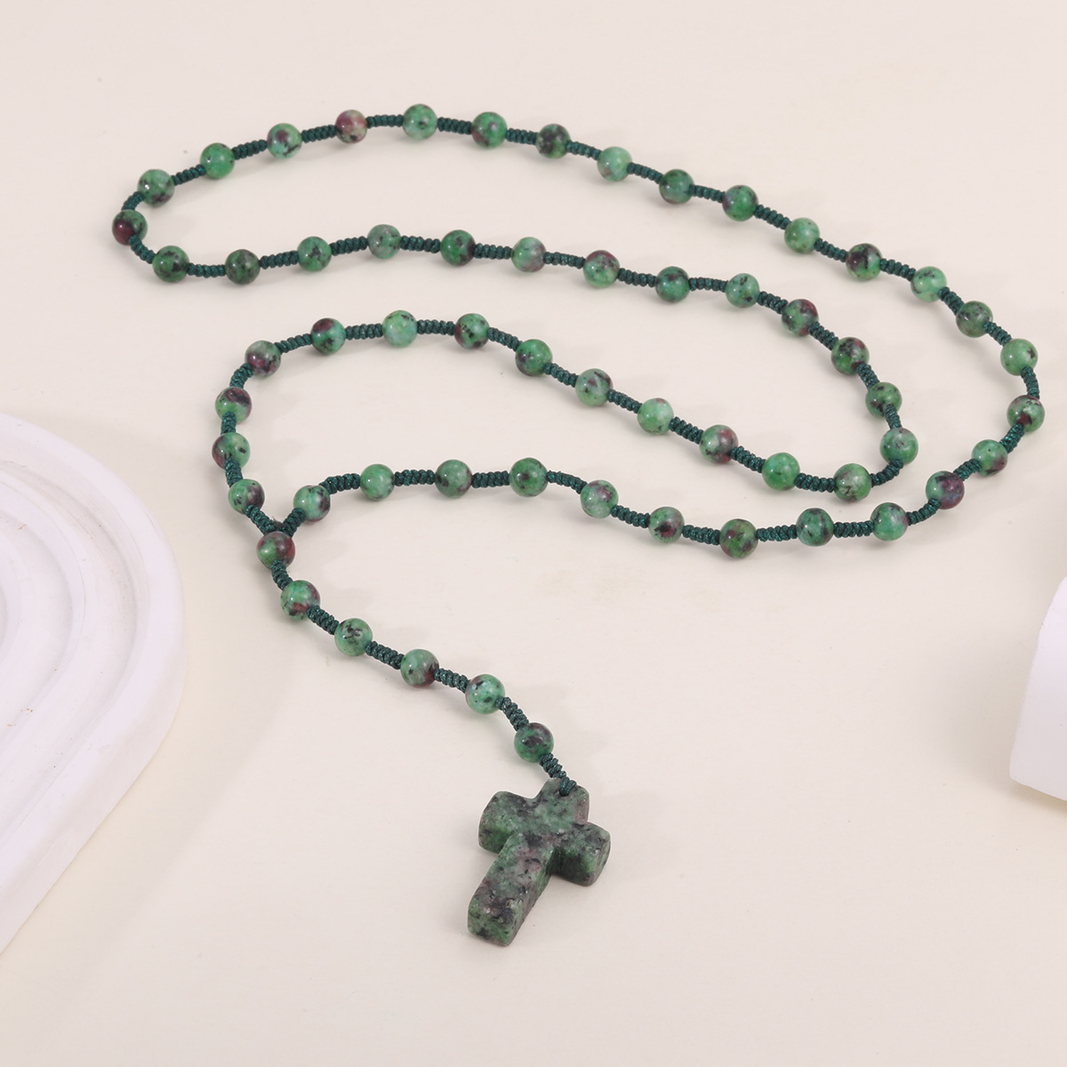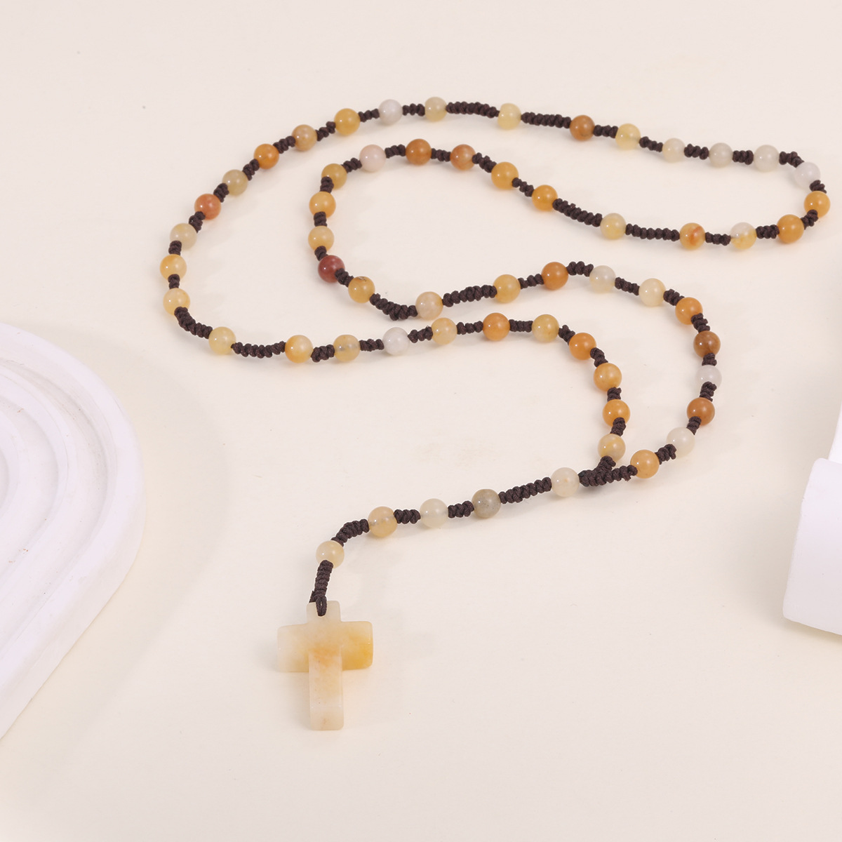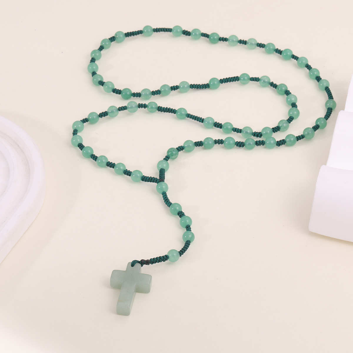 Натуральный кристалл агатовый камень 6mm ручной четки круглый шарик плетеный крест подвеска diy трансграничная горячая продажа ожерелье