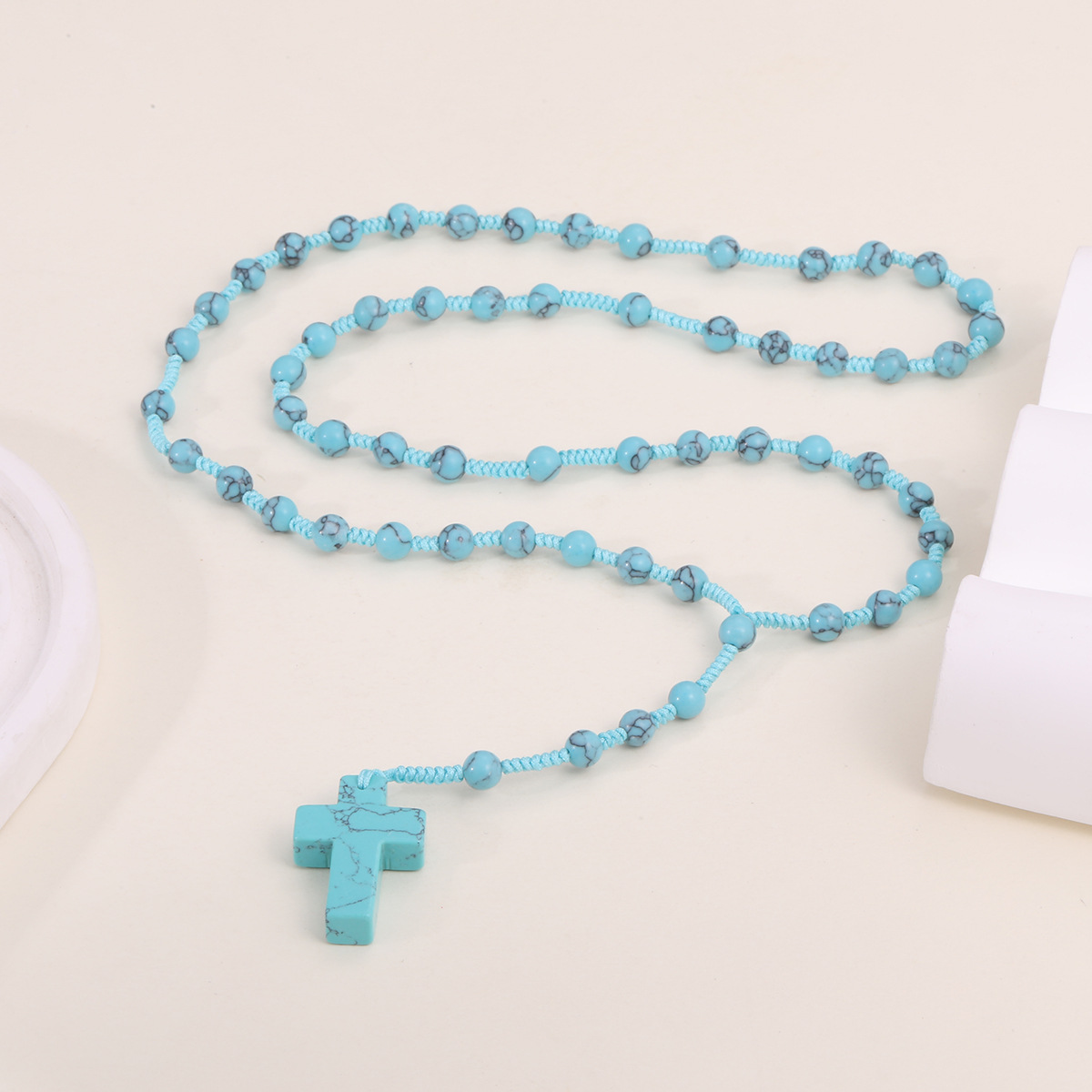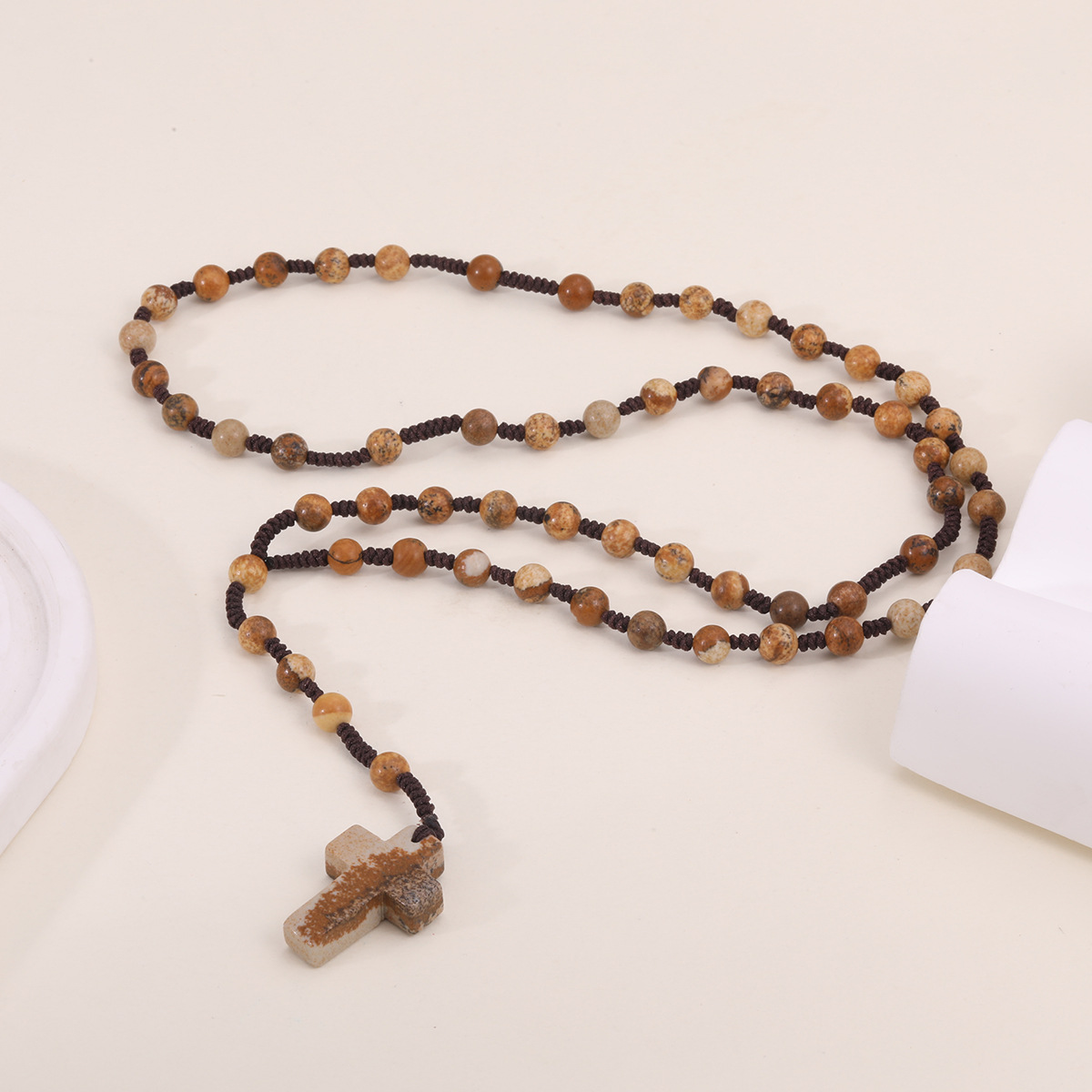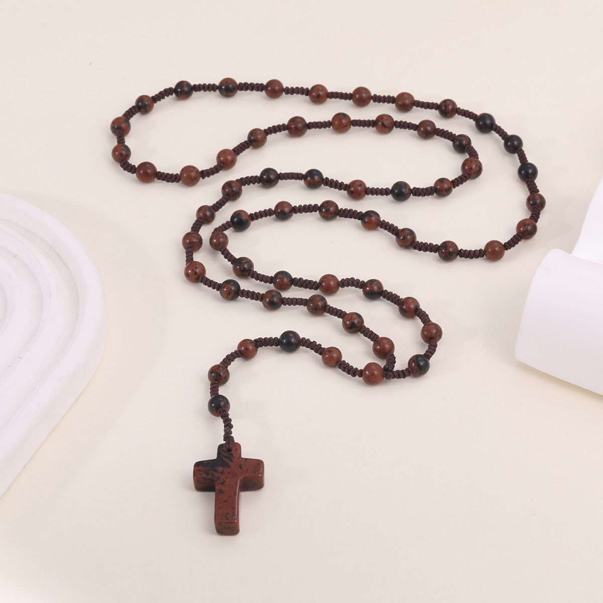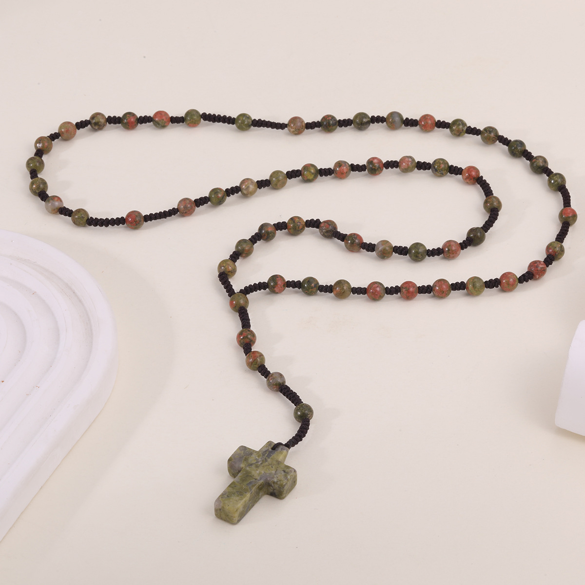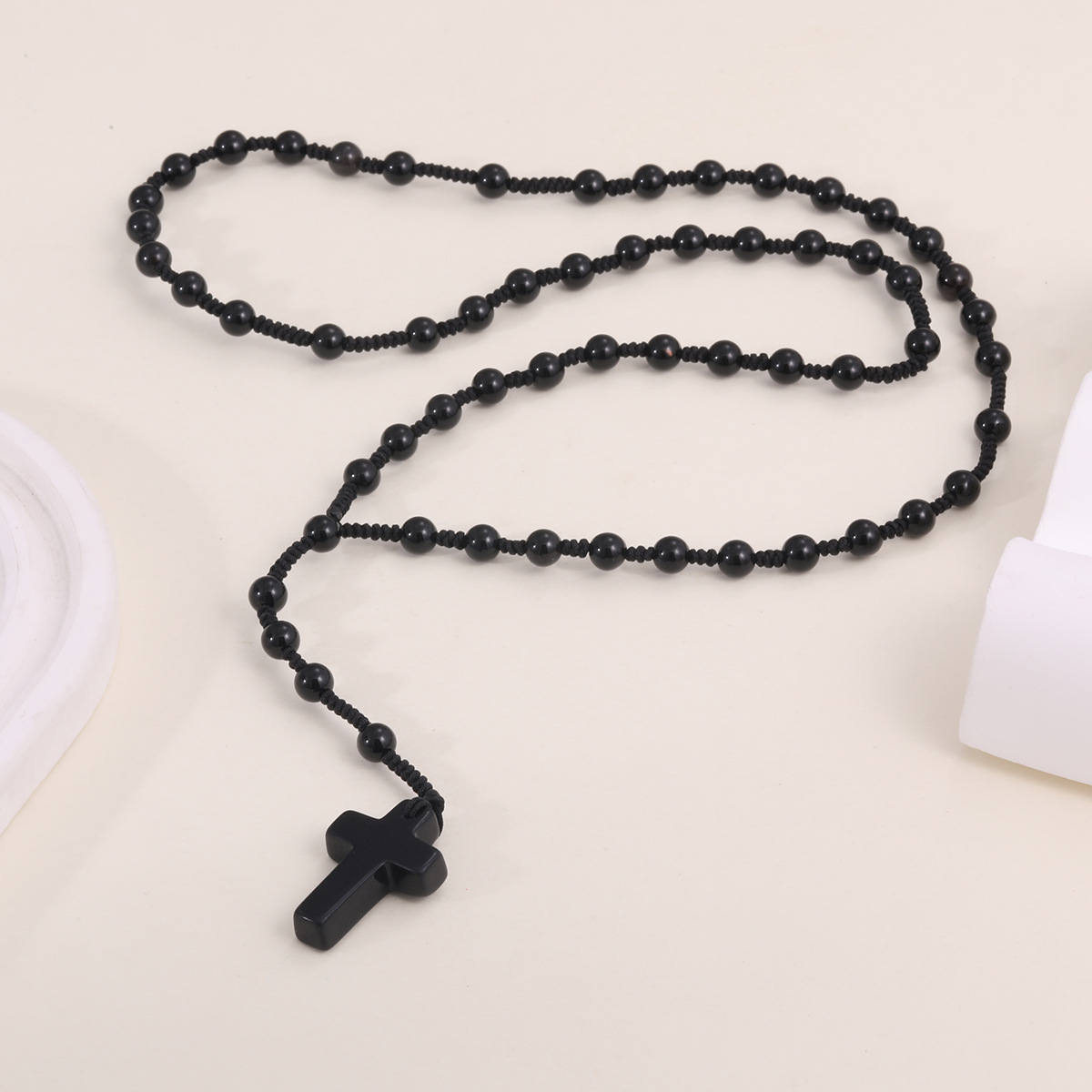 Натуральный кристалл агатовый камень 6mm ручной четки круглый шарик плетеный крест подвеска diy трансграничная горячая продажа ожерелье