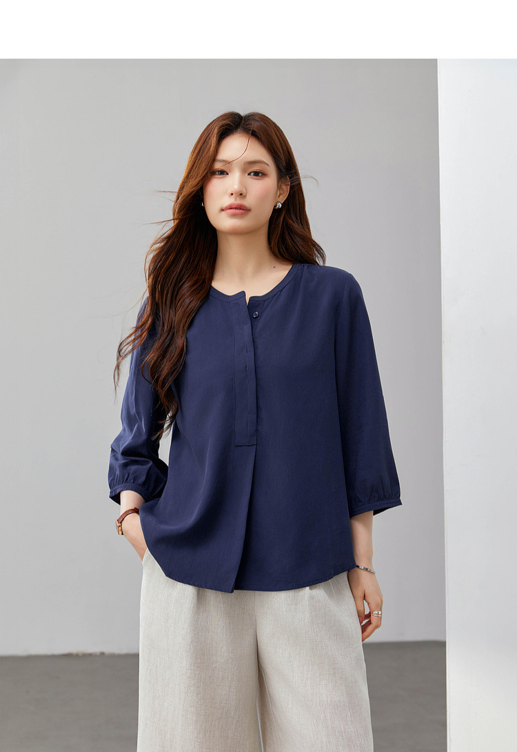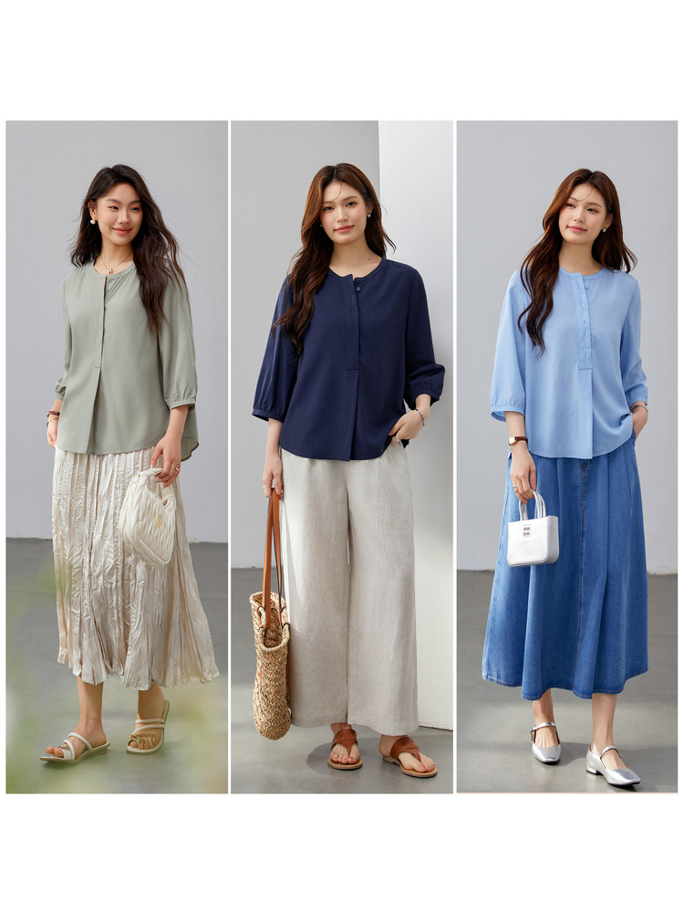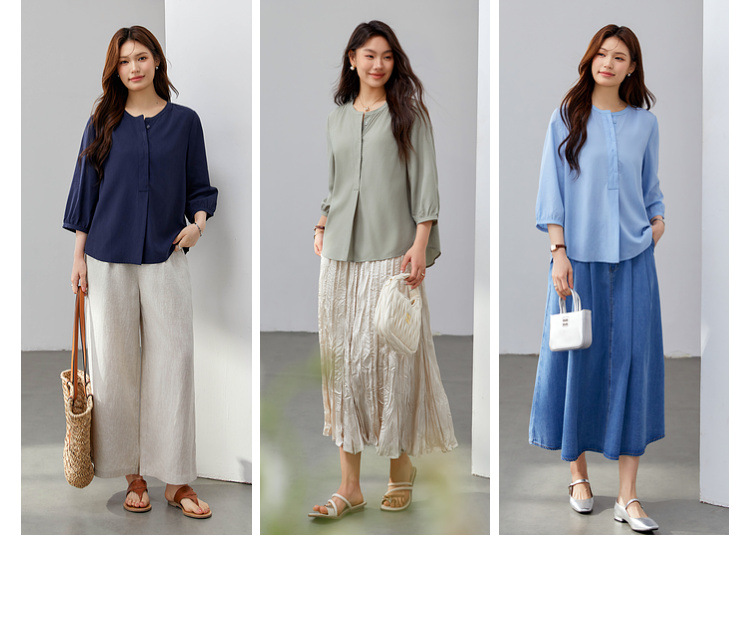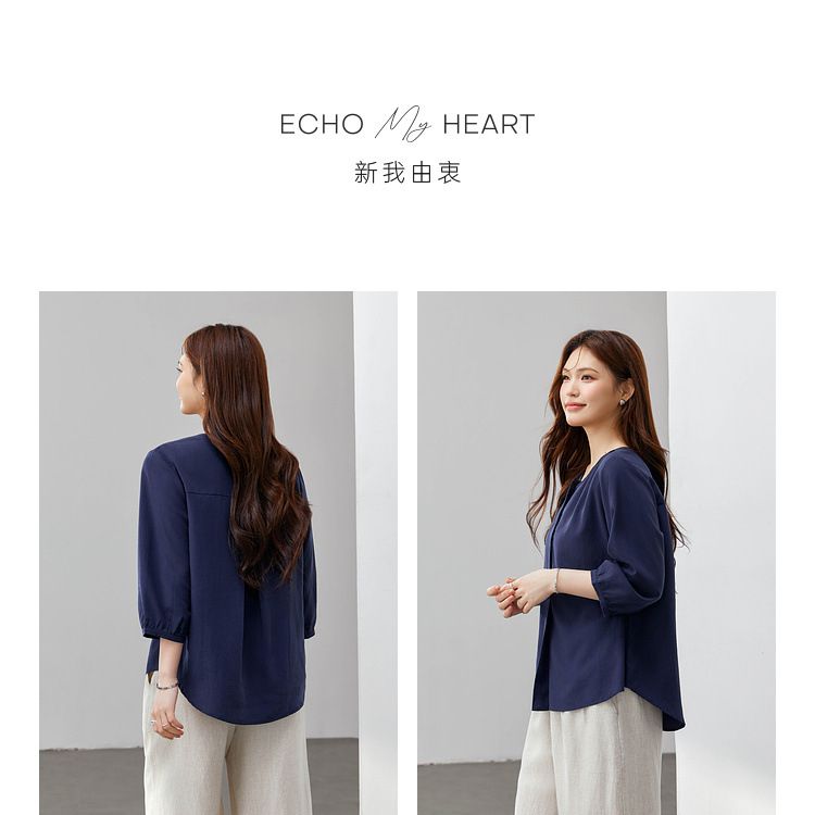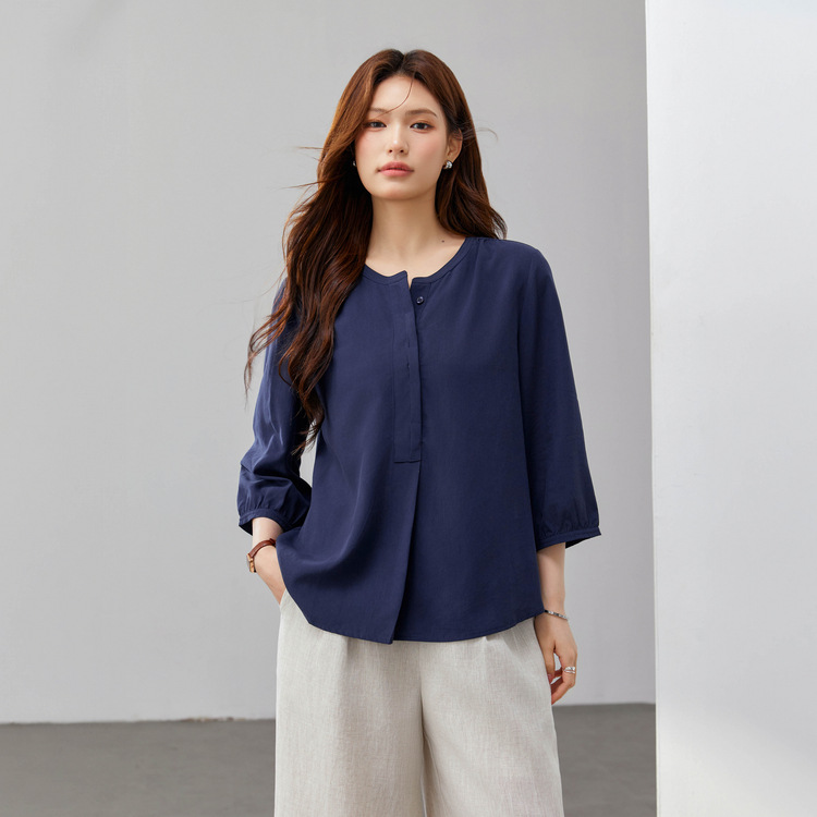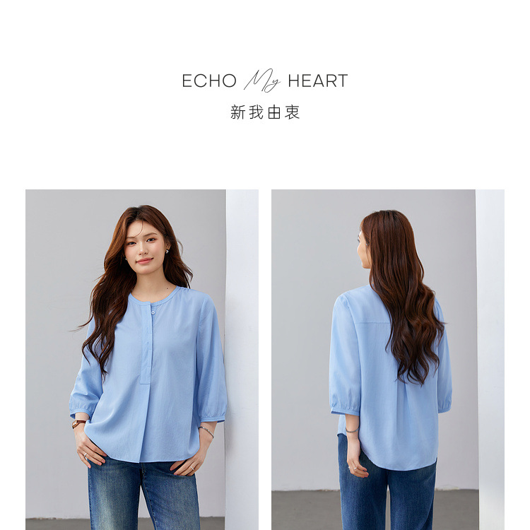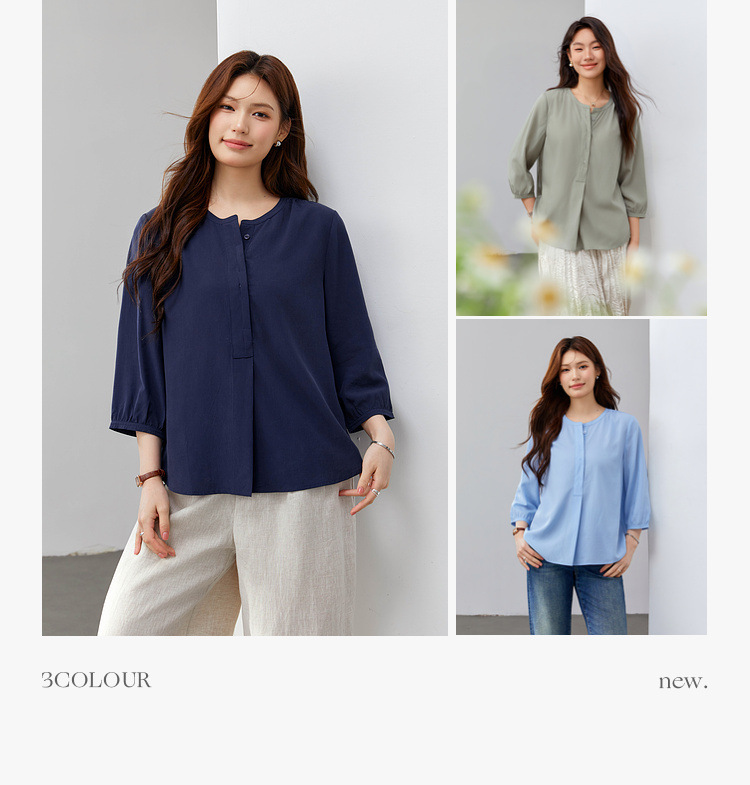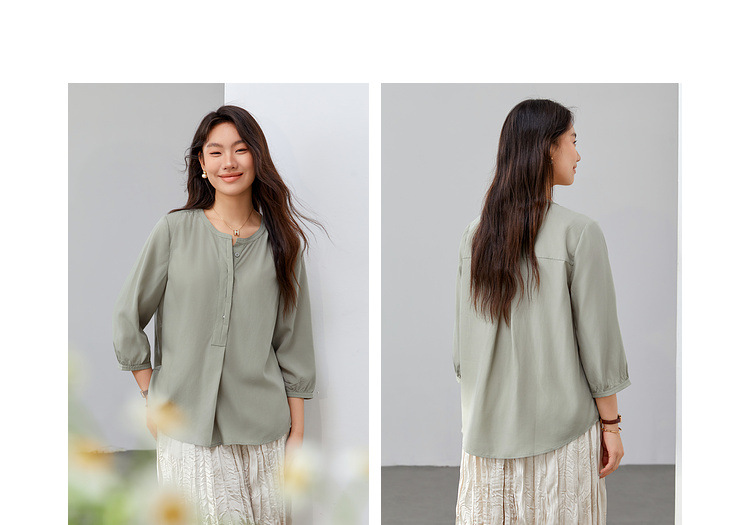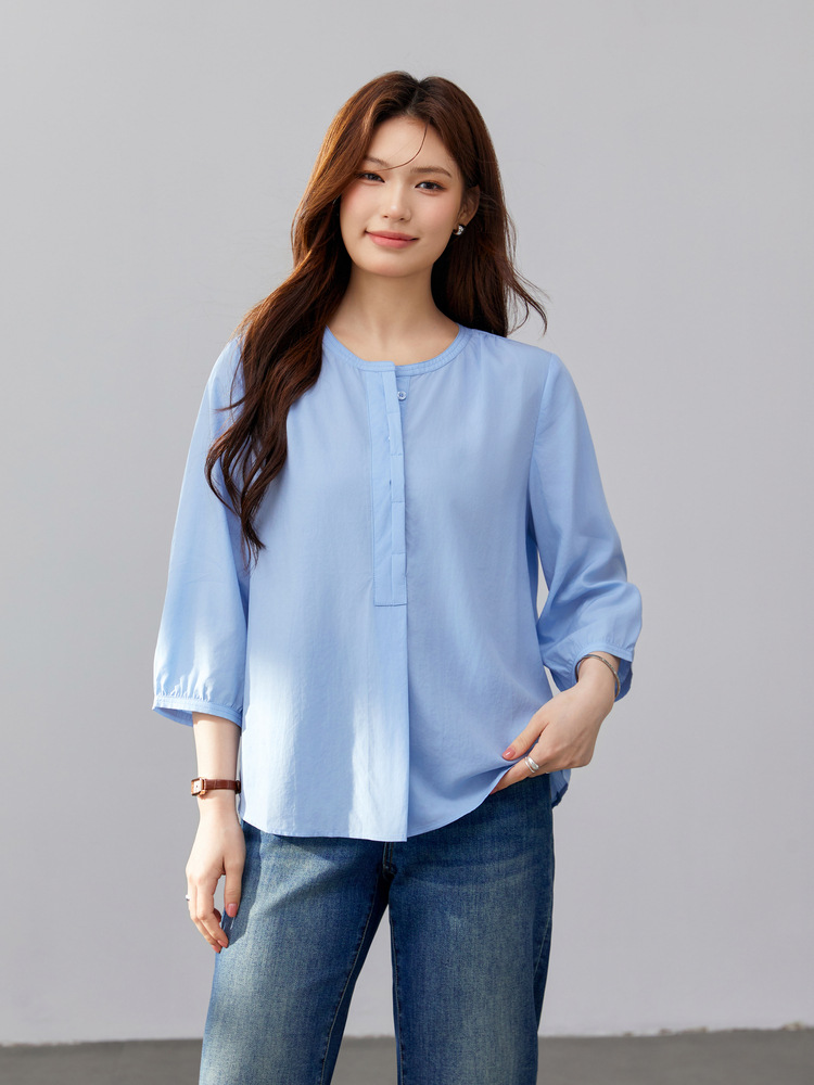 [Легкая рубашка с кондиционером с семью рукавами, рубашка с круглым вырезом] Funny Show большой размер женский толстый mm2025 весенний новый