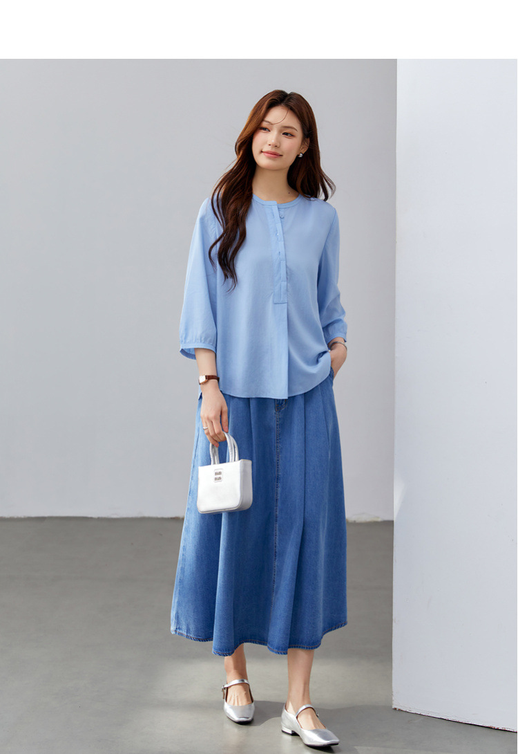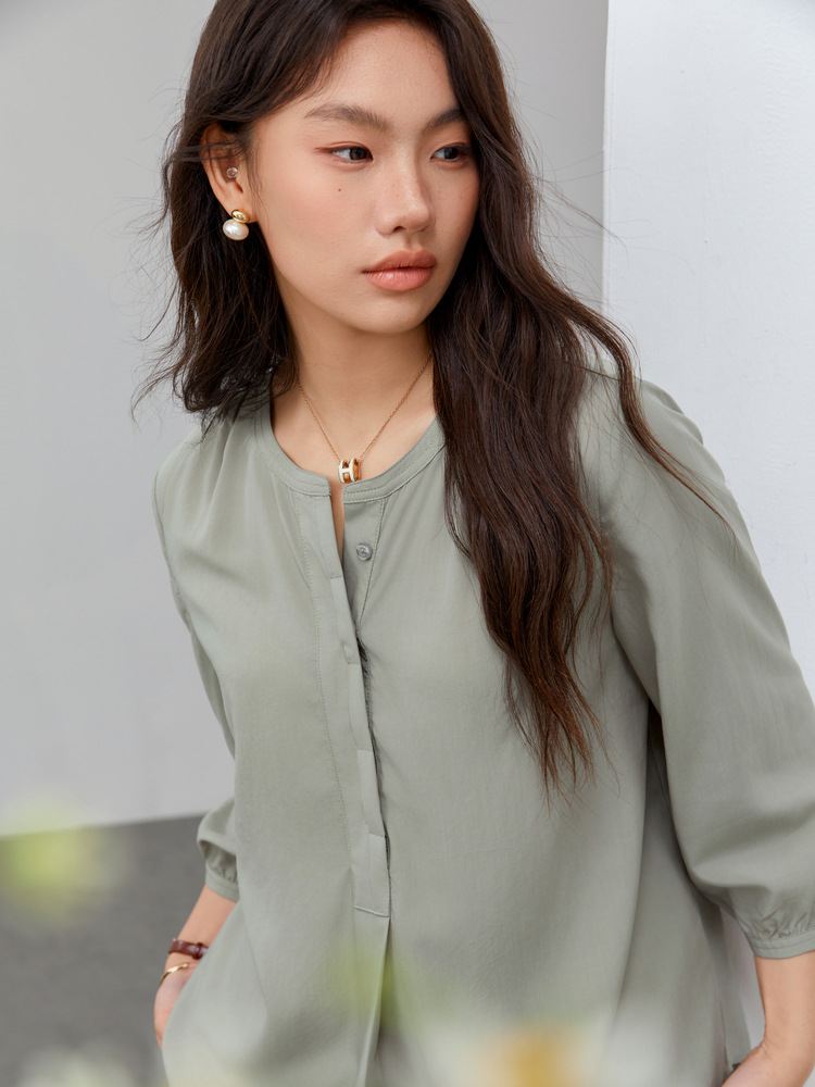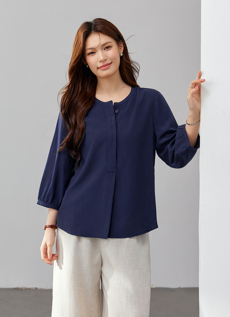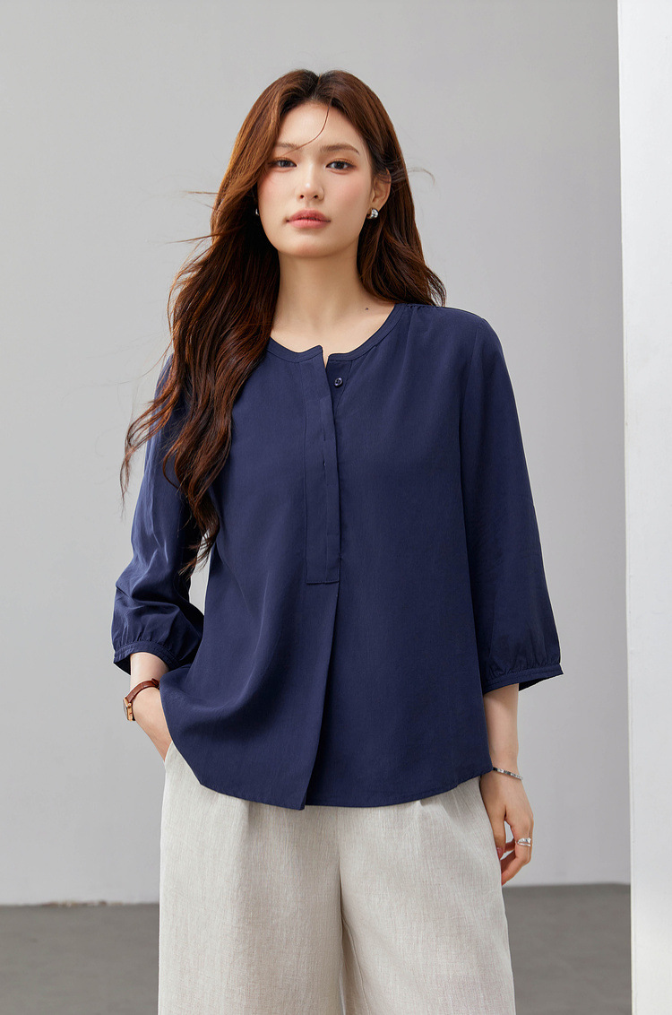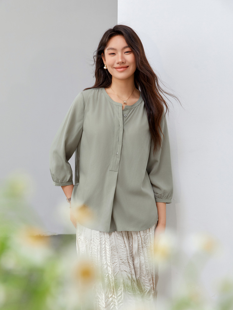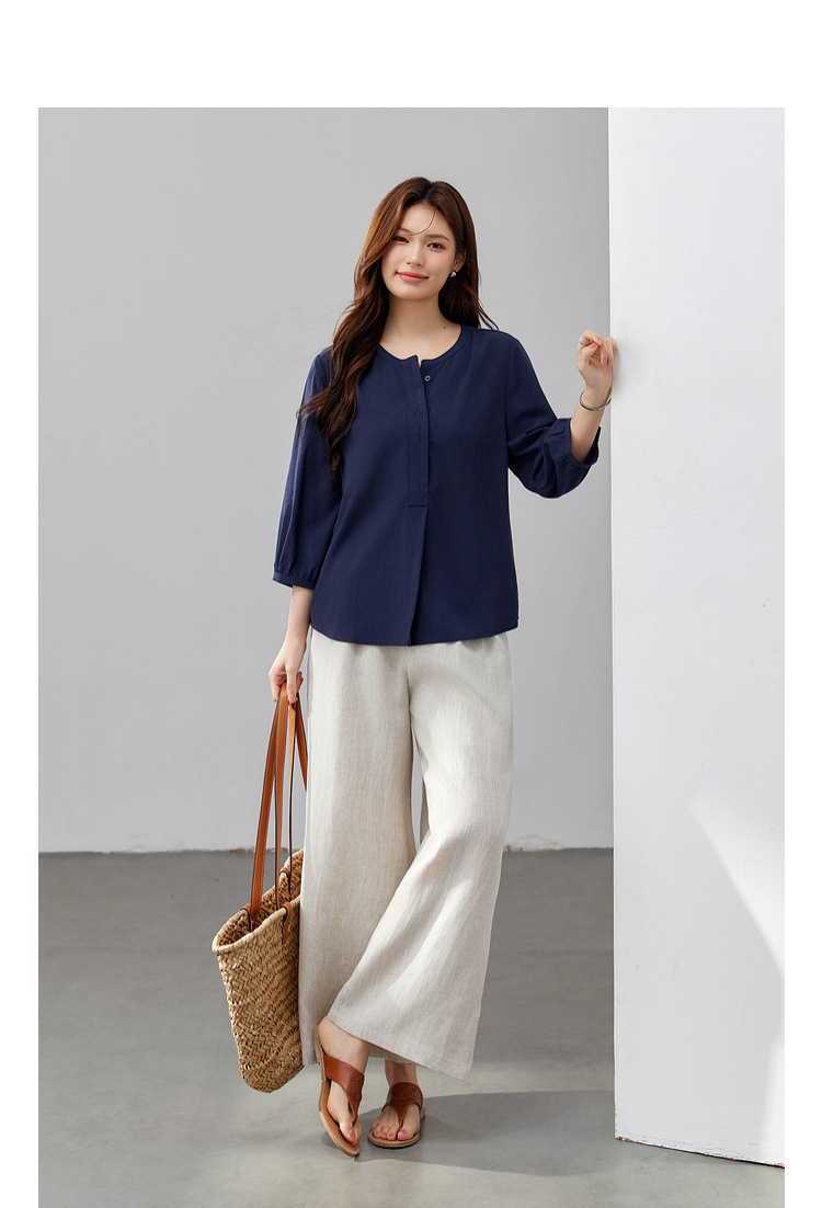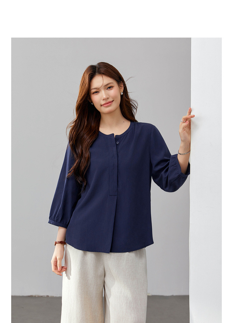 [Легкая рубашка с кондиционером с семью рукавами, рубашка с круглым вырезом] Funny Show большой размер женский толстый mm2025 весенний новый